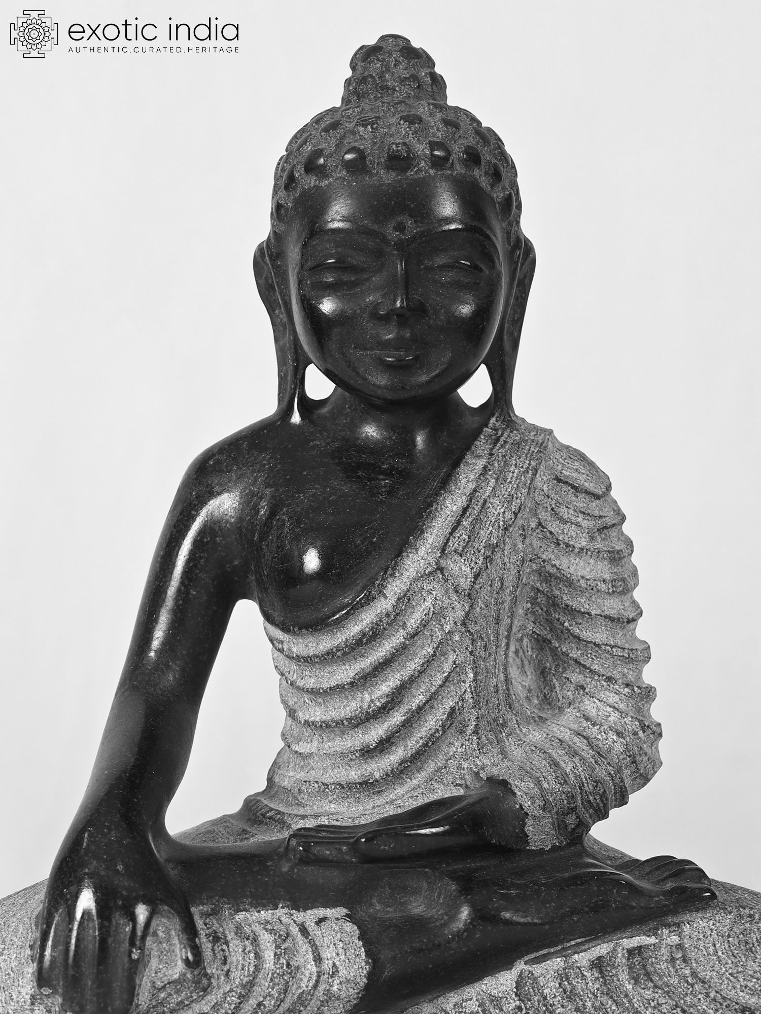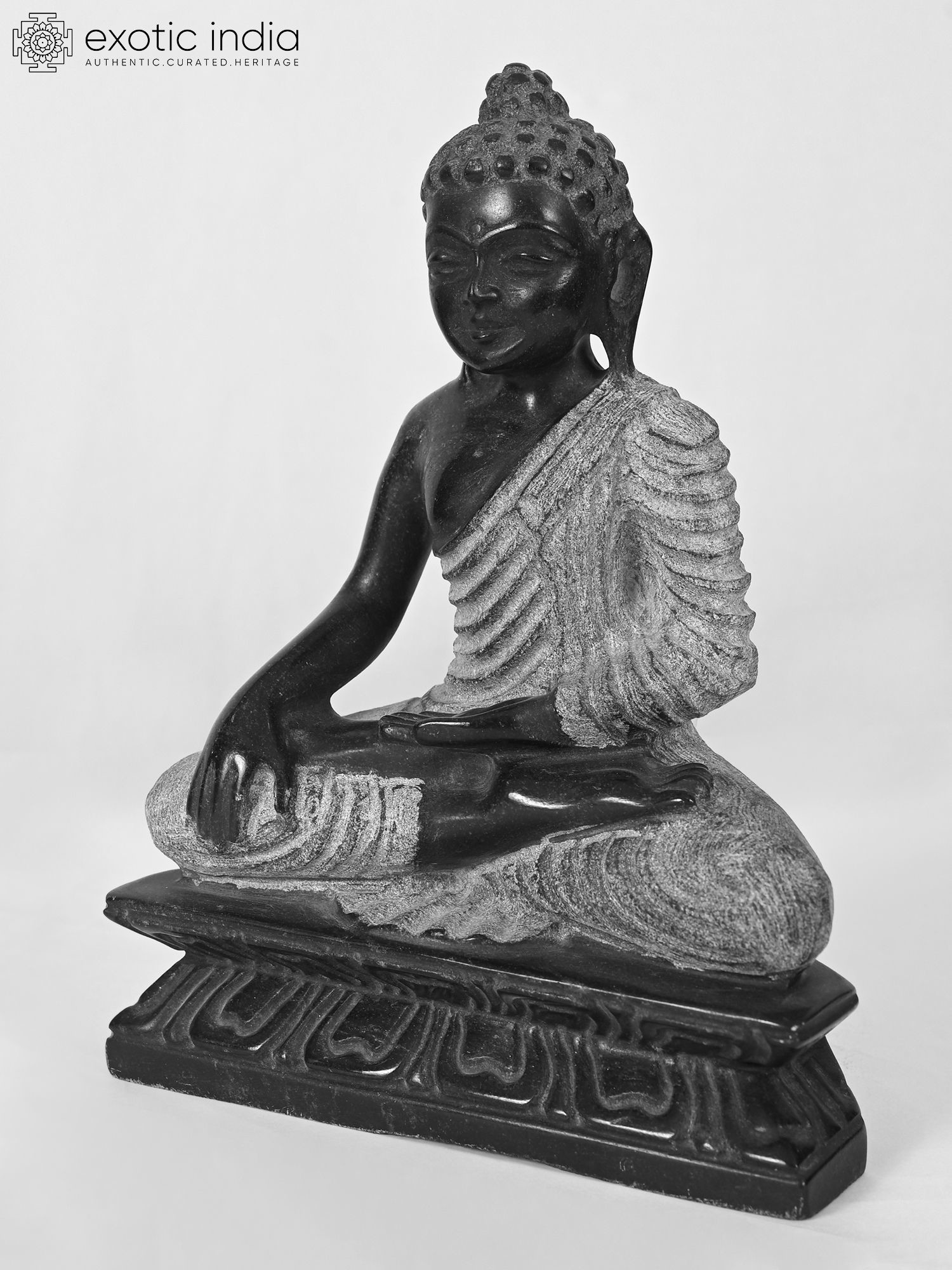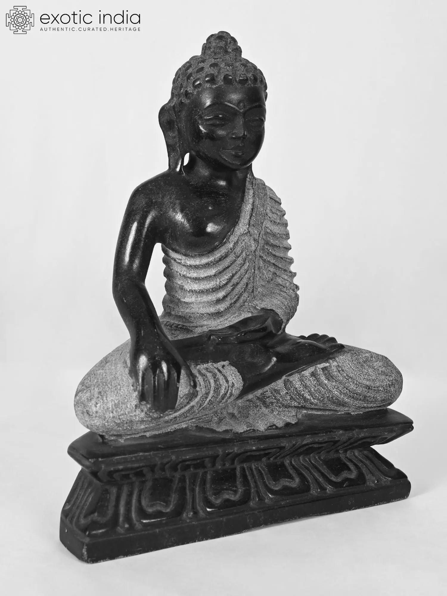 Meditating Buddha Sculpture: 15" Marble Idol with Vitarka Mudra