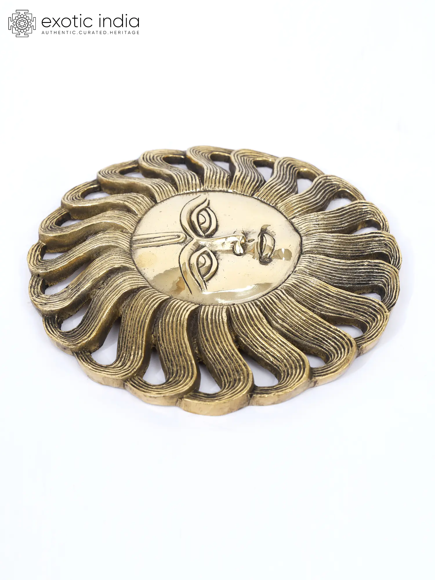 9" Lord Surya Wall Hanging In Brass | Handmade | Made In India