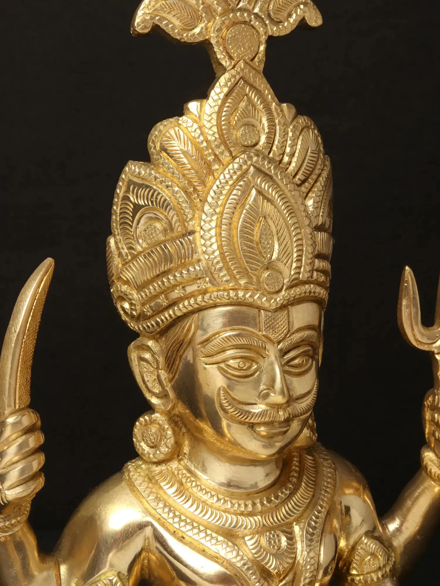 This exquisite brass statue captures the divine presence of Nakoda, a revered deity in Jainism. Crafted with meticulous detail and a radiant golden hue, this representation embodies the spiritual essence and powerful symbolism associated with this significant figure. The deity stands in a commanding posture, its form brought to life through the masterful artistry of skilled craftsmen. The polished brass gleams, reflecting light and adding a timeless aura of divinity to any space it occupies.