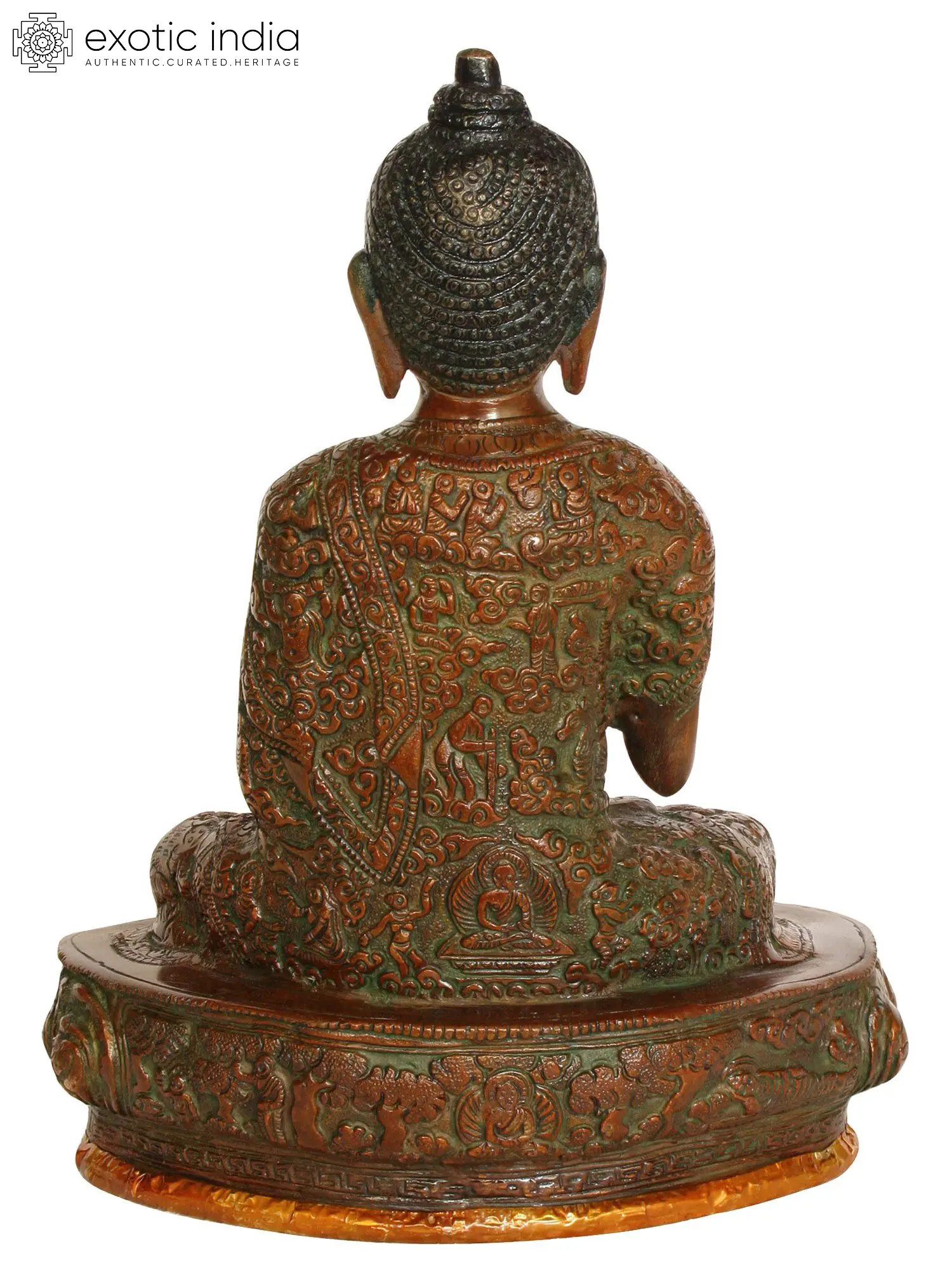 9" Shakyamuni Buddha Preaching His Dharma (Robes Decorated with the Scenes from His Life) In Brass