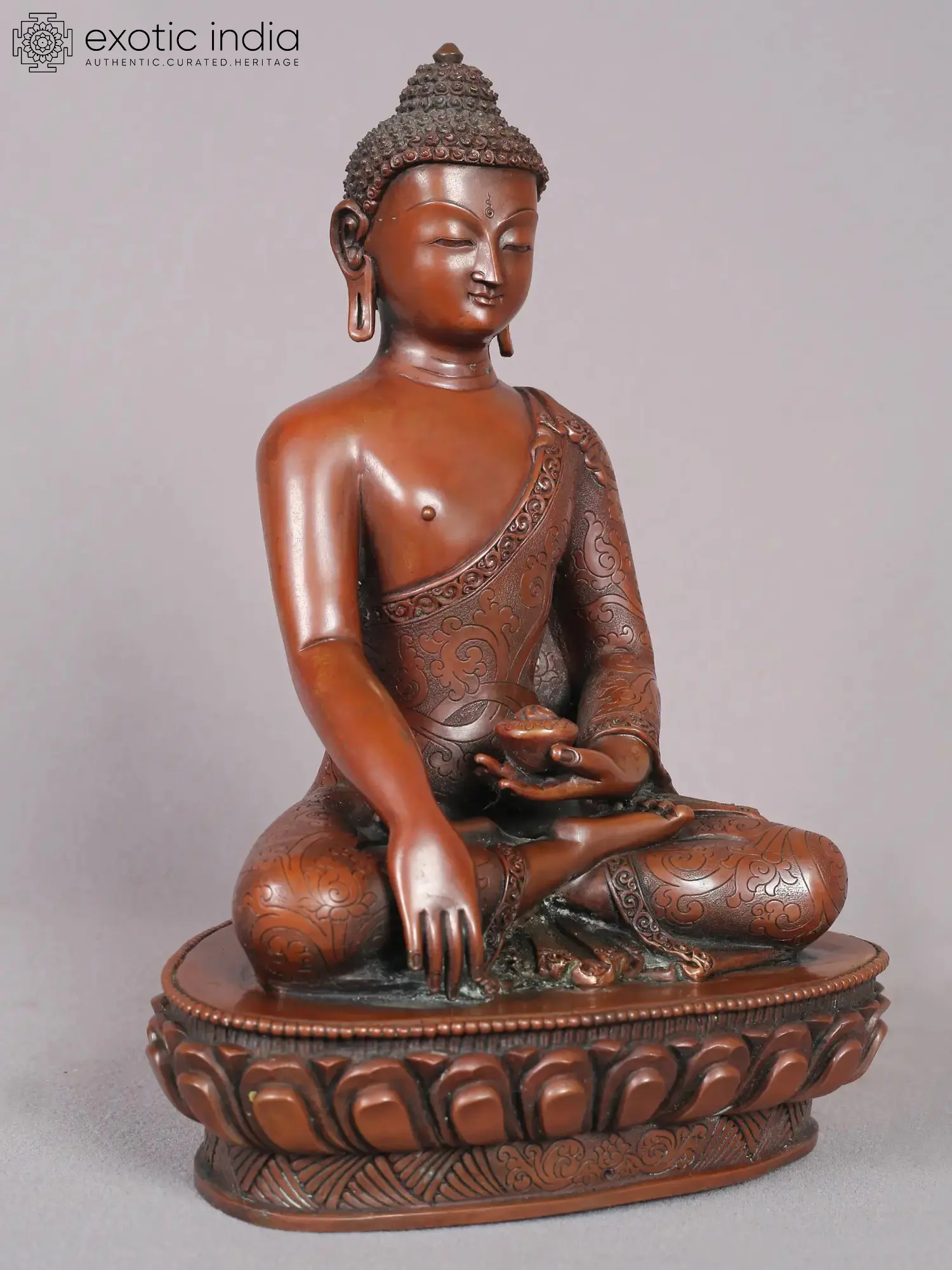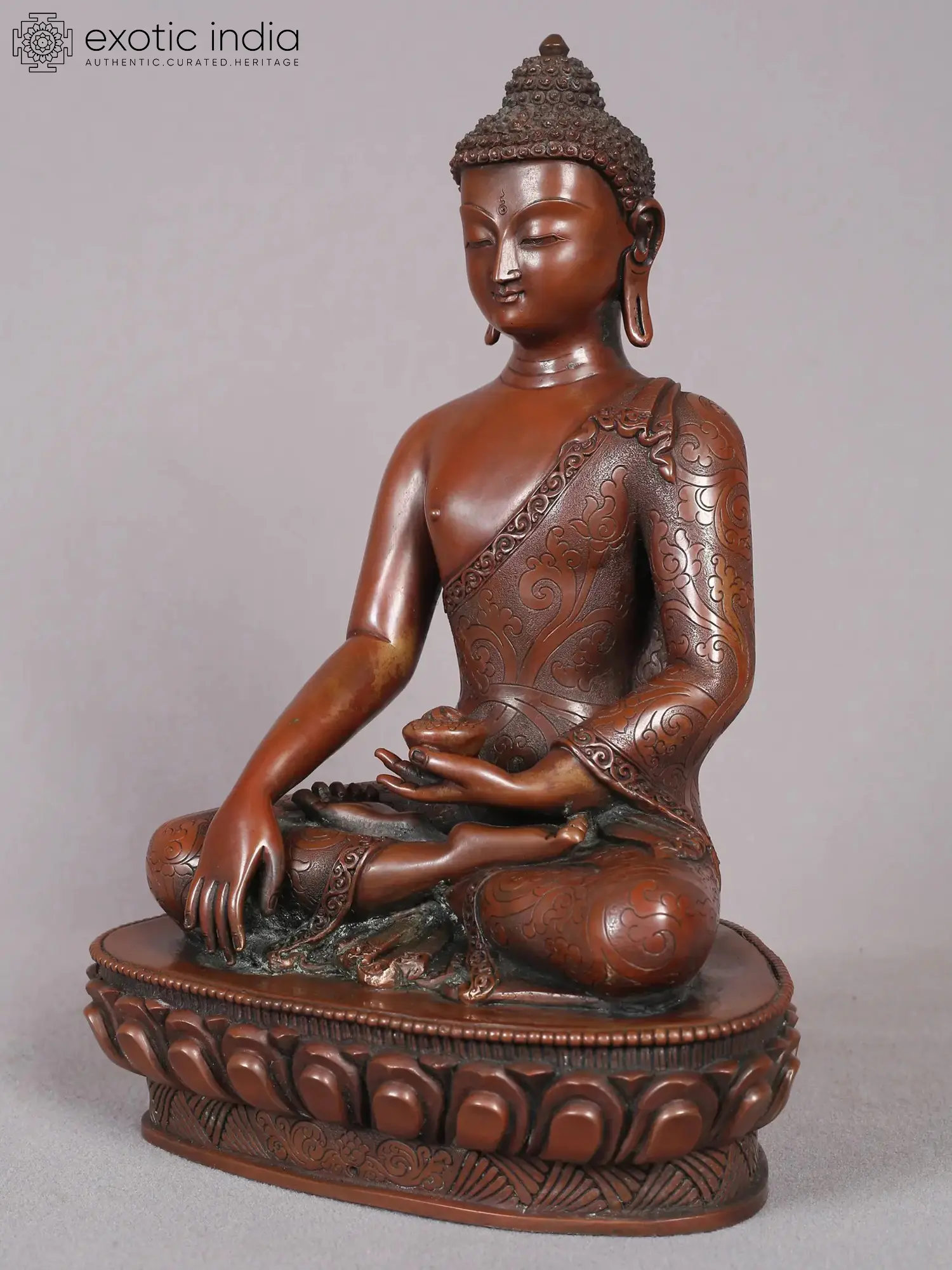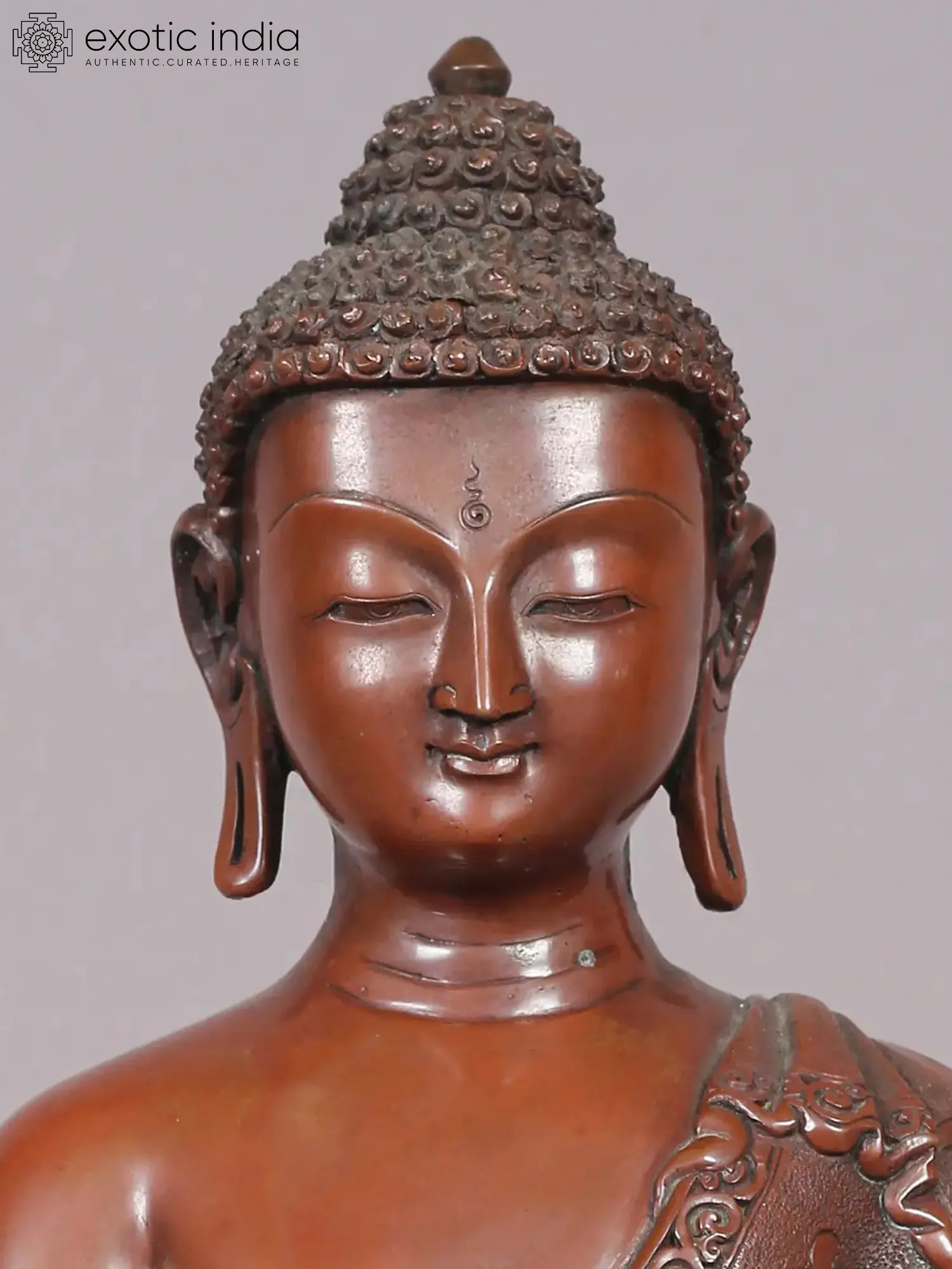 Presenting the remarkable sculpture of Shakyamuni Buddha, a profound embodiment of timeless serenity and wisdom. The sculpture skillfully captures the essence of meditative contemplation through the half-closed eyes, inviting viewers to delve into profound introspection. The meticulously crafted Bhumisparsha mudra, portrayed with exquisite artistry, symbolizes the triumph over earthly desires. The left hand's gentle touch upon the earth signifies an unwavering connection and attunement to the fundamental truths of existence. Beyond its aesthetic allure, this sculpture stands as a beacon of enlightenment, guiding beholders on a transformative journey towards profound wisdom and self-realization, mirroring the enlightenment teachings of Shakyamuni Buddha.