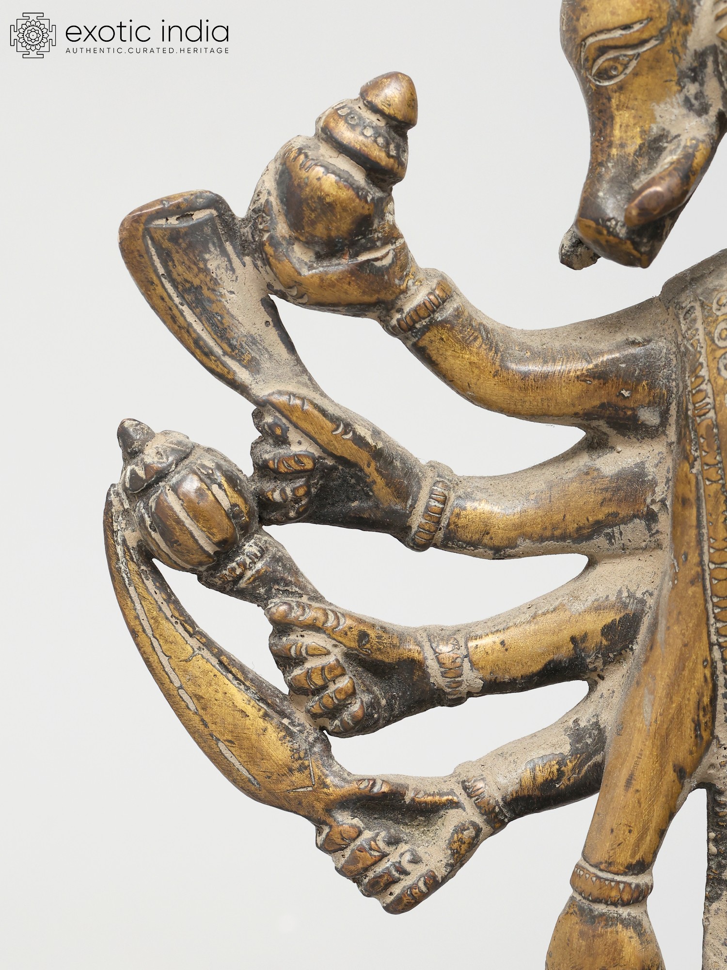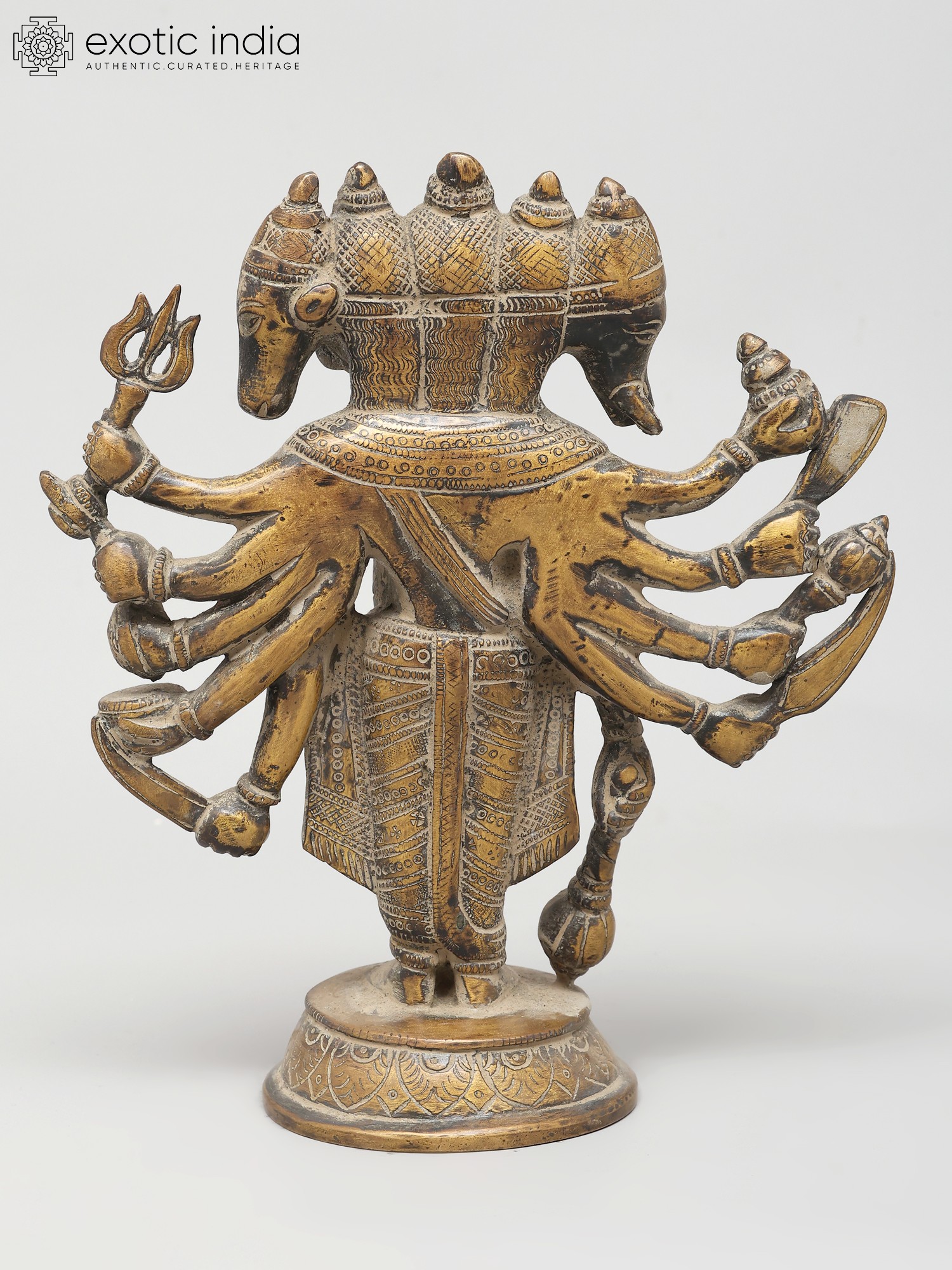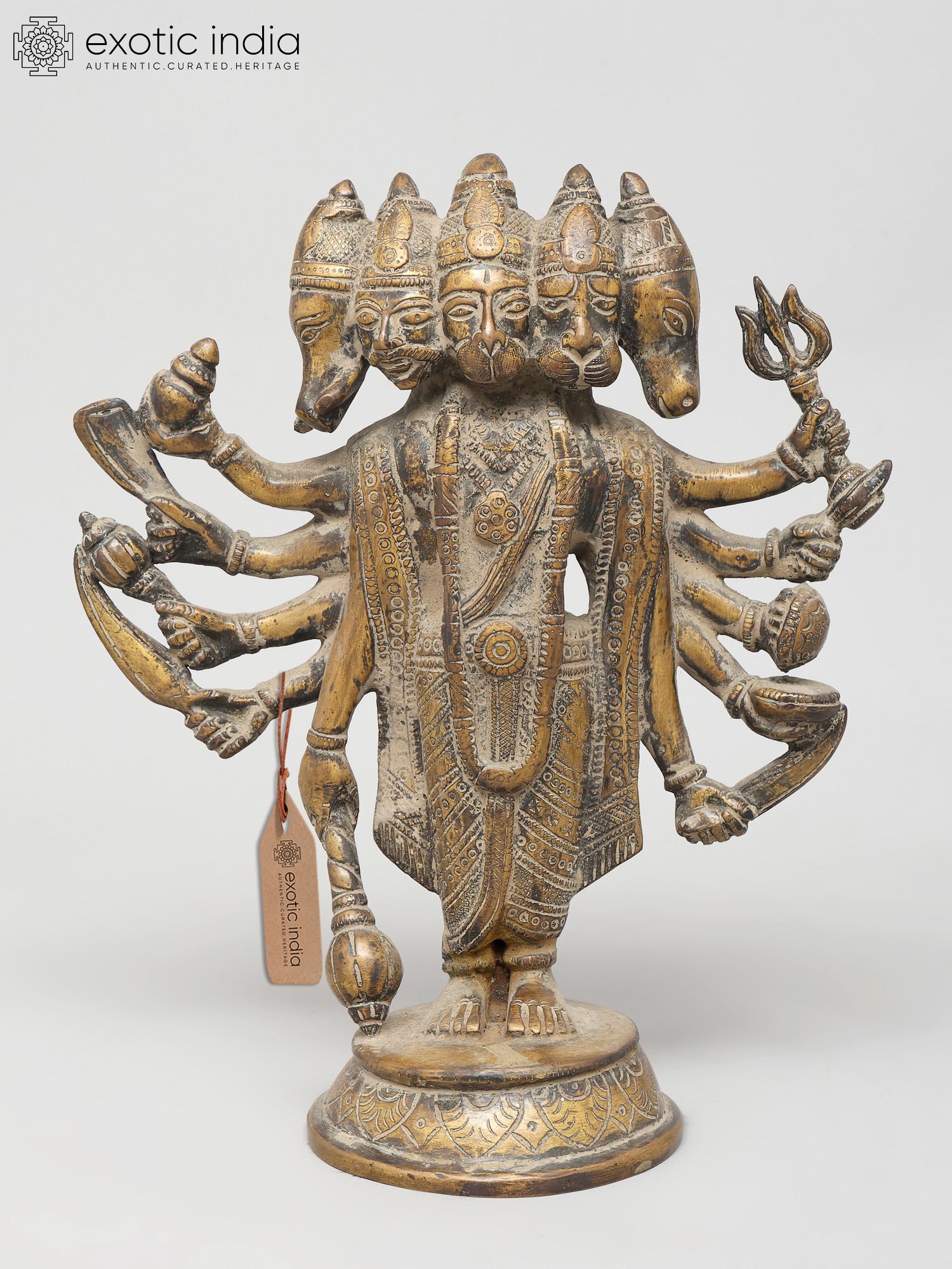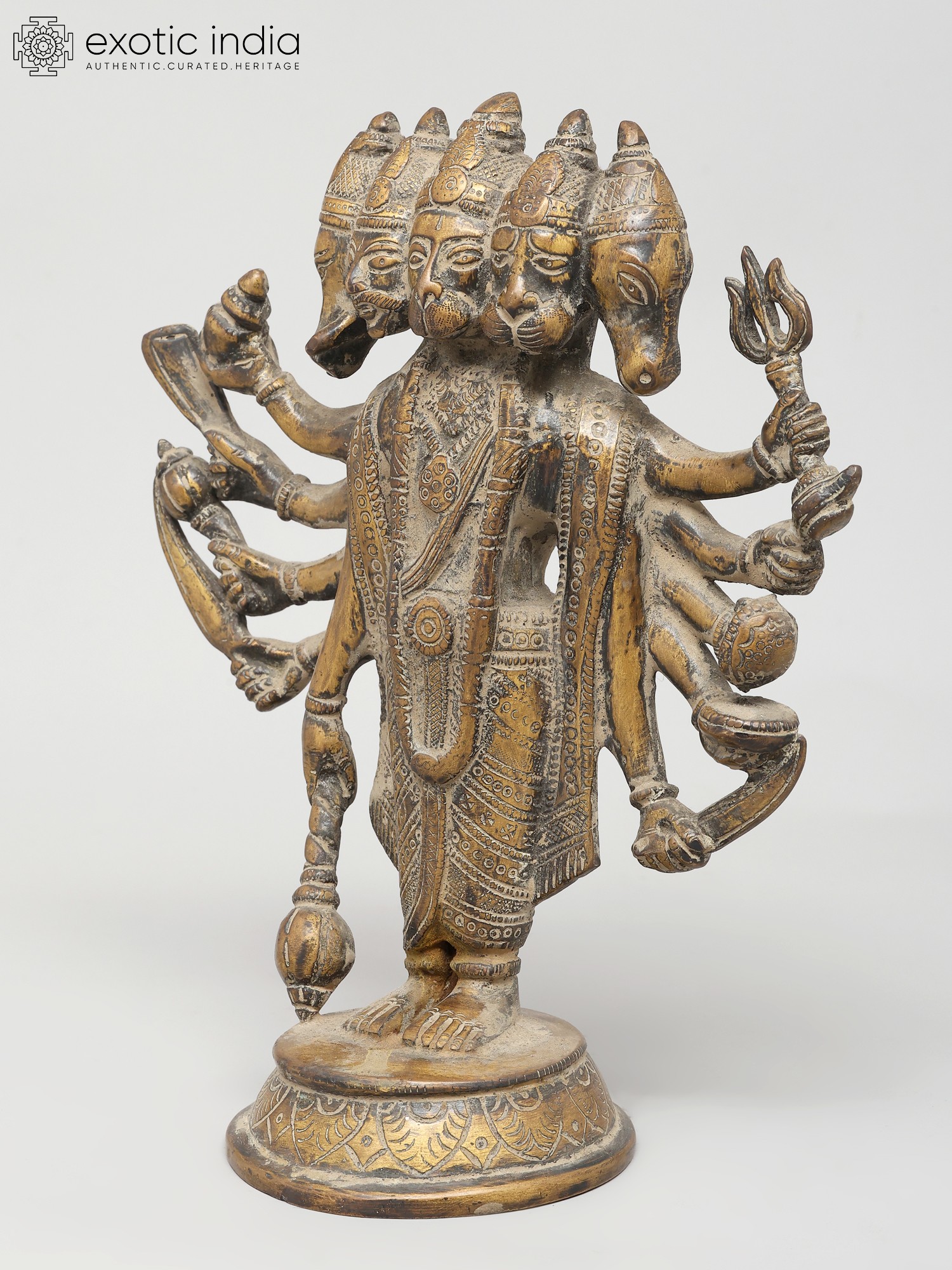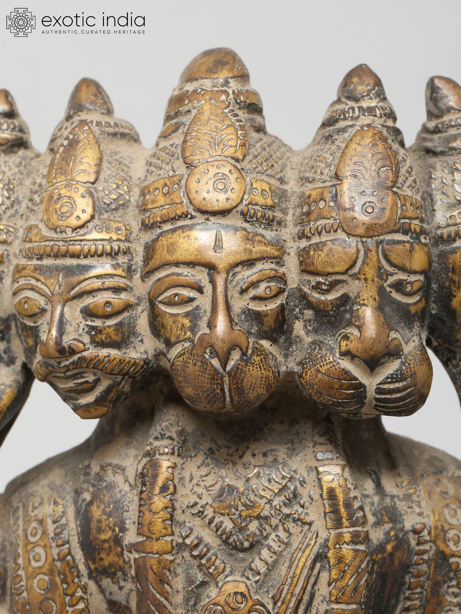 9" Brass Panchamukhi Hanuman Statue - Victor Over Ahiravana | Handmade | Made in India