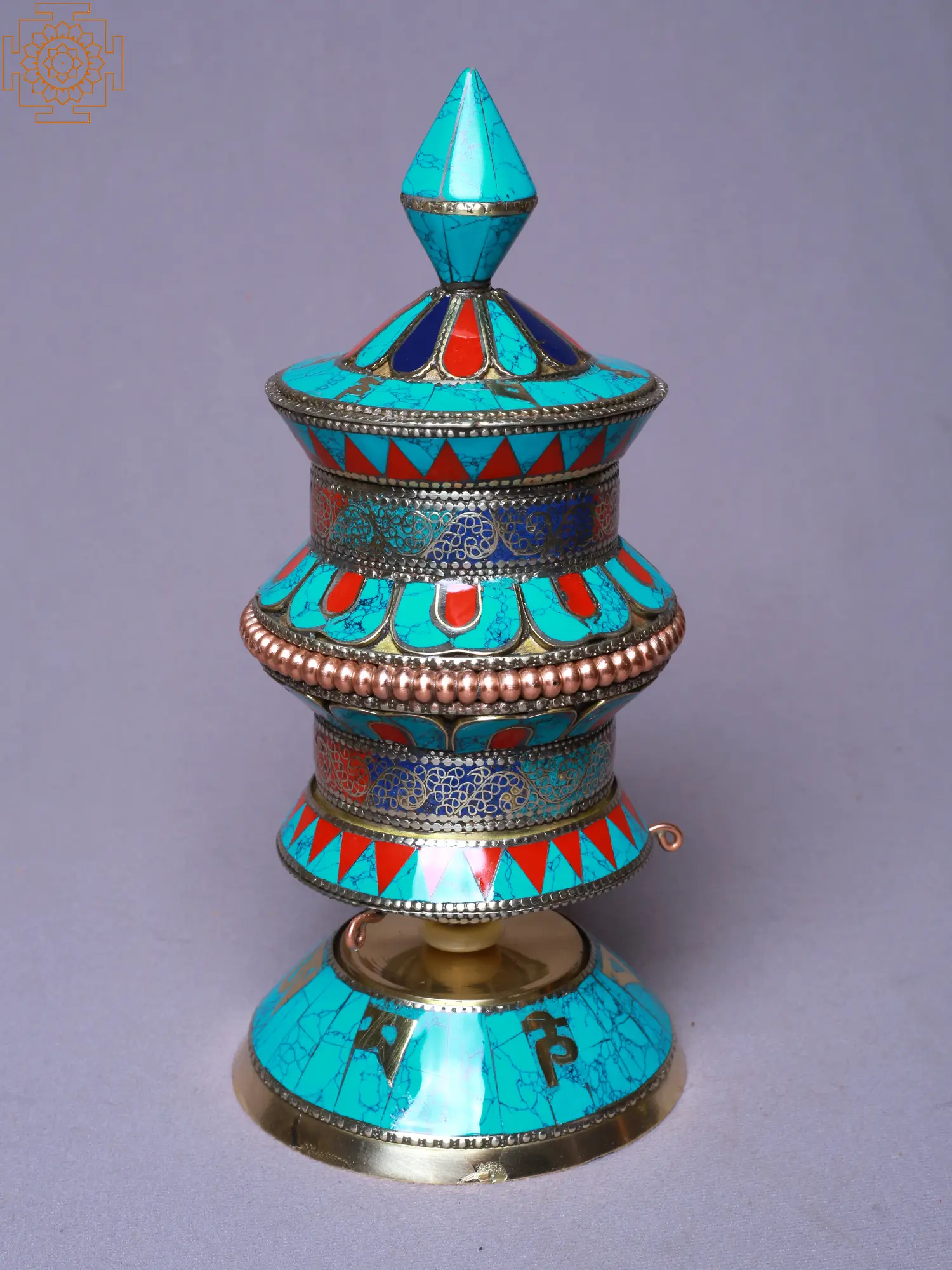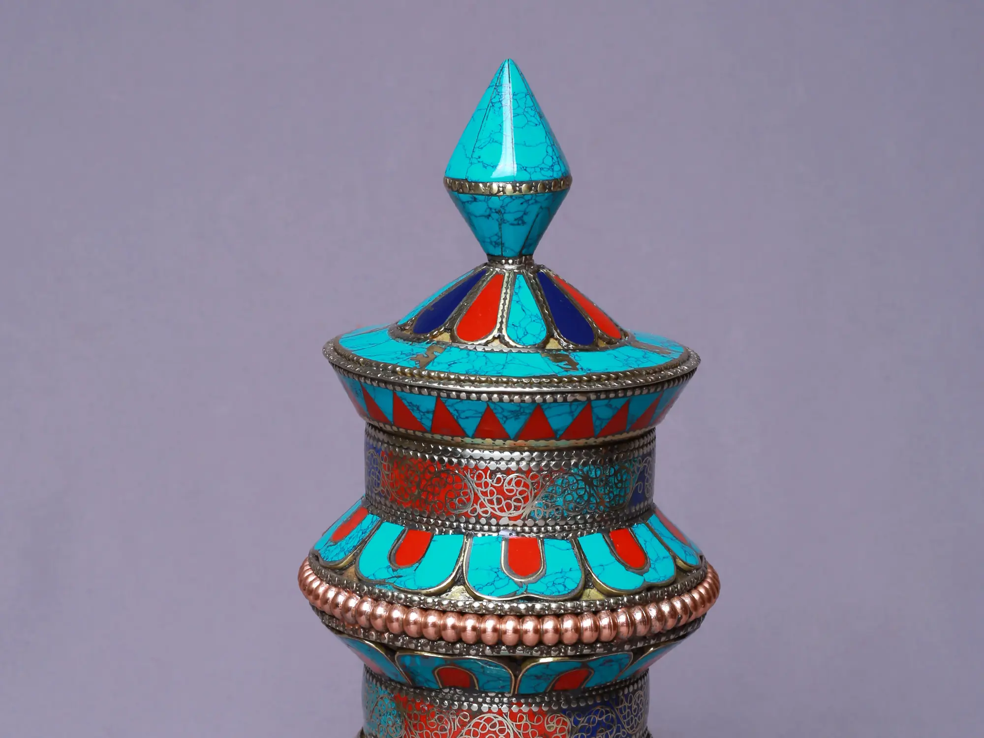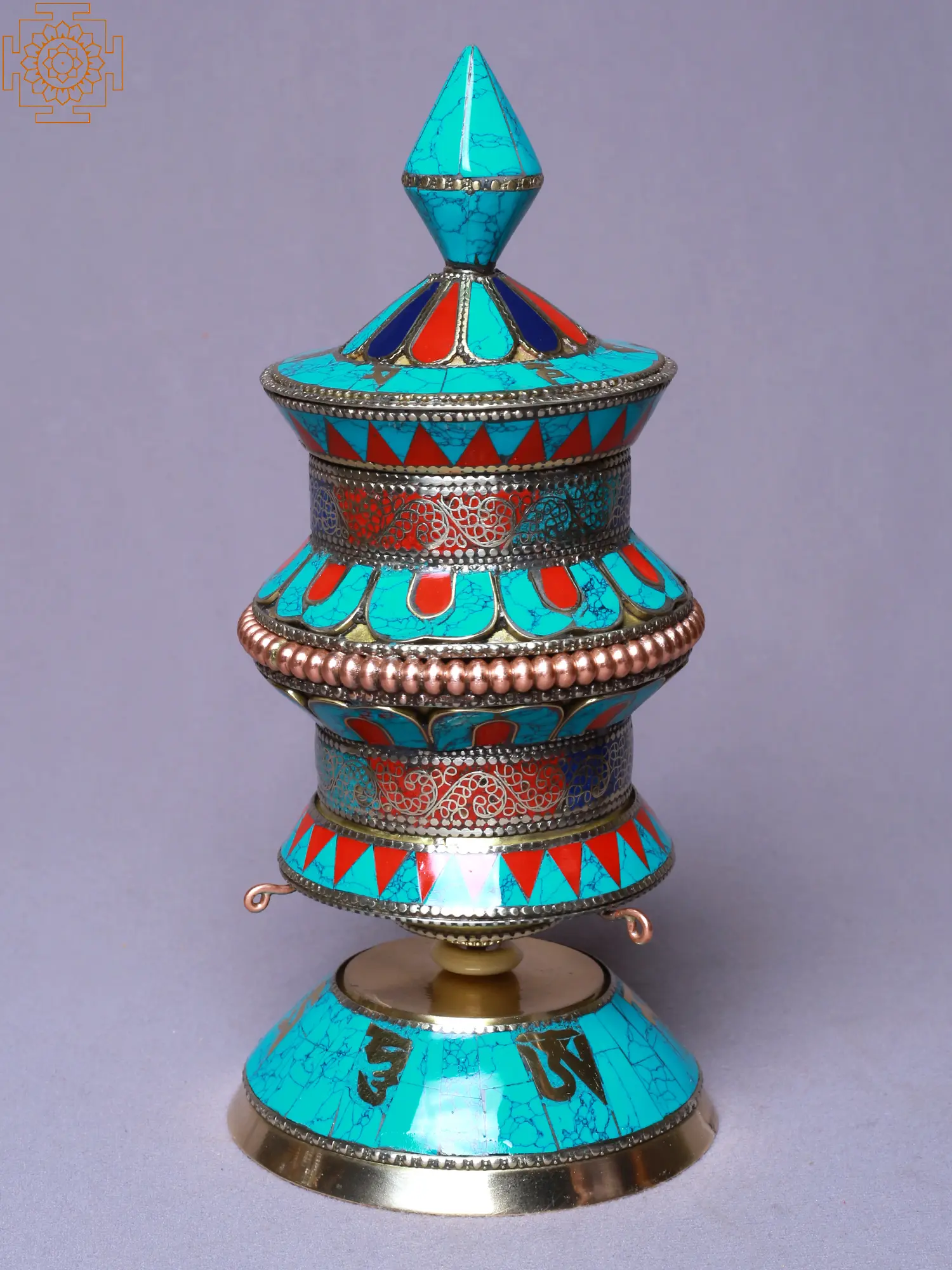4" Small Tibetan Buddhist Prayer Wheel with Stone Work | Table Piece | Made in Nepal