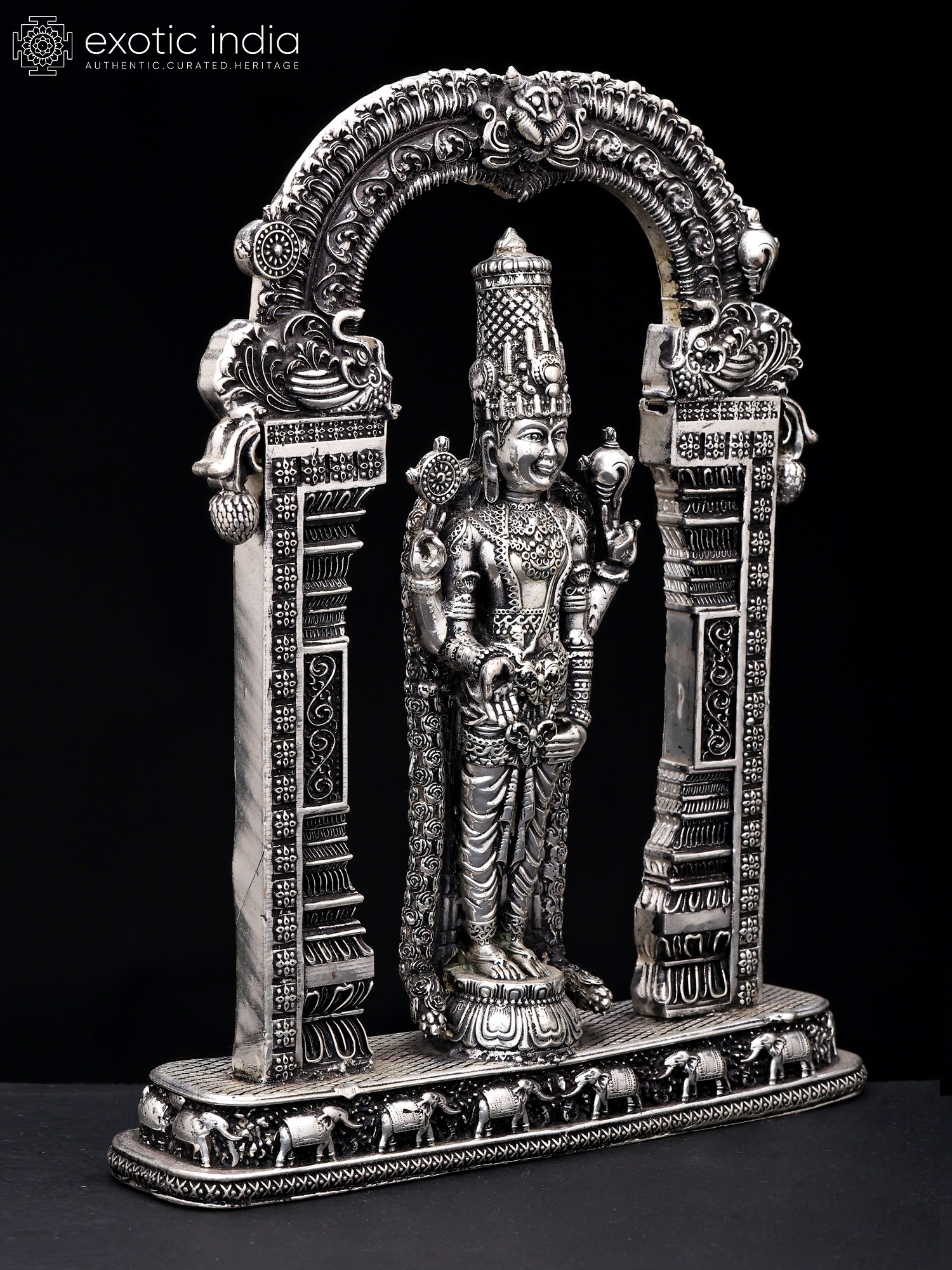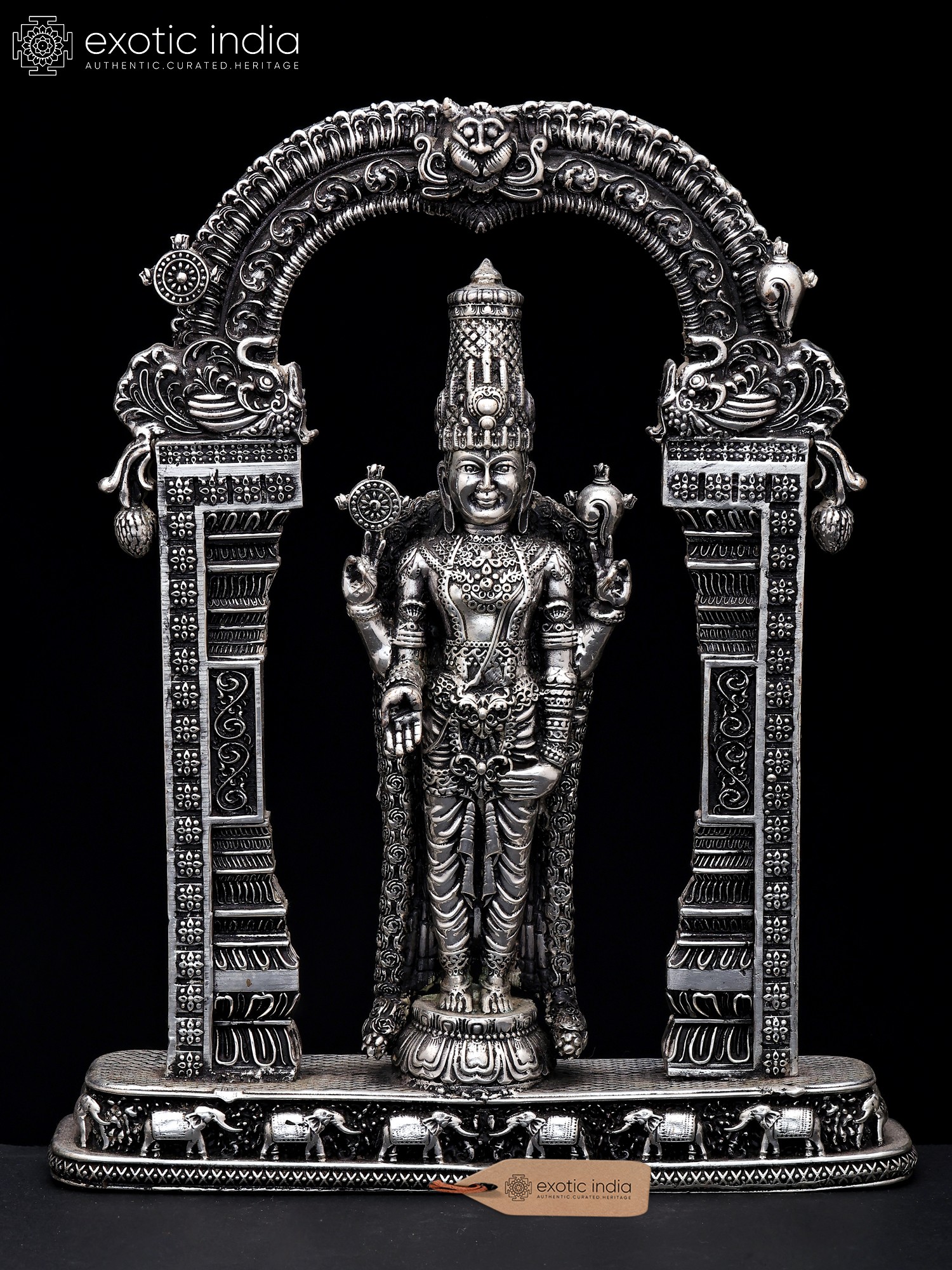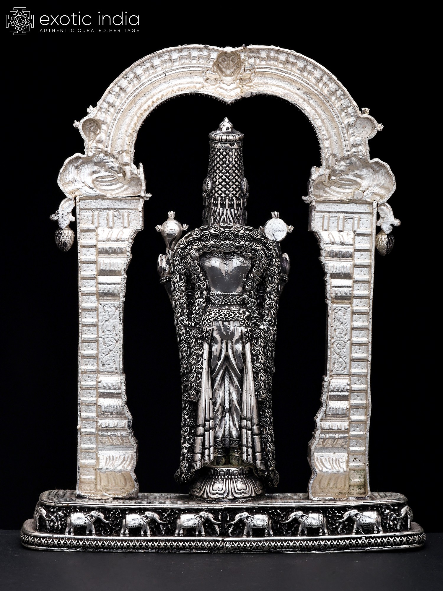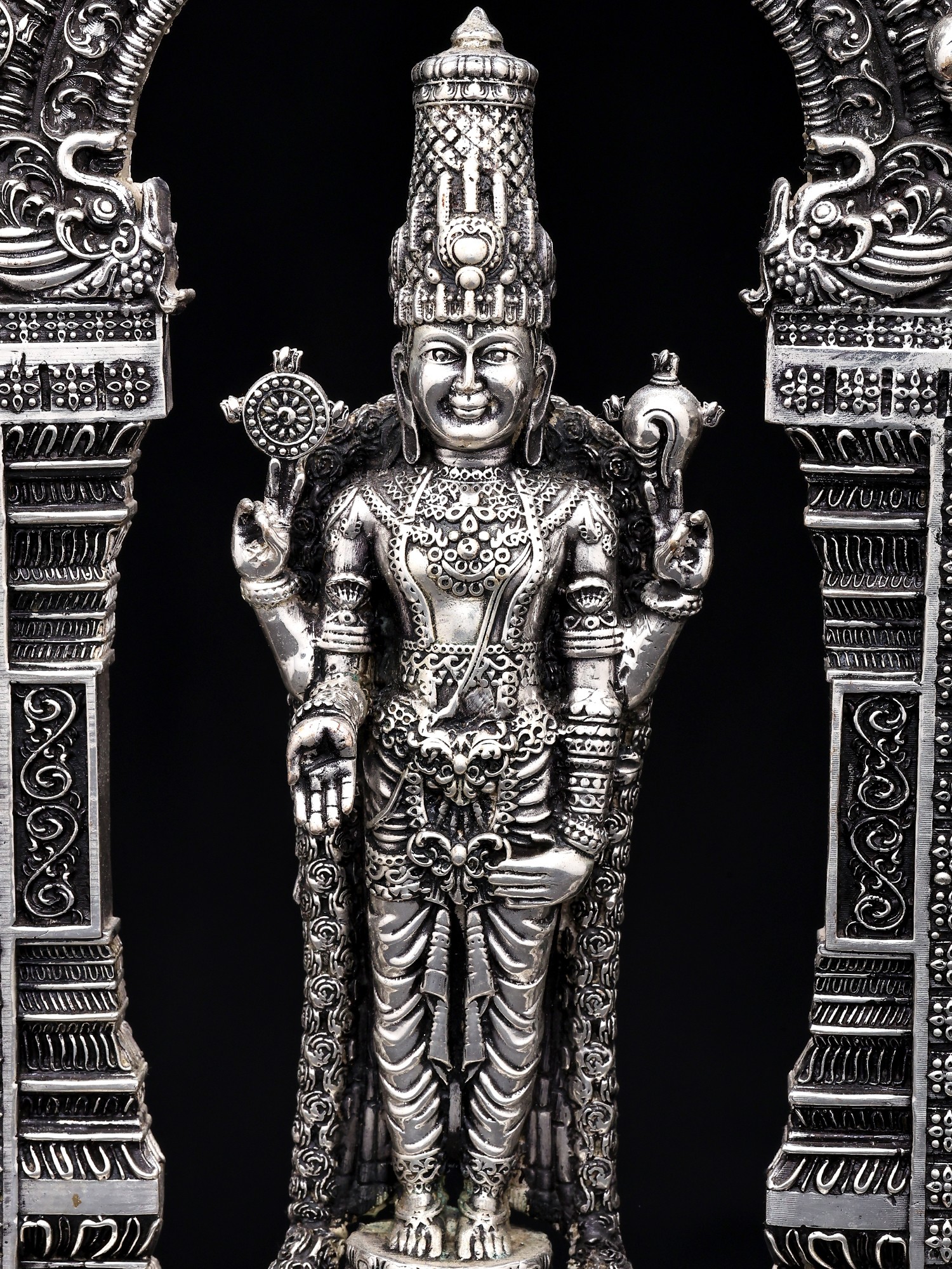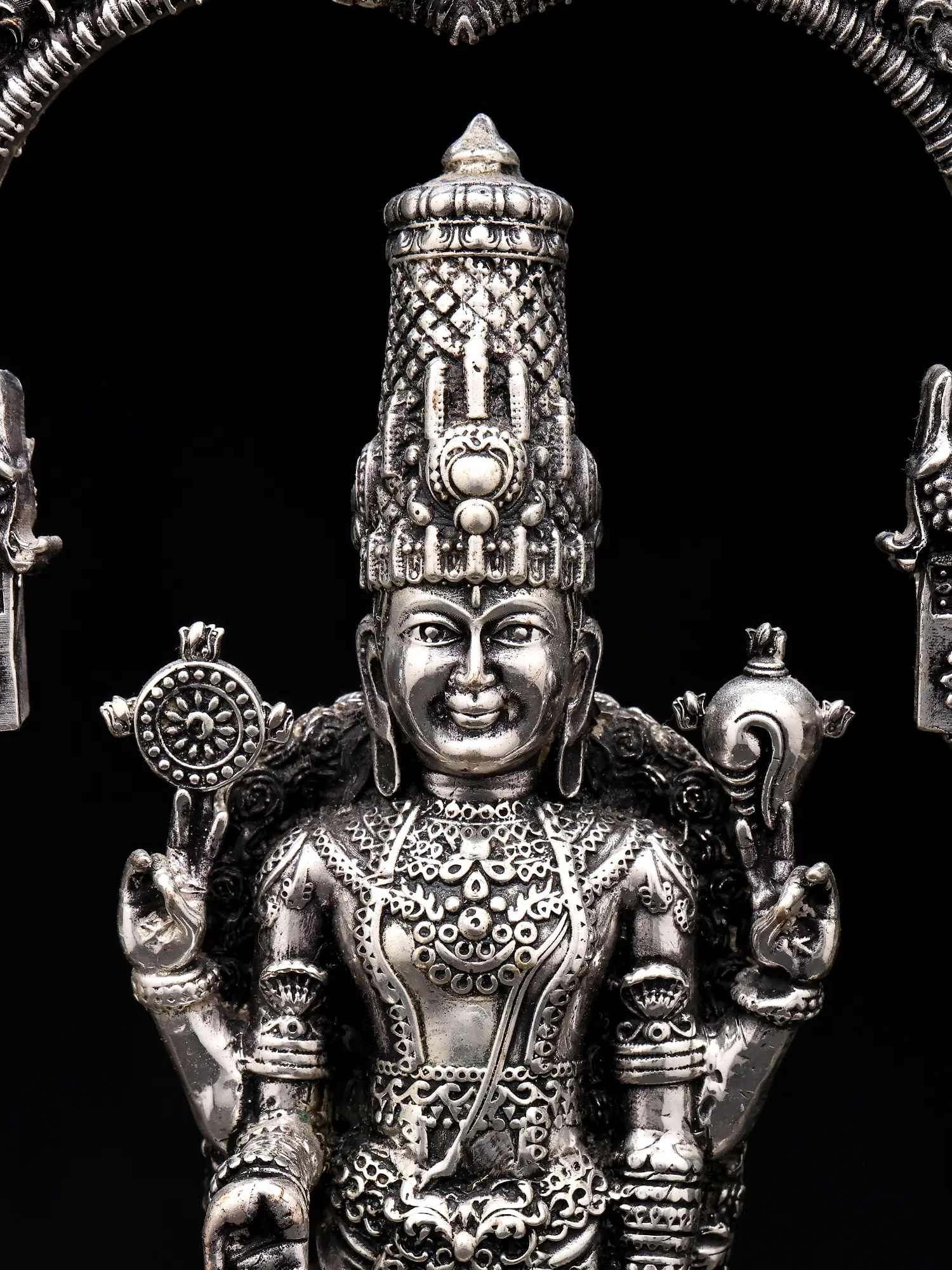 10" Tirupati Balaji (Venkateshvara) with Kirtimukha Arch | Brass Statue