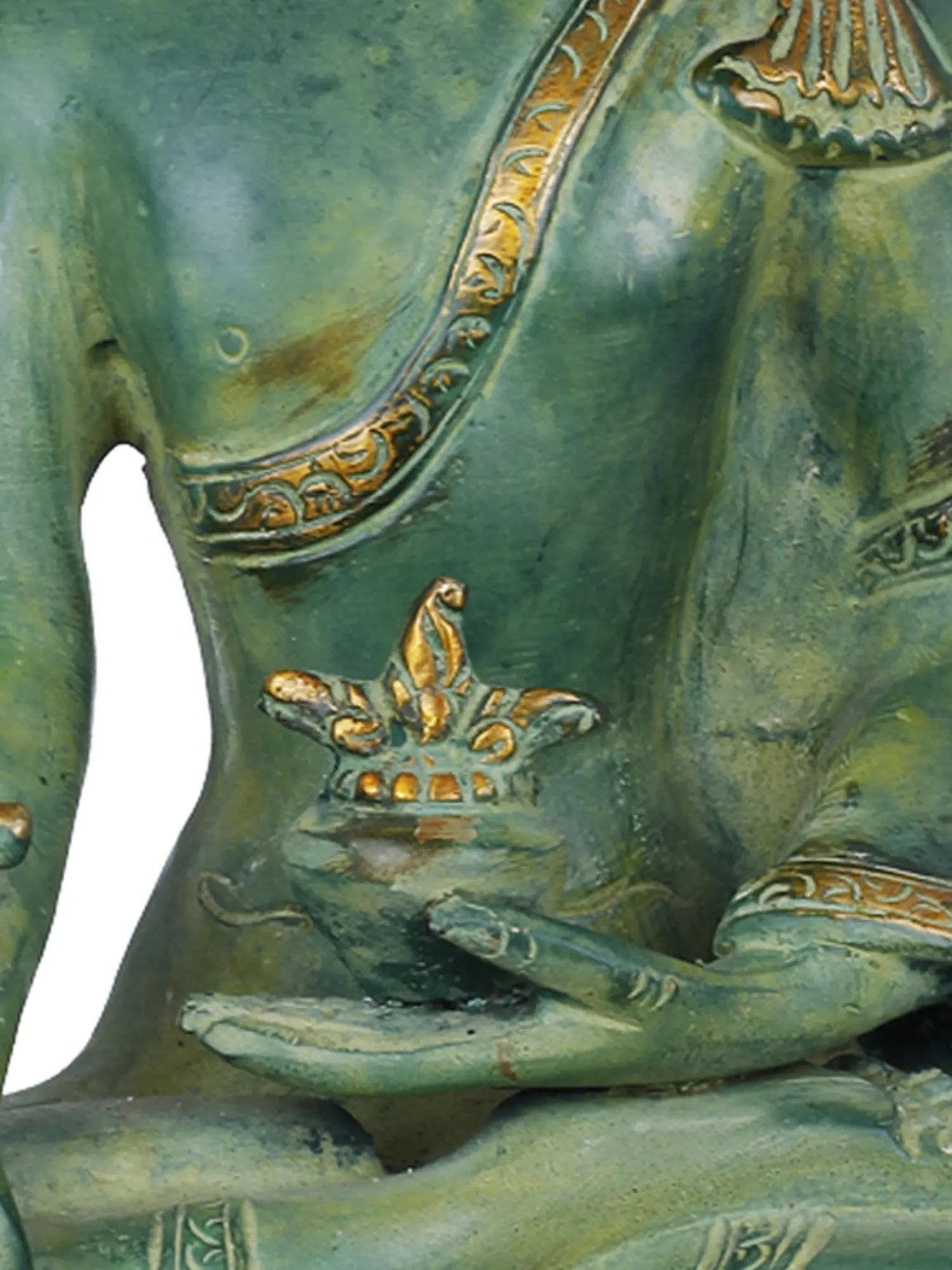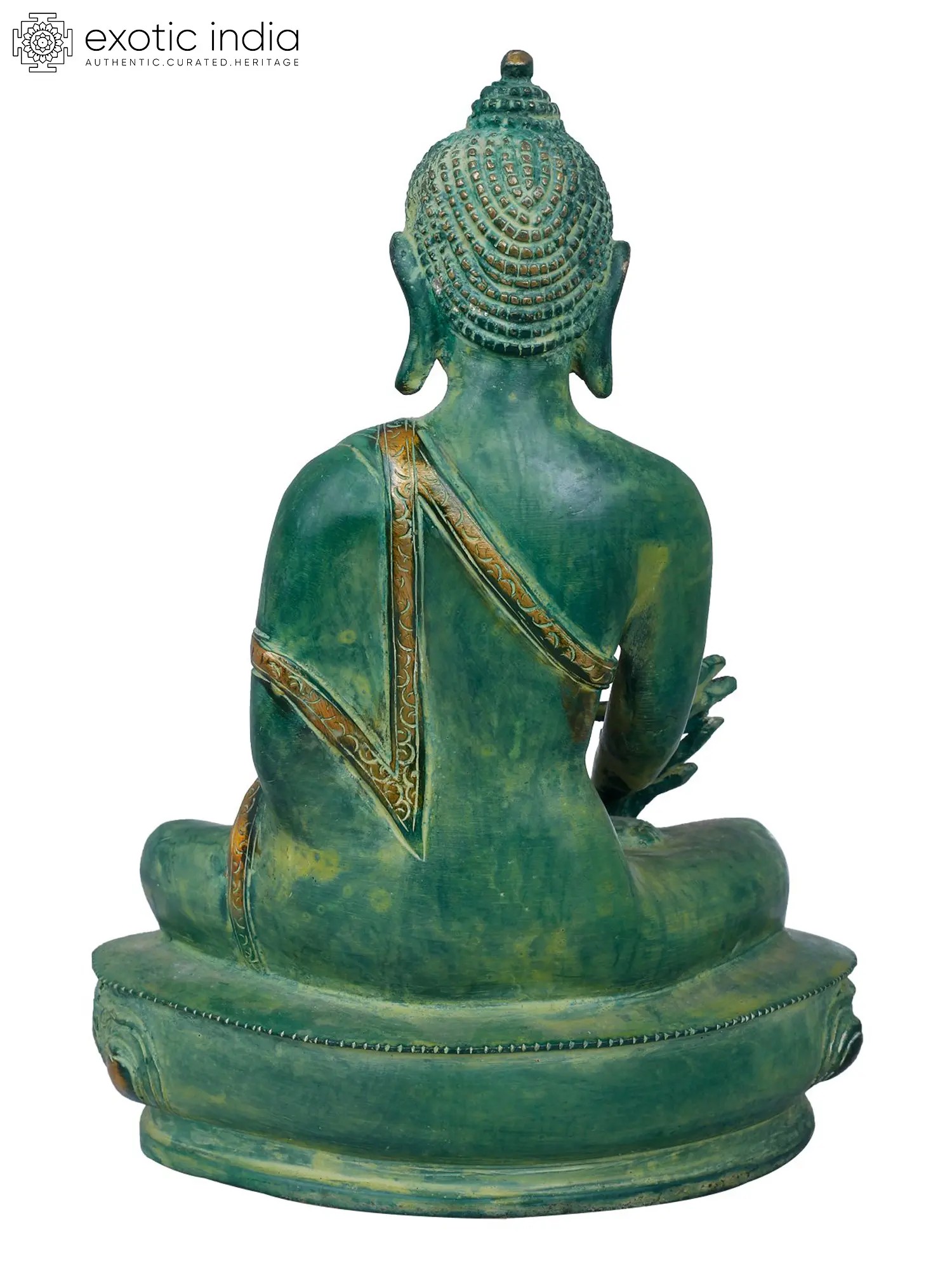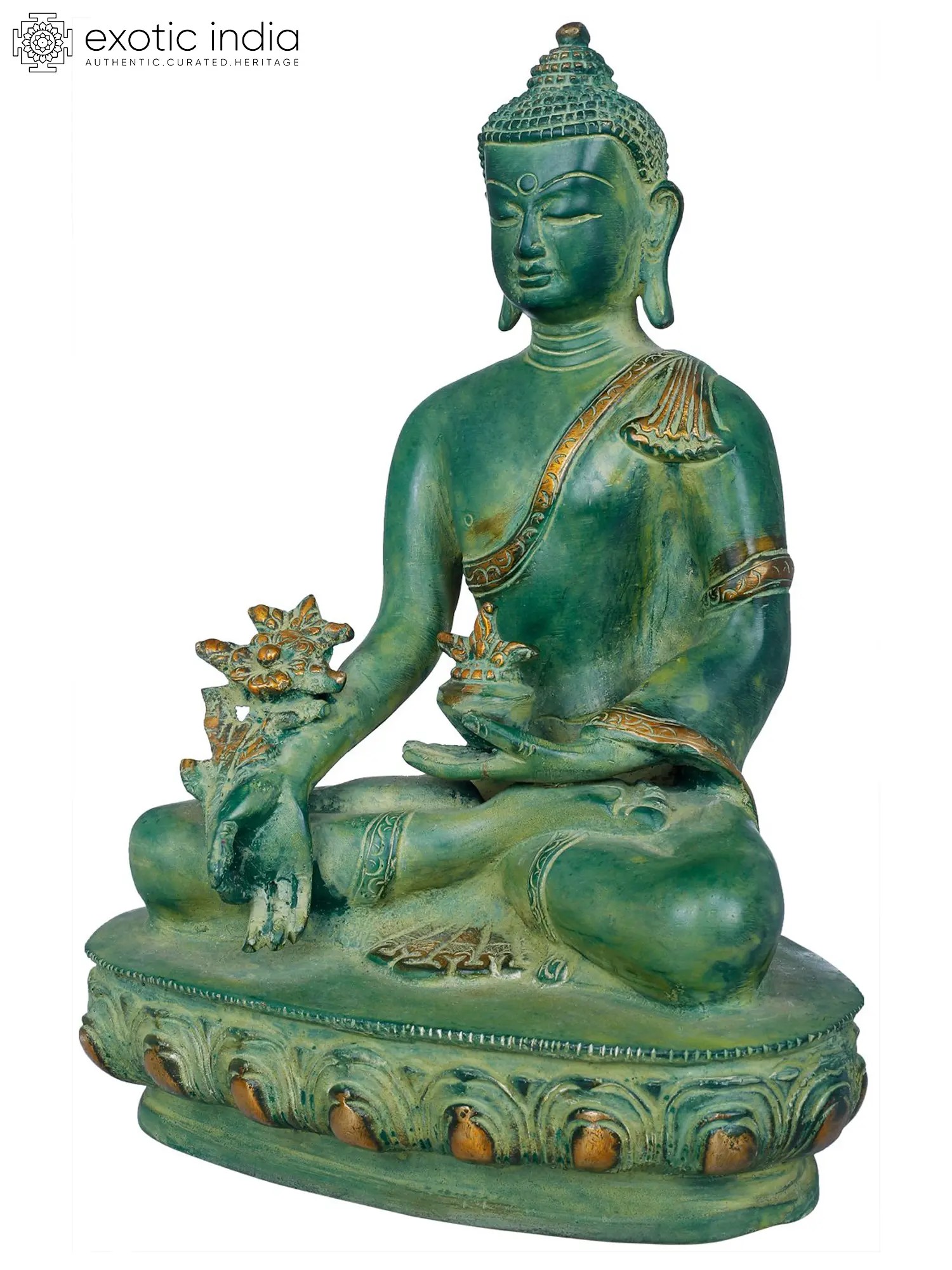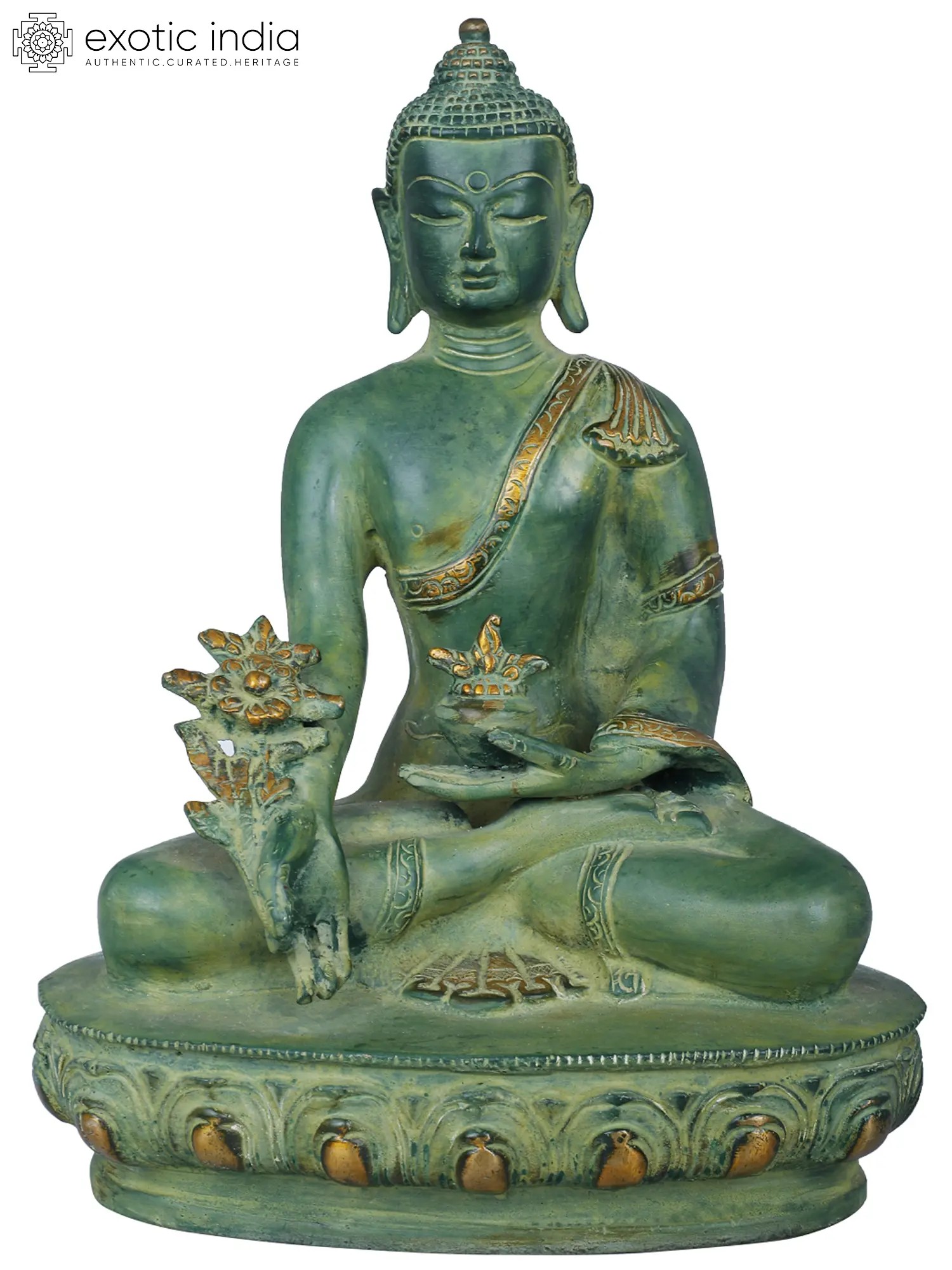 Find solace and healing energy with this handmade Brass Tibetan Buddhist Deity Medicine Buddha. This sacred statue, crafted in India, represents the compassionate and healing aspect of Buddhism. In Tibetan Buddhism, the Medicine Buddha is revered for his ability to heal physical and spiritual ailments. His serene expression and the aura of tranquility he exudes embody the belief in the interconnectedness of the mind, body, and spirit. The intricate craftsmanship on this brass idol reflects the beauty of the Buddhist philosophy of inner peace. Having the Medicine Buddha in your home encourages the path to holistic well-being and reminds you of the healing power within us all.