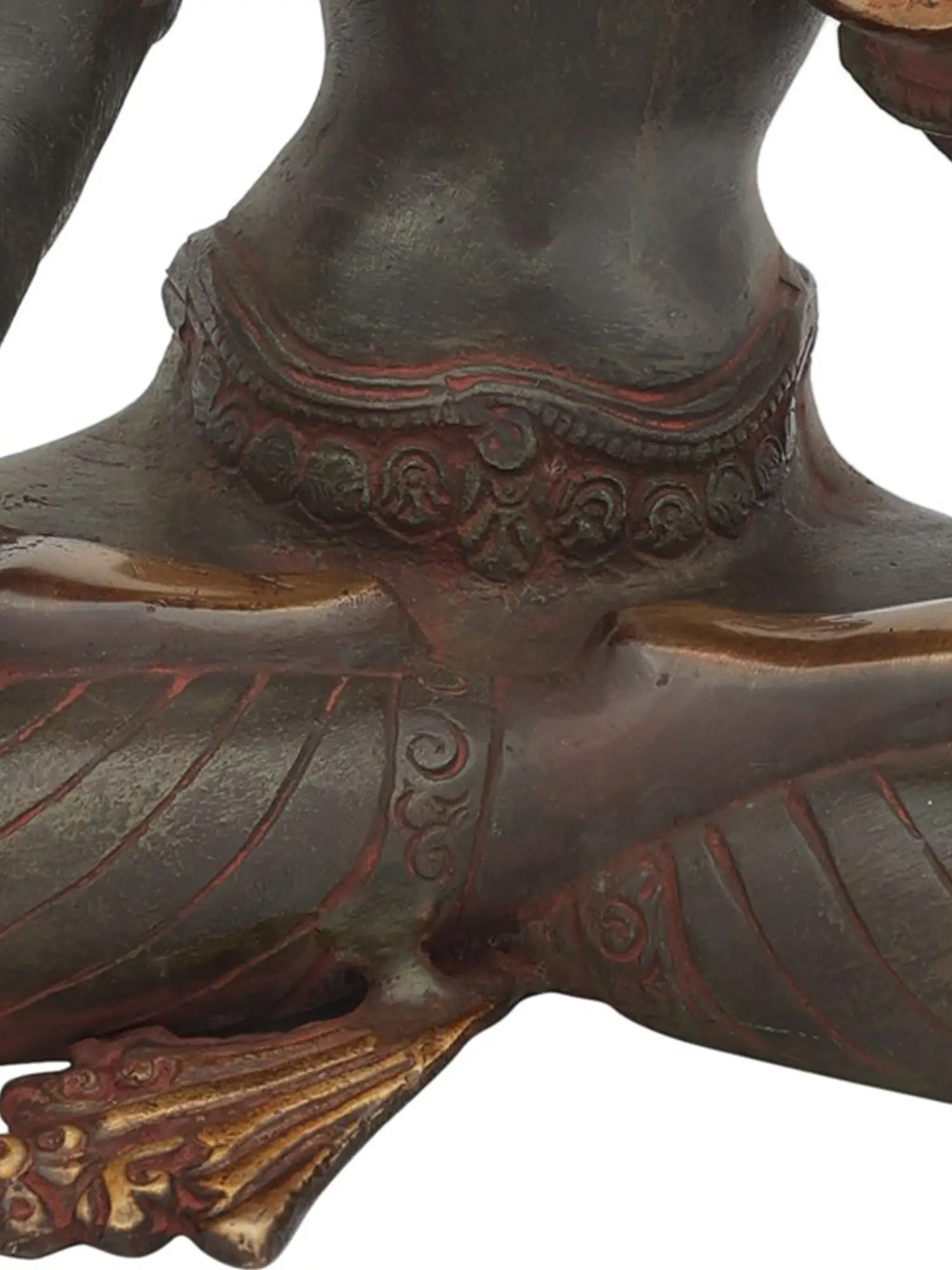 Tara is an important and revered deity in Tibetan Buddhism who appears as a female Bodhisattva. Buddhist monks and followers meditate on the image or deity of Tara to develop some good qualities such as compassion and kindness. Tara is known as the mother of compassion or liberation and is considered the female aspect of Avalokiteshvara (who possesses the compassion of all Buddhas). She manifests in different forms such as Green Tara and White Tara. Green Tara is associated with fearlessness and White Tara, as radiant as the moon, is associated with good health. Tara also appears in red, blue, and yellow colors.