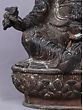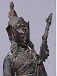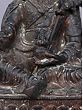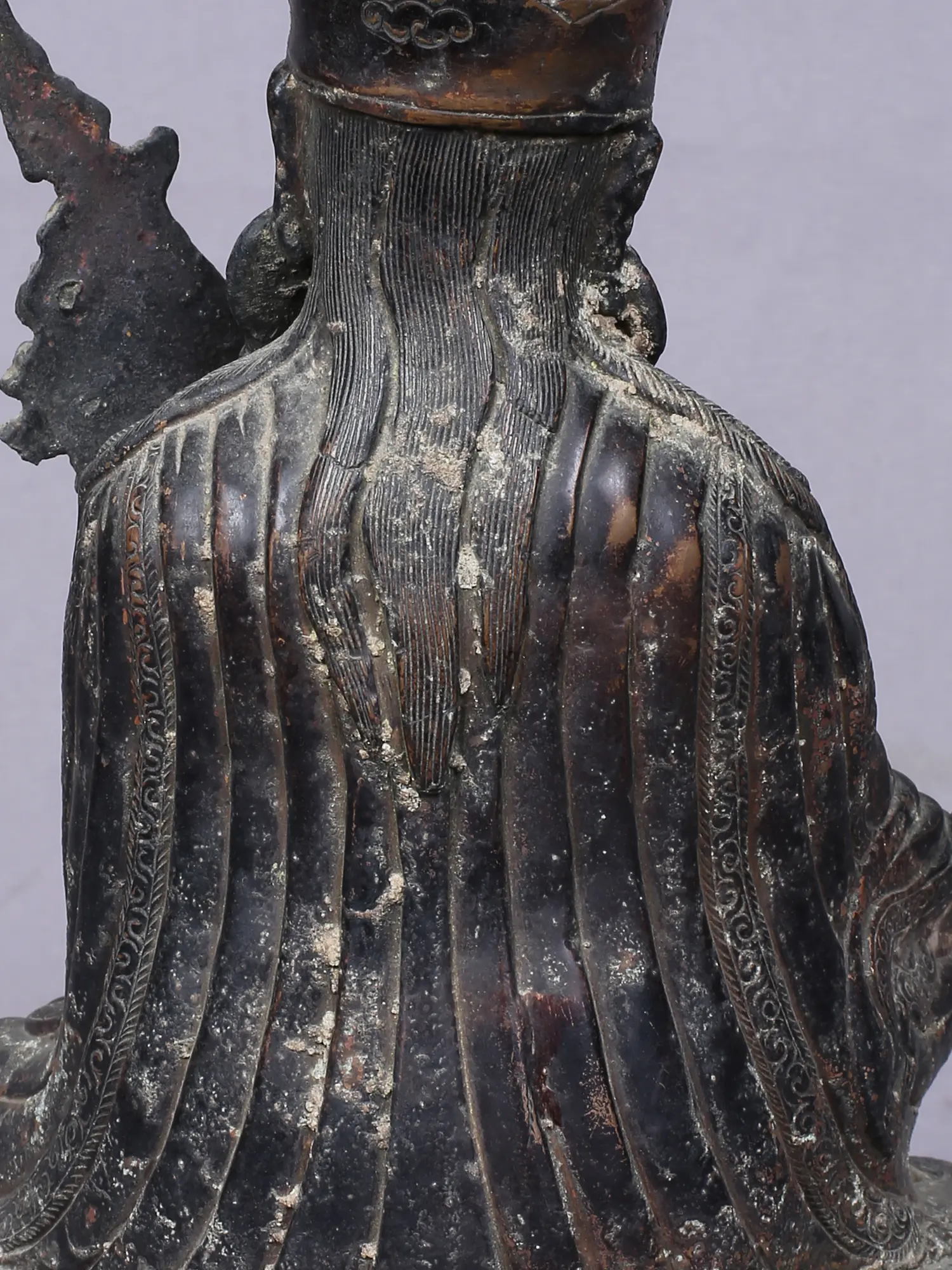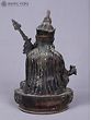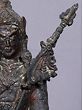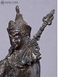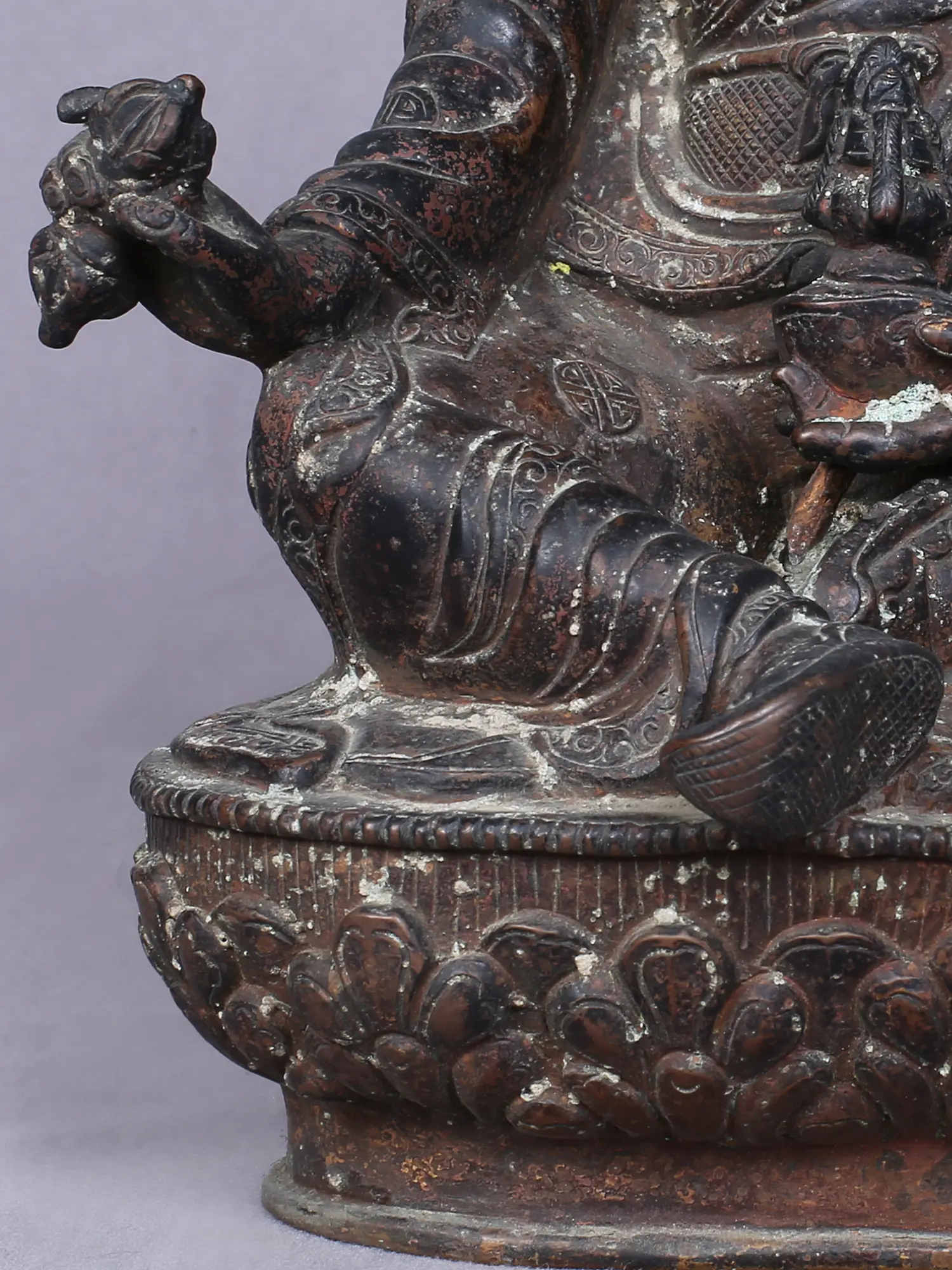 He is grasping a skullcup, or Kapala, on the other hand, which stands for the conversion of illusion into complete knowledge. The skull also indicates immense happiness and impermanence. Additionally, he is grasping a tantric staff, or Khatcanga, which is a ceremonial tool kept in the bend of the left arm.