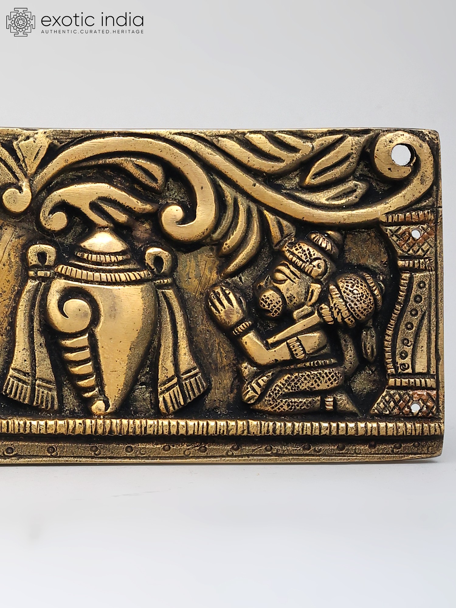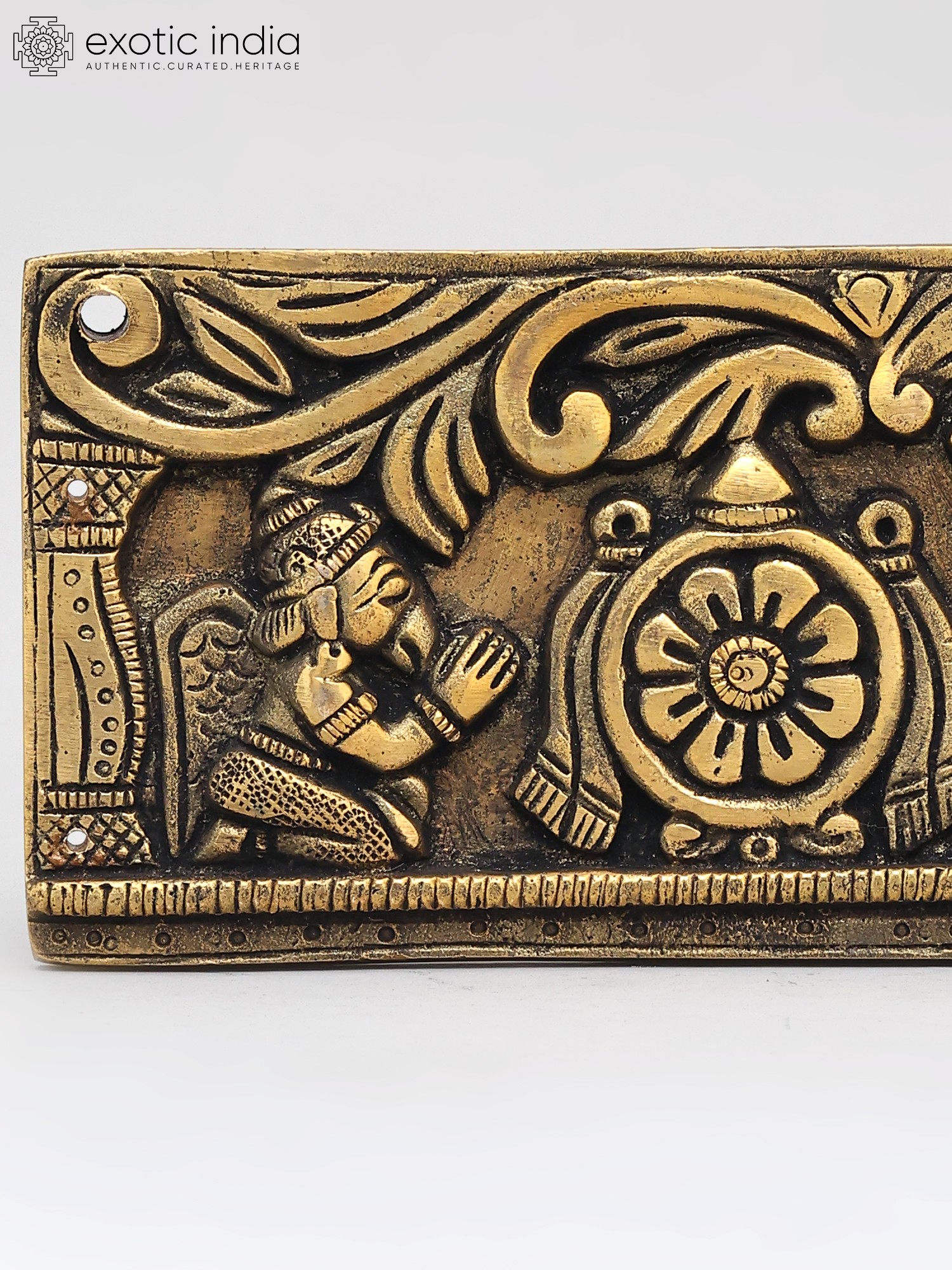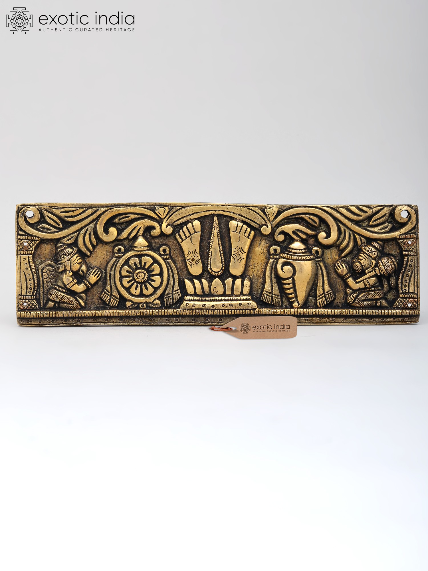 12" Wood Framed Vaishnava Symbols in Brass | Wall Hanging