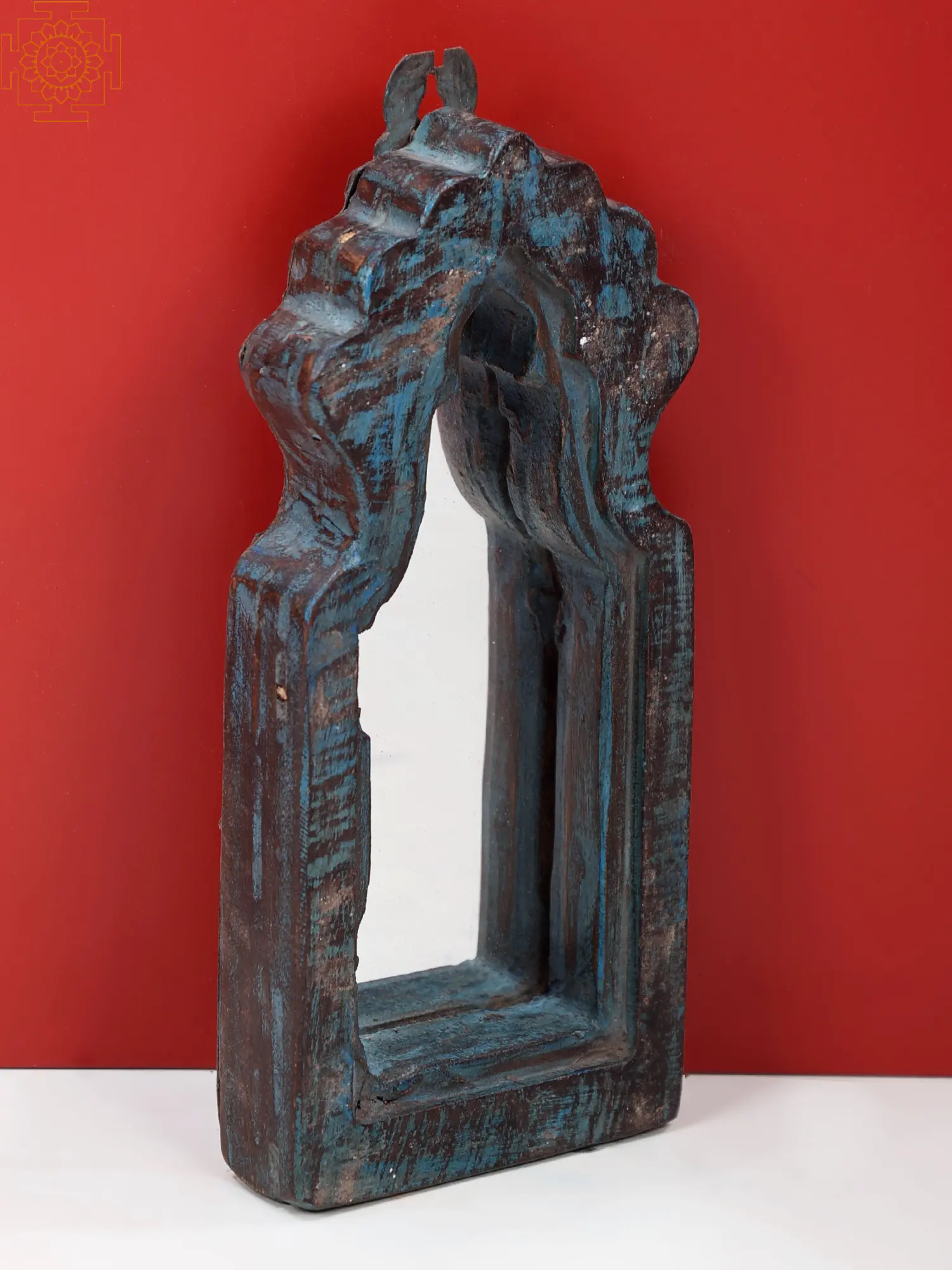 This exquisite wooden mirror is more than just a reflective surface; it's a portal to a bygone era, a testament to craftsmanship and the enduring beauty of natural materials. Its vintage charm whispers tales of distant lands and ancient traditions, inviting a touch of worldly character into your personal sanctuary. The weathered wood, with its rich, deep tones and hints of faded teal, speaks of journeys taken and stories held within its grain. Each mark, each subtle imperfection, contributes to its unique narrative, making it a truly one-of-a-kind piece.