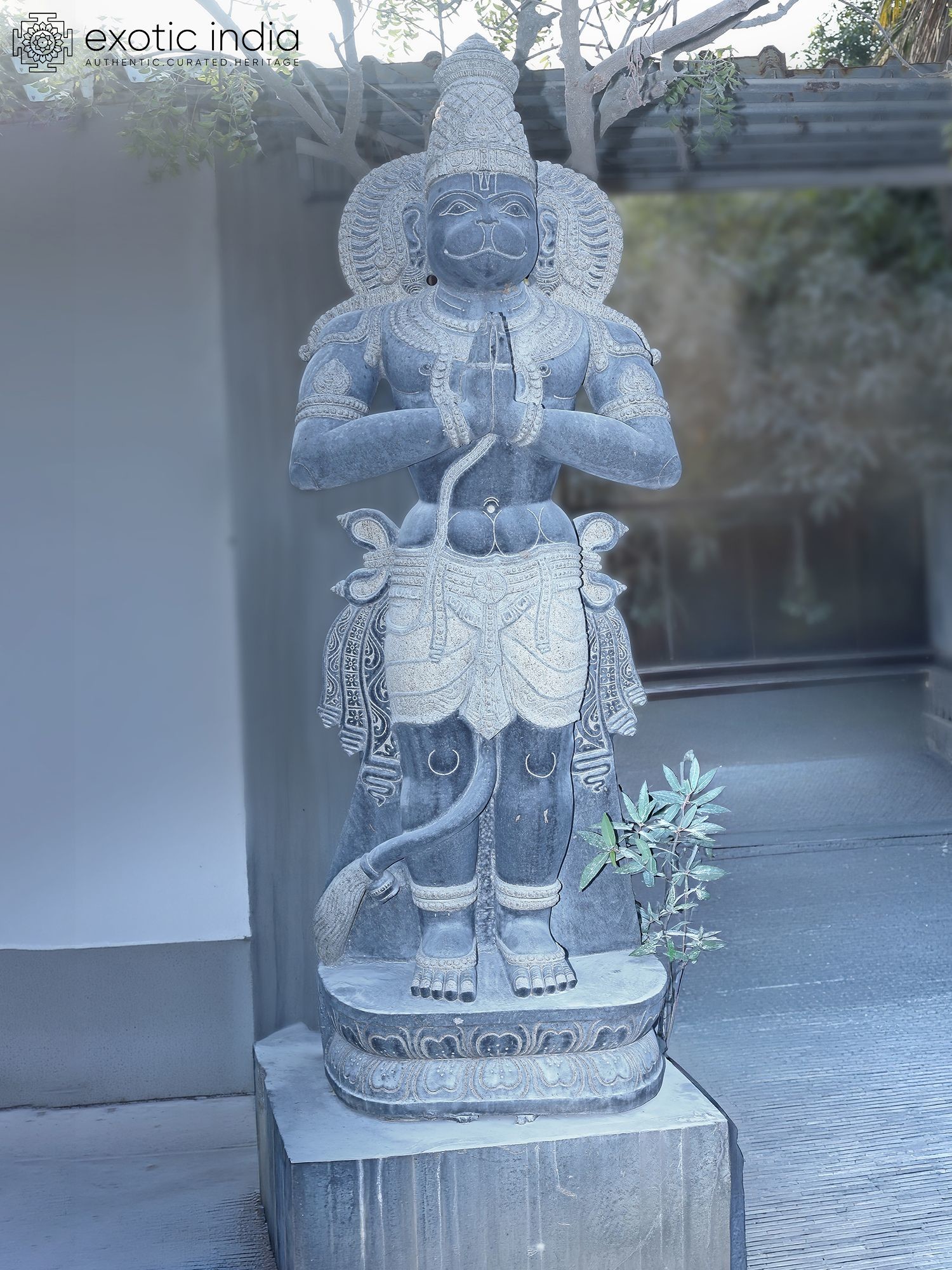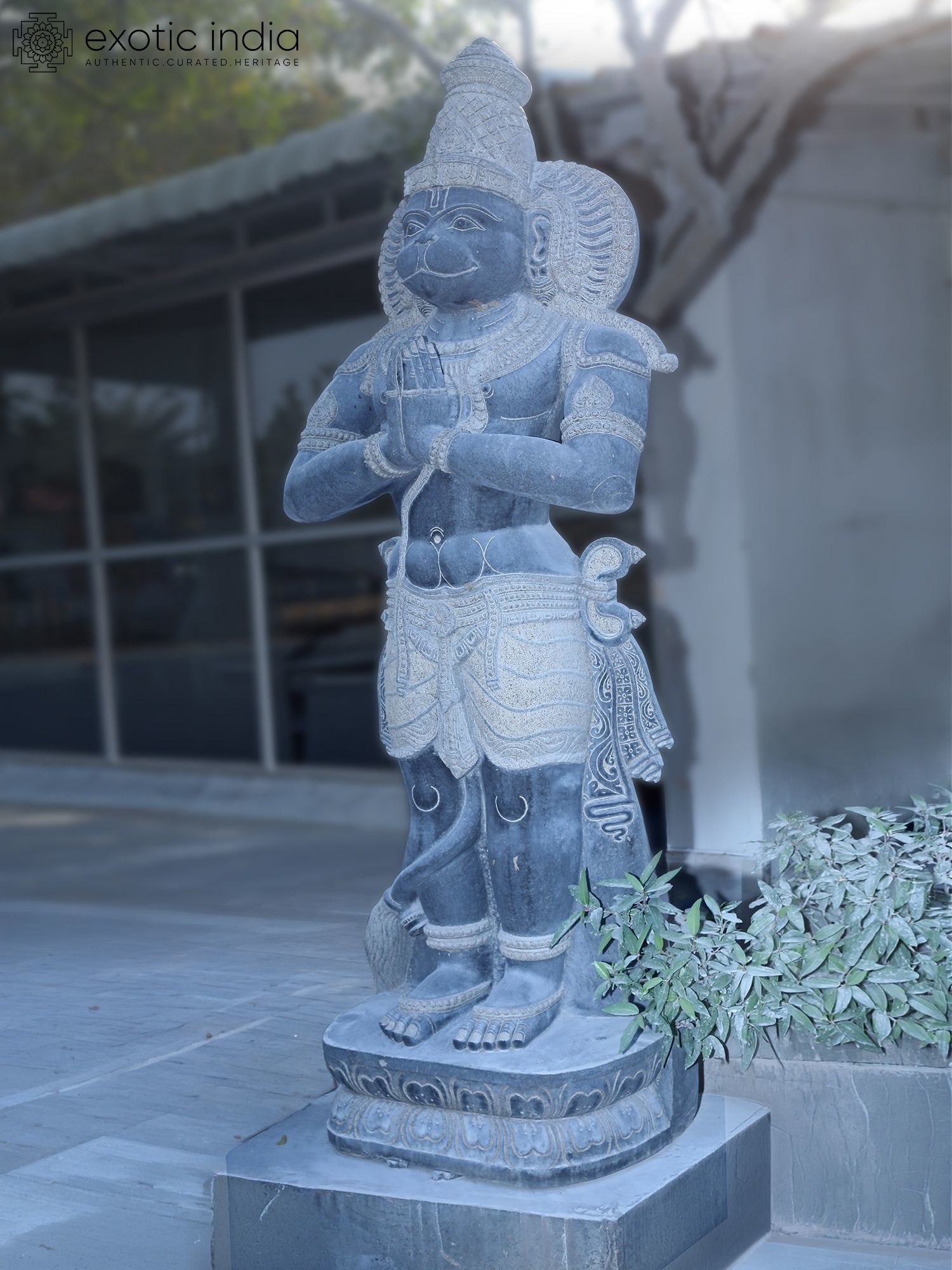 Lord Hanuman Stone Statue: 39" Tall, Blessing Pose, Arch Background