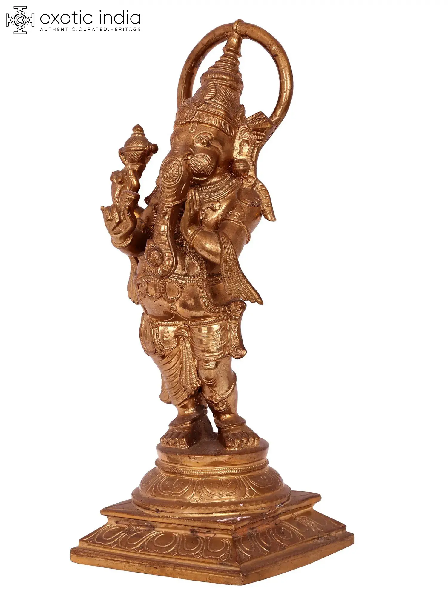 Explore the divine amalgamation with our Aadyanta Prabhu sculpture, a unique creation through Madhuchista Vidhanam in Swamimalai's Panchaloha Bronze. This masterpiece beautifully portrays a form of Rudra, combining the divine attributes of Ganesha and Hanuman. Beyond its artistic finesse, the sculpture embodies the Hindu philosophical concept of 'Infinite Divinity,' symbolising the timeless and boundless nature of the divine. The lost-wax technique intricately details the unique form, inviting you to contemplate the infinite and eternal aspects of divinity.