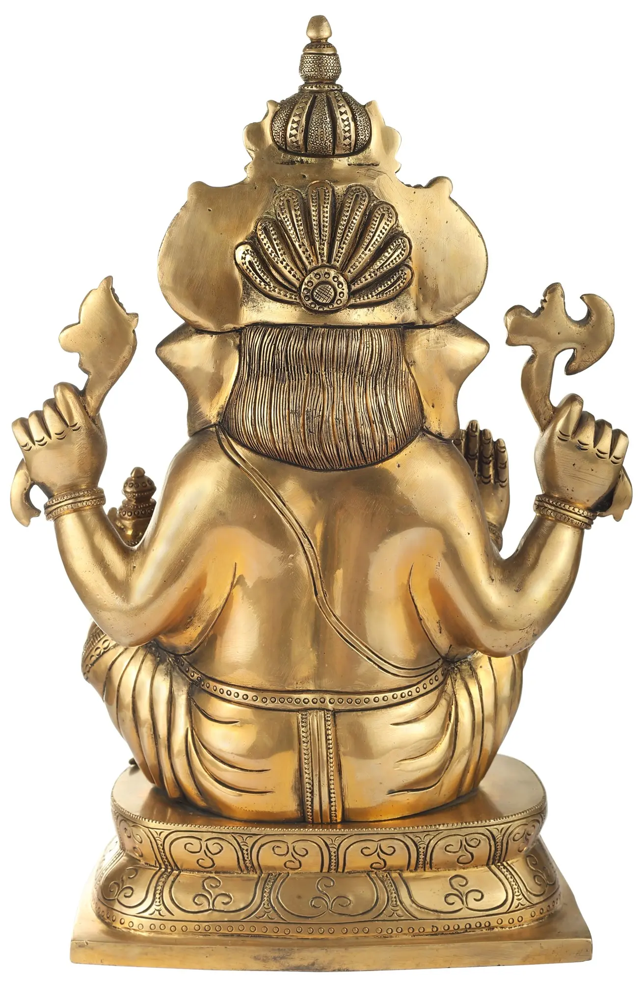This exquisite Ganesha idol is cast in high-quality brass, a metal revered in Hindu tradition for its purity, durability, and auspicious properties. The warm, golden sheen of the brass lends a timeless elegance to the statue, making it a captivating centerpiece for any altar, home, or office. The craftsmanship showcases traditional Indian artistry, where every curve and contour is shaped to honor the divine form. The weight and solidity of the brass ensure that this statue is not just an object of devotion but a lasting heirloom, designed to be passed down through generations, carrying with it the blessings and prayers of those who have honored it.