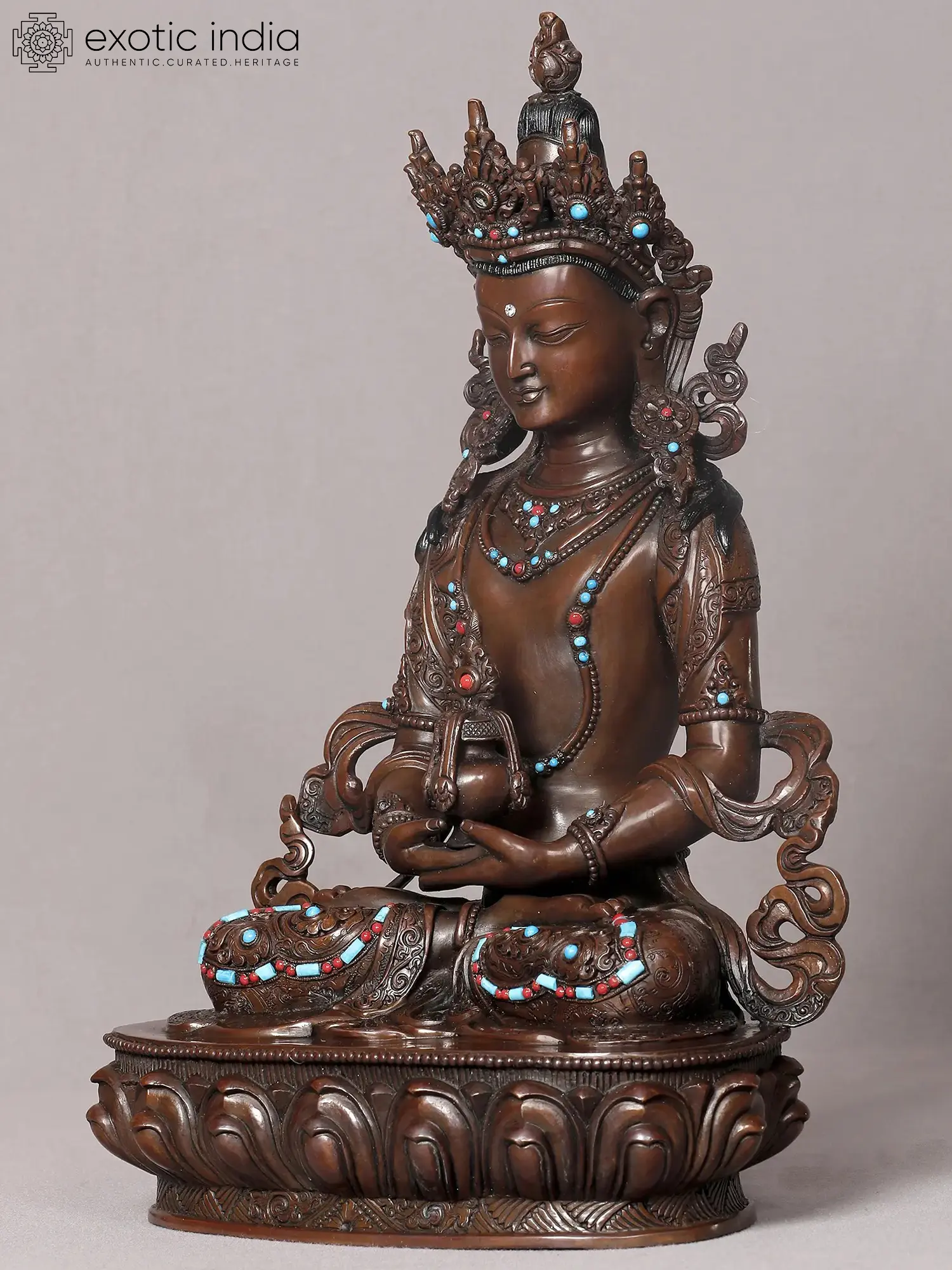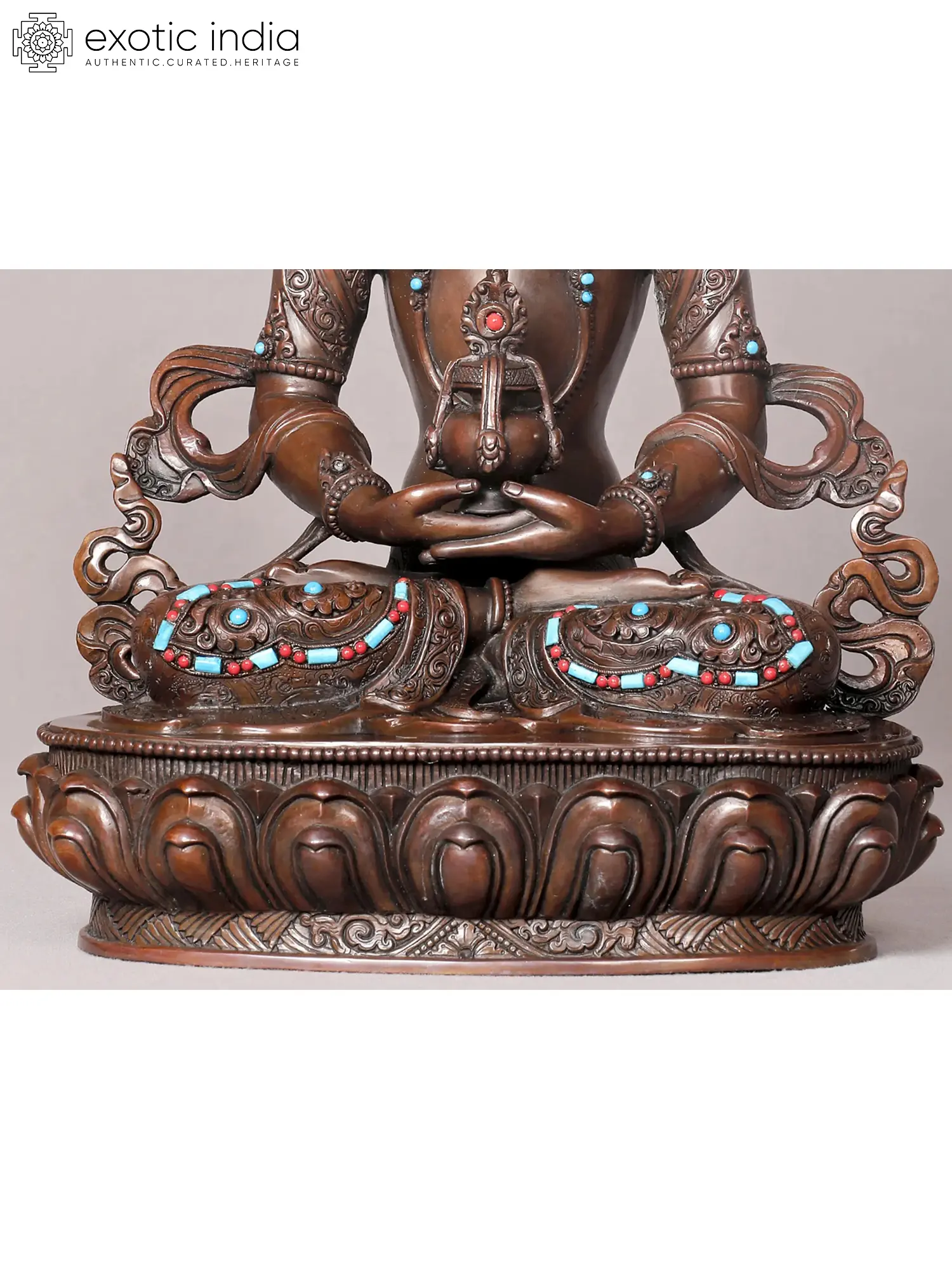 13" Copper Lord Aparmita Buddha Idol | Buddhist Deity Statue