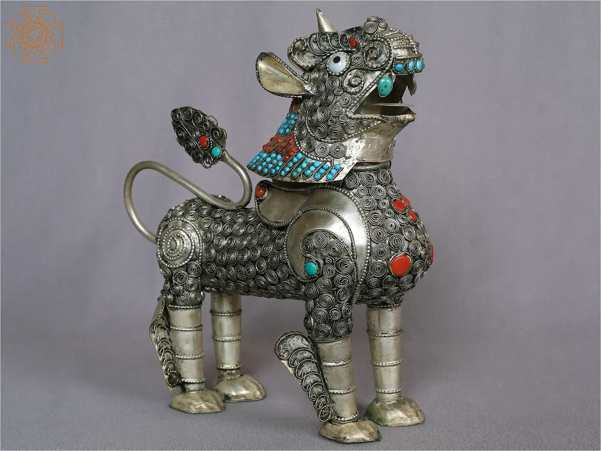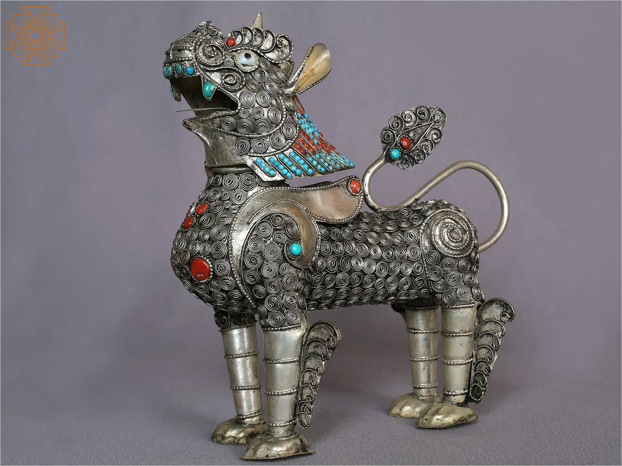 These magnificent white metal sculptures embody the spirit of powerful guardians, reminiscent of the mythical lion-like creatures that have graced sacred spaces and palaces across Asia for centuries. Their commanding presence and intricate detailing speak of a rich cultural heritage, where these beings were not merely decorative but were believed to possess potent protective energies. Often found flanking temple entrances or adorning imperial halls, these symbolic protectors served to ward off evil spirits and bring good fortune.