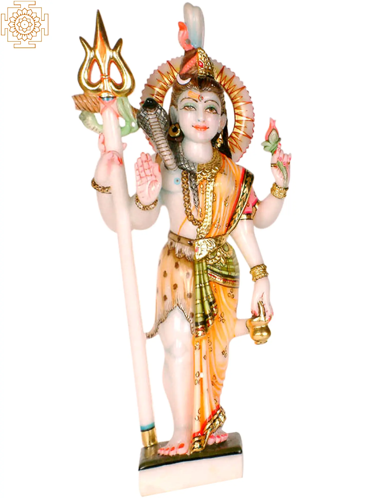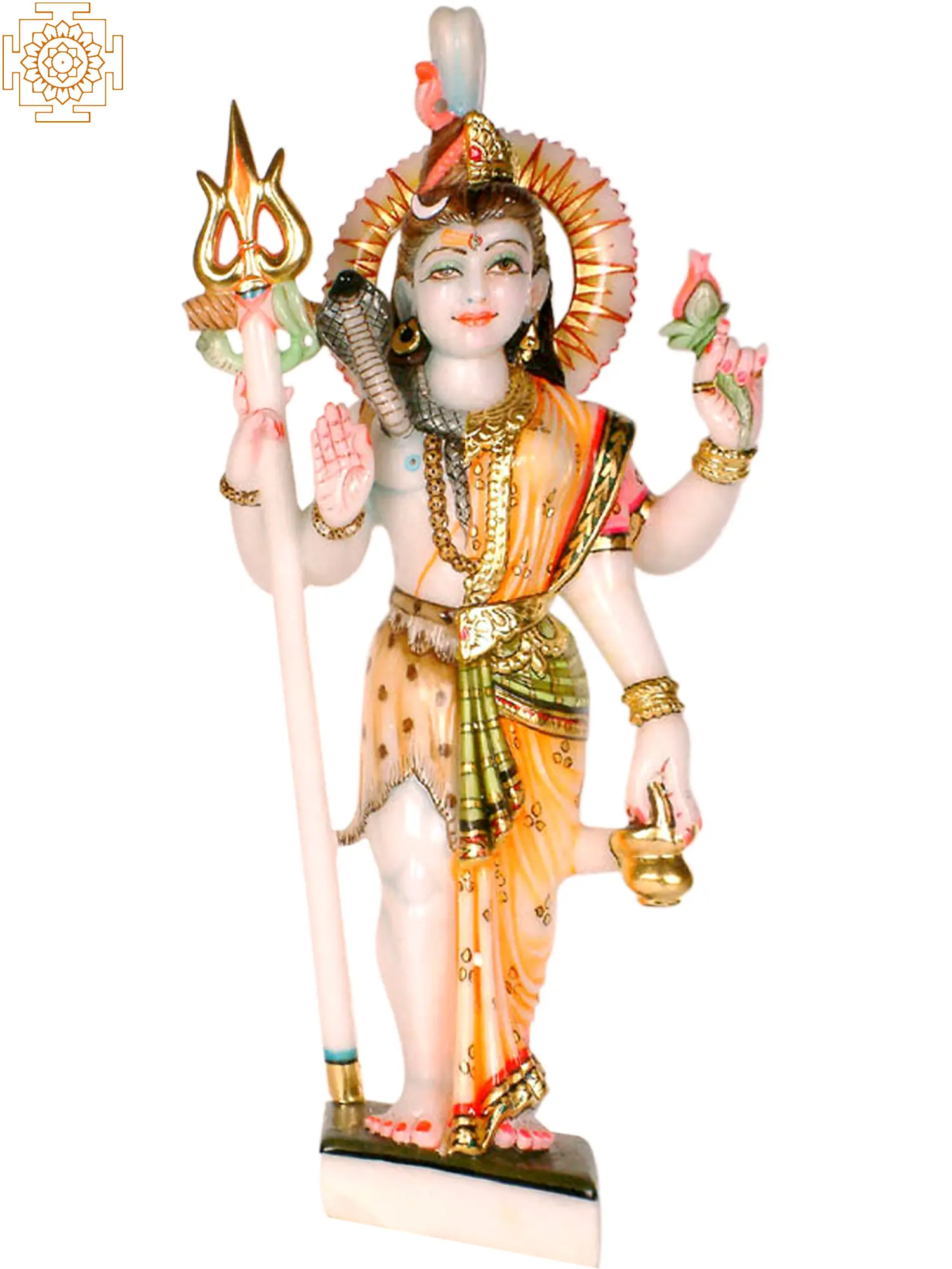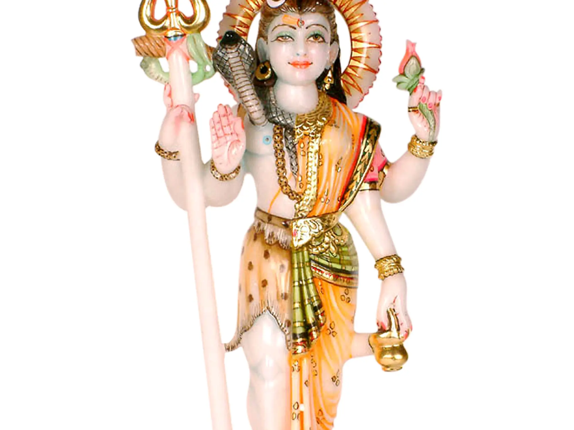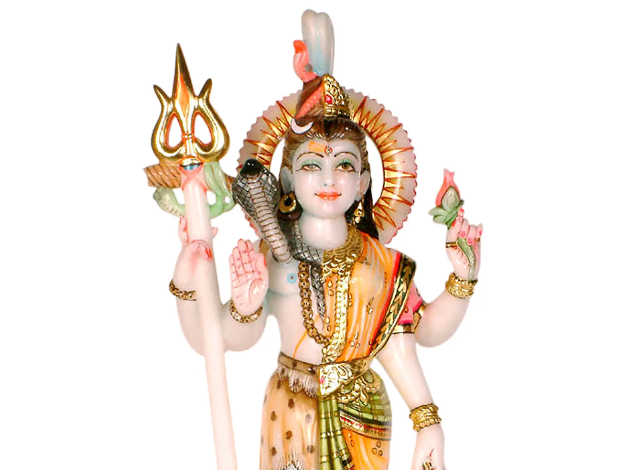 The myth surrounding this form speaks to the very essence of creation. Legend has it that Brahma, the creator, struggled to populate the universe, as his creations lacked the inclination to procreate. Realizing the necessity of both male and female energies for creation to flourish, he sought the blessings of Shiva. Shiva, in his boundless wisdom, revealed himself in this androgynous form, demonstrating that true creation arises from the union of masculine and feminine principles. By embodying both Shiva and Parvati, He showed the need for both energies to work together. The right side of this form is traditionally Shiva, adorned with his iconic matted hair, the crescent moon nestled within, and a serpent coiled around his neck. He holds the Trishul, his trident, a symbol of power and control over the three realms. The left side embodies Parvati, adorned with flowing hair, ornate jewelry, and a graceful sari. She holds a lotus flower, symbolizing beauty, purity, and spiritual awakening. The gentle curve of her form contrasts with the more austere stance of Shiva, yet they merge harmoniously.