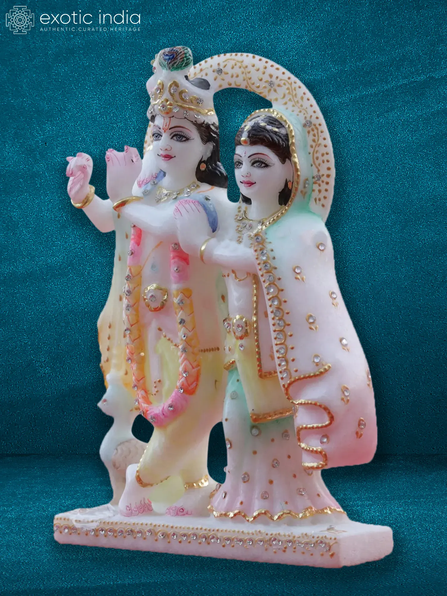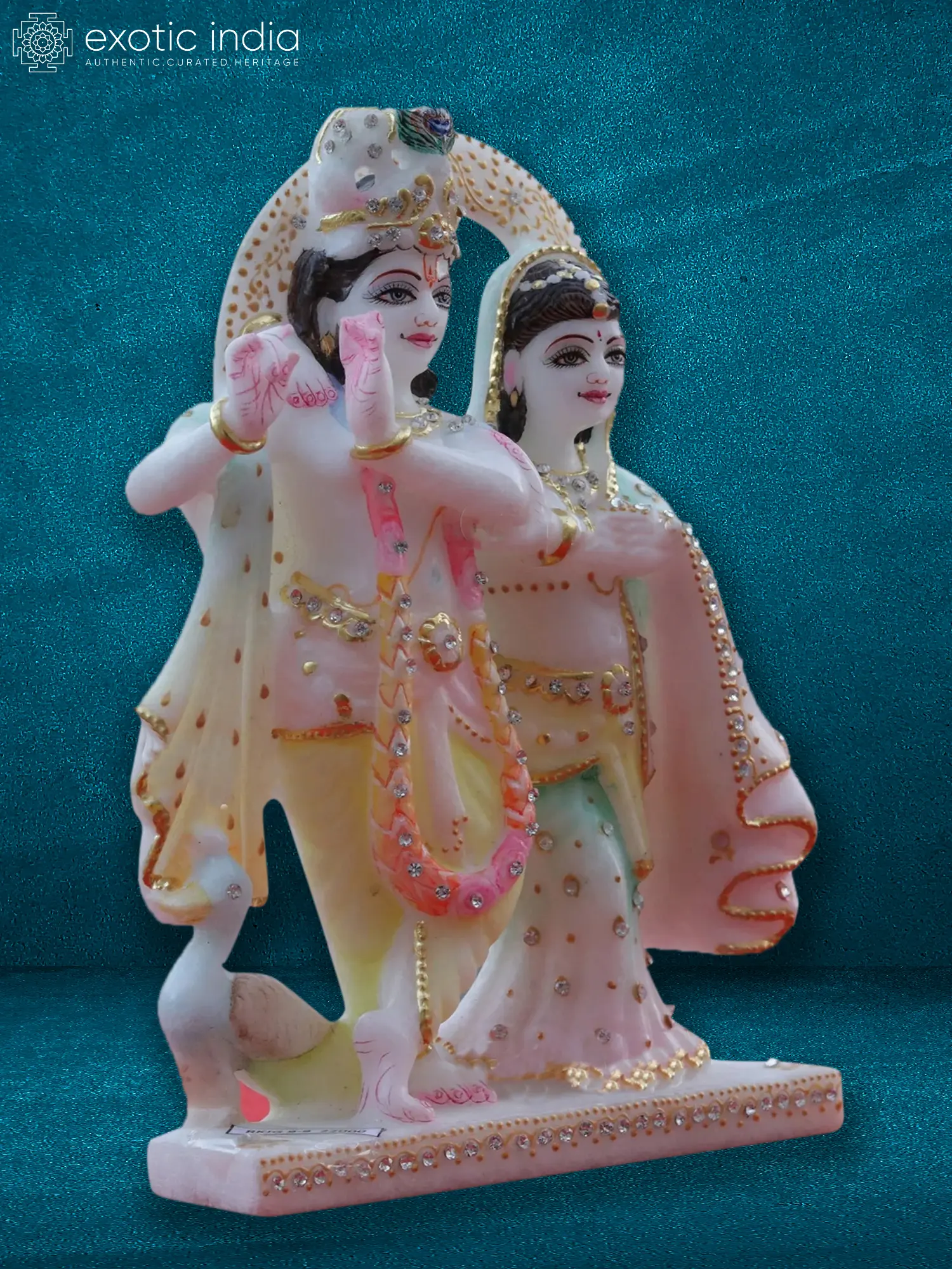 9" Colorful Radha Krishna Statue | Super White Makrana Marble Statue