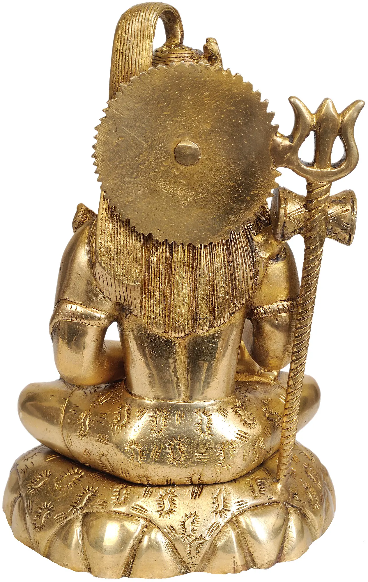 Fashioned from high-quality brass, this statue boasts a warm, lustrous finish that enhances its divine aura. The inherent durability of brass ensures that this piece will be a treasured heirloom, its golden hue deepening and gaining character with age. The skilled artisans have employed traditional casting techniques to bring forth the intricate details and subtle textures, making this a true work of art. This statue is not merely an object of devotion but a testament to the enduring legacy of Indian craftsmanship. Whether placed in a puja room, a living space, or a meditation corner, this representation of Bhagawan Shiva is sure to inspire peace, wisdom, and spiritual contemplation.