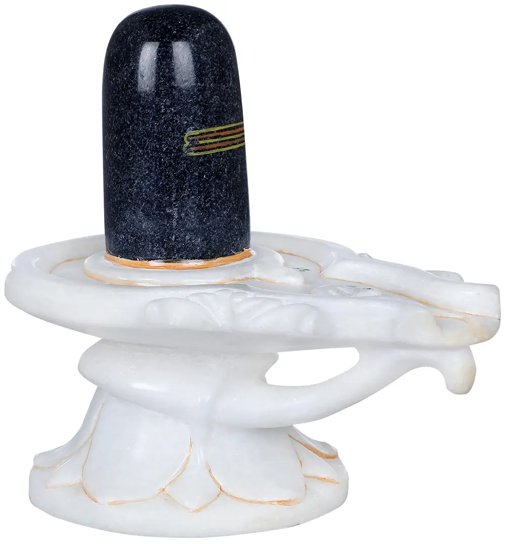 This exquisite sculpture embodies the profound symbolism of the Shiva Linga, a sacred icon revered in Hinduism as the formless representation of Lord Shiva, the preserver and destroyer of the universe. Crafted from a striking juxtaposition of deep black and pure white marble, this piece captures the inherent duality and balance that are central to Hindu philosophy. The smooth, polished surfaces of the marble enhance the tactile and visual appeal, inviting contemplation and devotion. The Linga, with its upright, cylindrical form, symbolizes the cosmic pillar of creation and the generative power of the divine. It represents the untamed, omnipresent energy that permeates all existence. The accompanying base, often referred to as the *yoni* or *pitha*, signifies the feminine principle, the womb from which all creation emerges. Together, they form an abstract representation of the cosmic union of masculine and feminine energies, the very foundation of the universe. The intricate detailing on the base, reminiscent of coiled serpents or flowing water, further adds to the mystique and sacredness of the piece, evoking imagery often associated with Shiva, the great ascetic adorned with snakes.