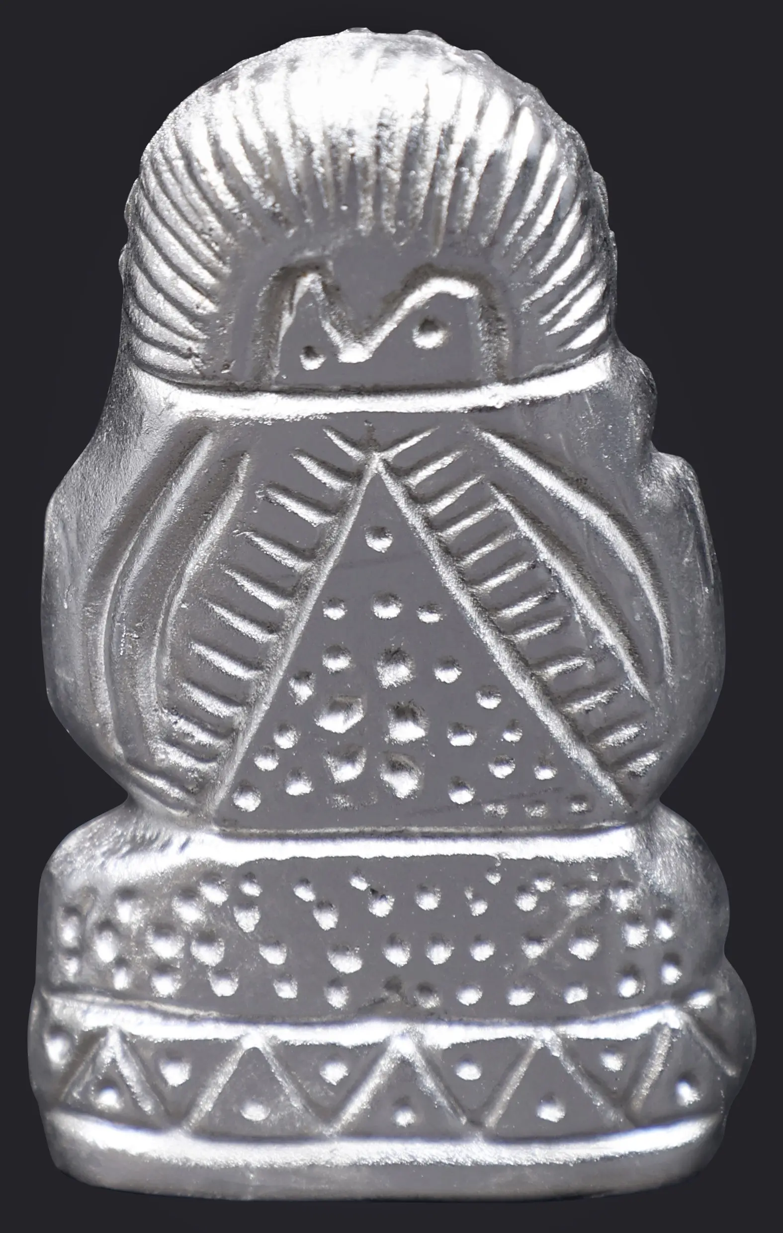 Invite the benevolent presence of Lord Ganesha into your home or sacred space with this exquisitely crafted idol. Fashioned from mercury, known in ancient texts as *Rasa*, the "elixir" or "essence," this representation embodies the fluid and transformative nature of this sacred element, believed to hold immense spiritual power. Ganesha, the elephant-headed deity, is revered as the god of wisdom, intellect, prosperity, and the remover of obstacles. His iconography is rich with symbolism, inviting contemplation and devotion. ––––––––––––––––––