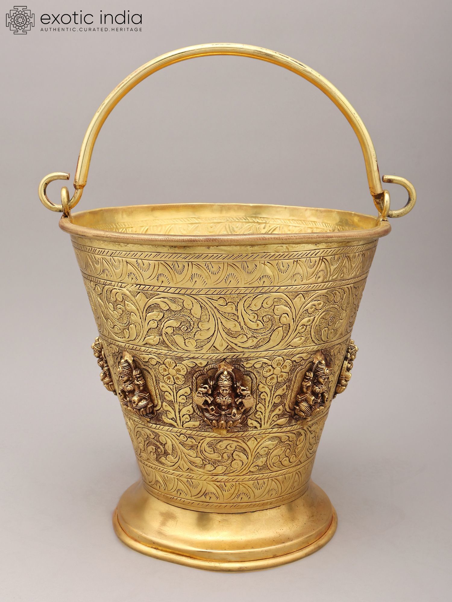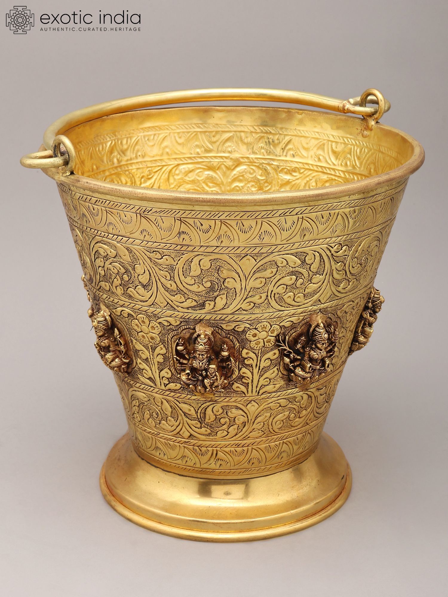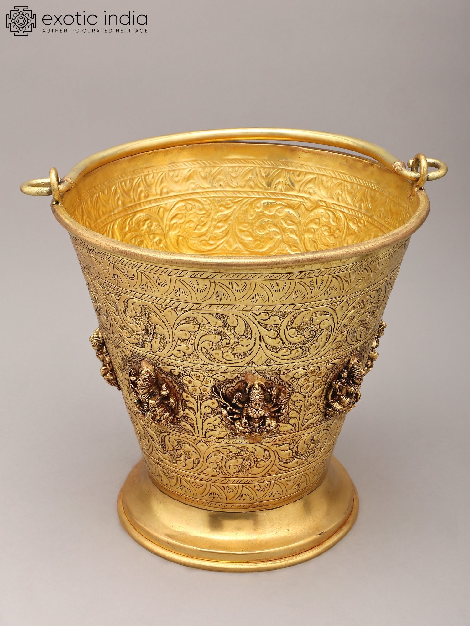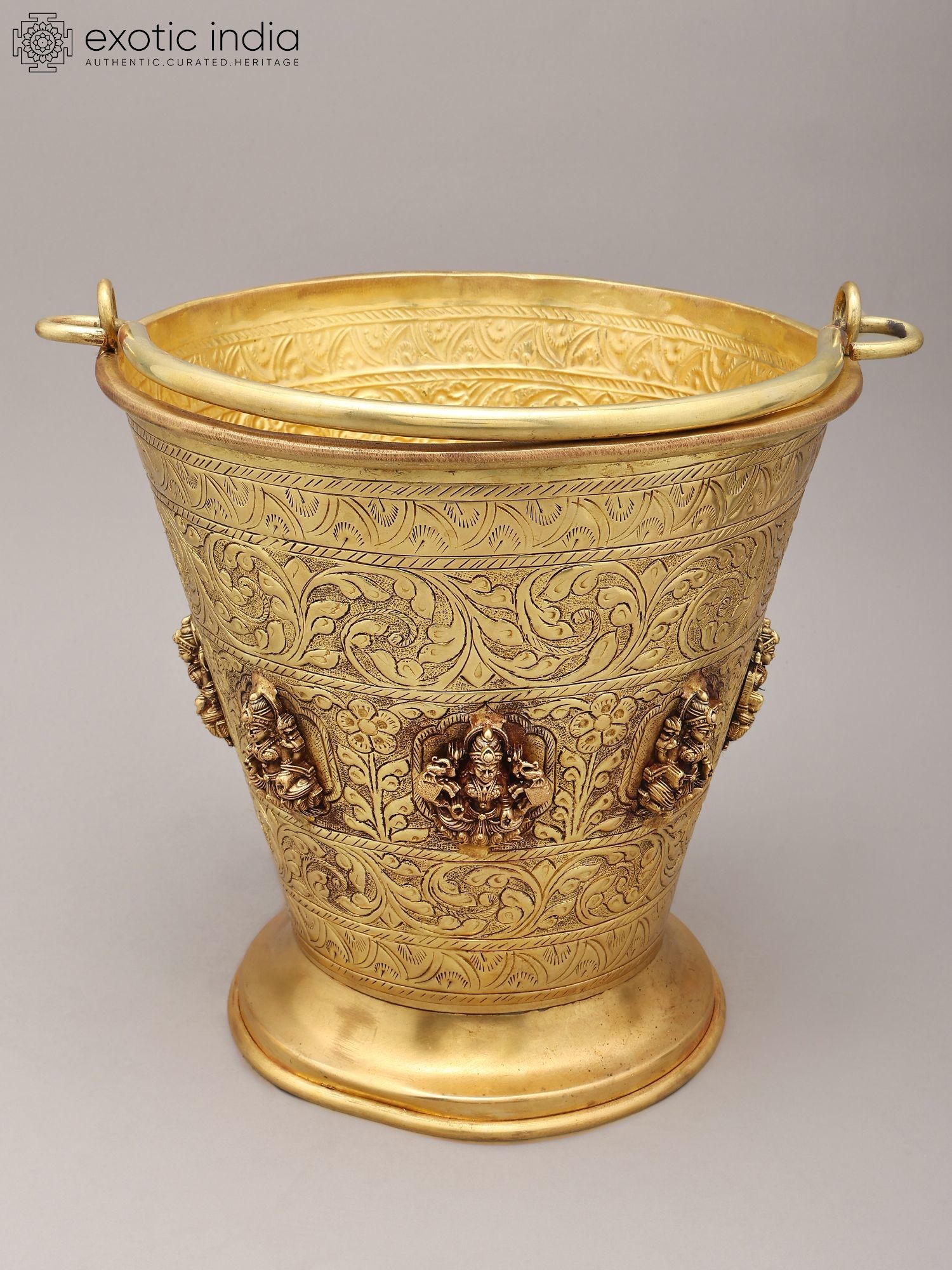 Intricate floral and decorative carvings adorn the exterior of the bucket.