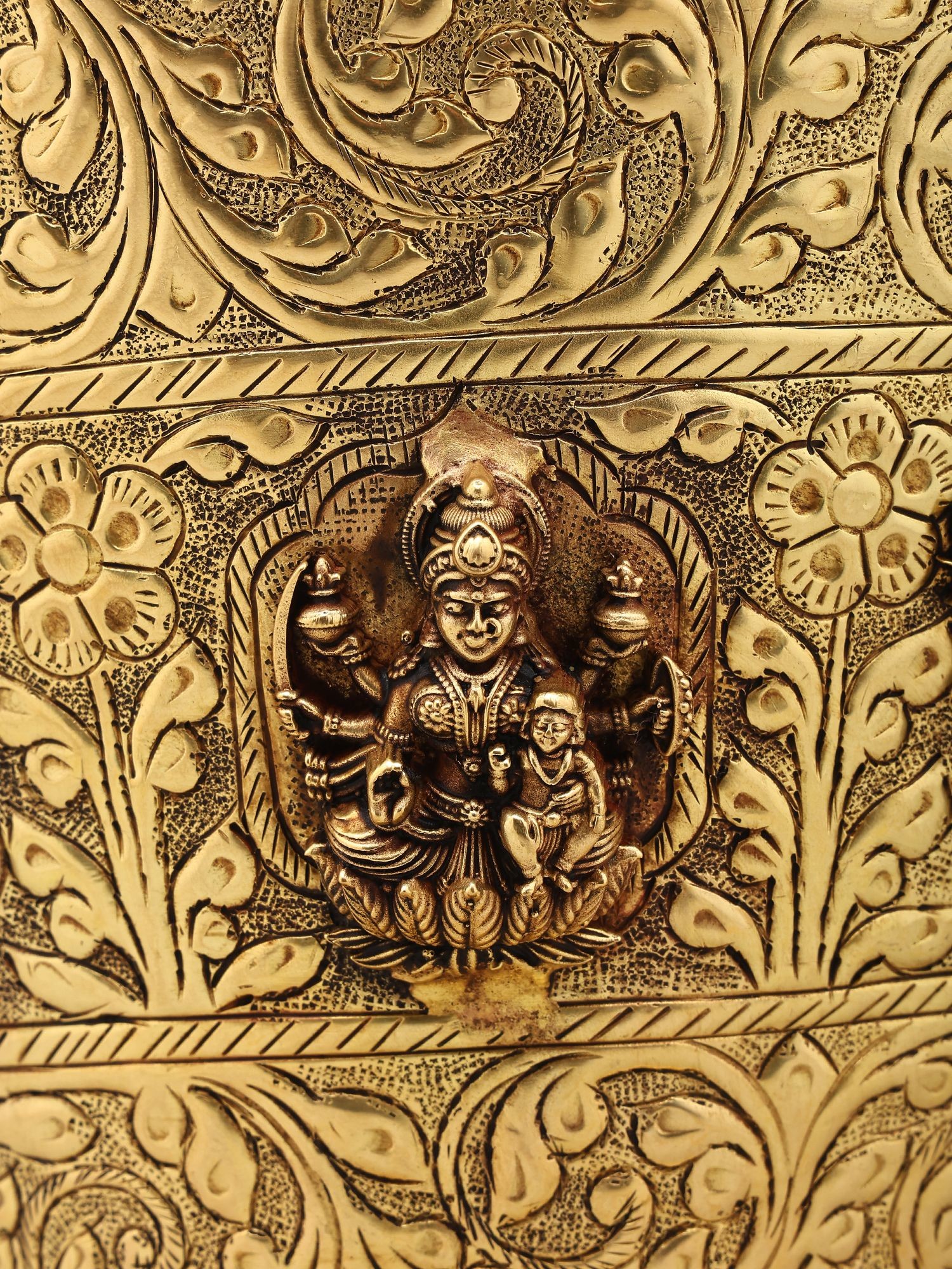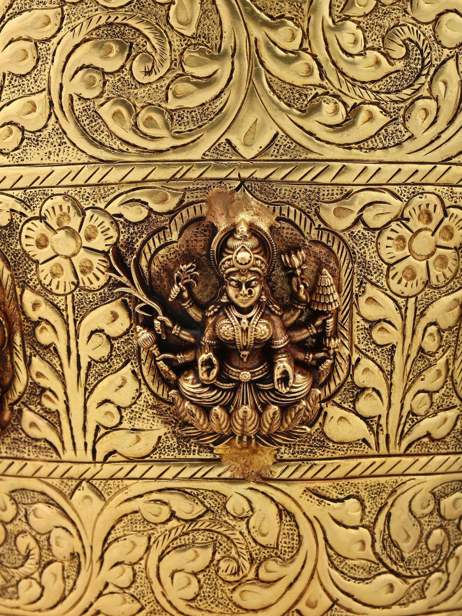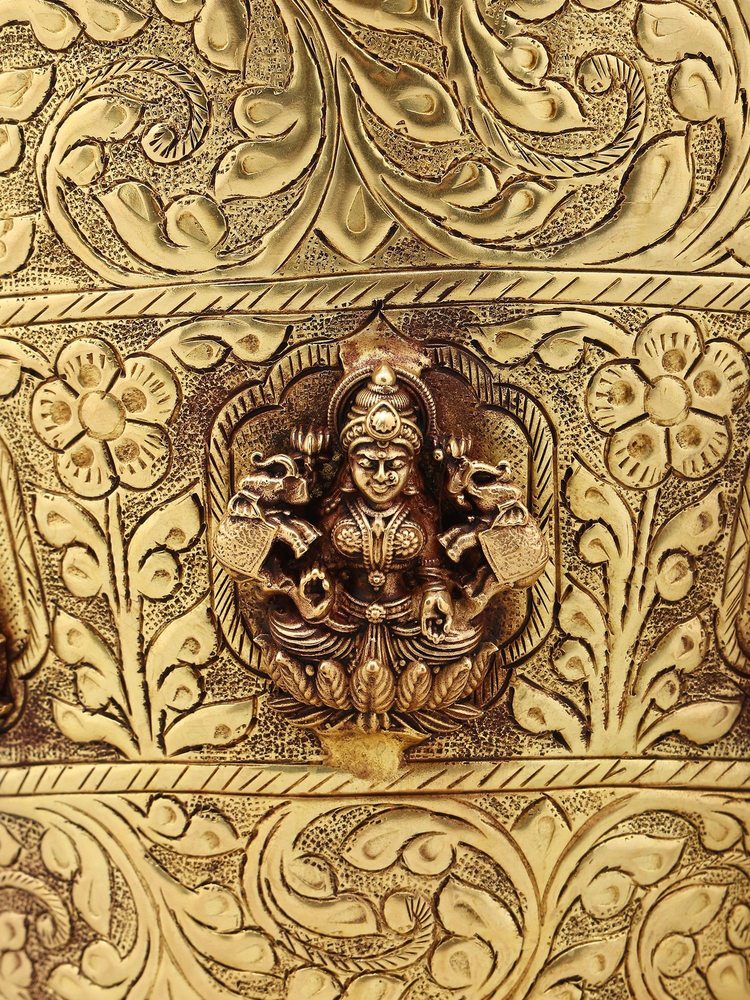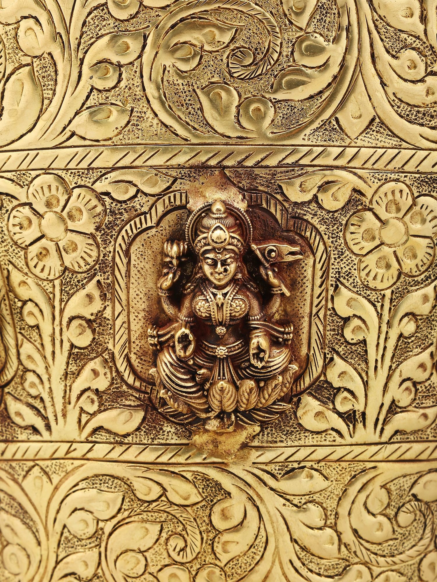 Intricate floral and decorative carvings adorn the exterior of the bucket.