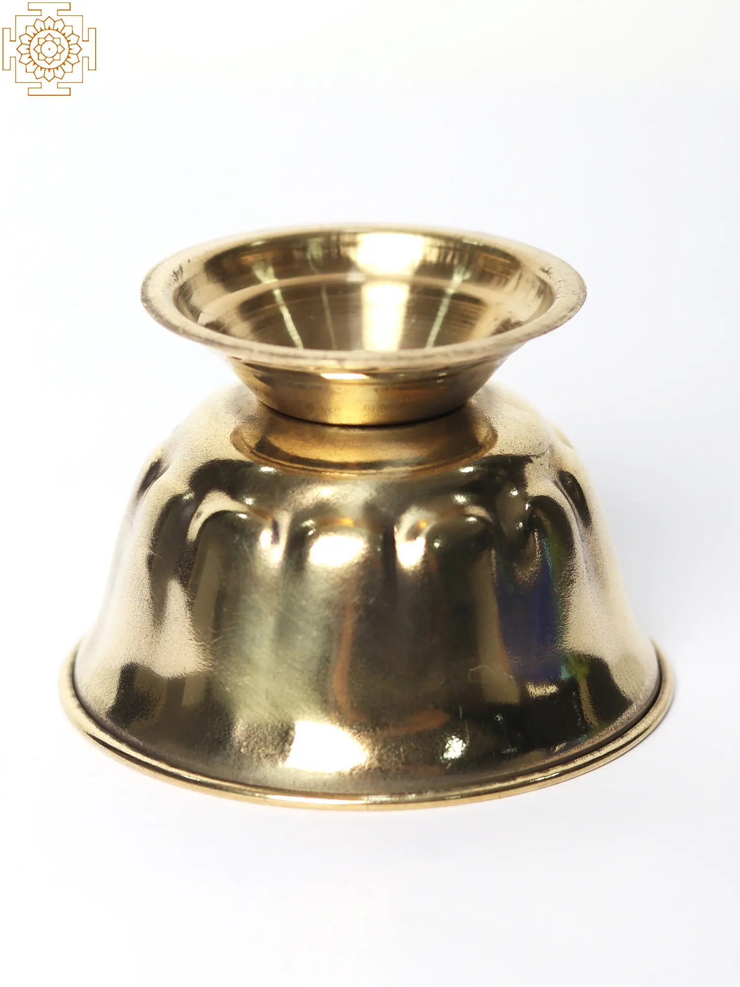 Various Hindu communities practise the application of Tilak and Chandan. Many households have a Tilak-Chandan stand next to the Puja stand to keep small quantities of vermillion and sandalwood power to give to the deities and afterward apply to their foreheads. This bronze Chandan Pela is an auspicious ceremonial object imbued with the virtues of the brass metal. Because of the sturdy foundation, the containers are well-balanced. The lip of the container has been creatively cut to mimic the petals of a blooming lotus flower. It is a simple yet efficient method for preserving the commodities needed for daily puja ceremonies in good condition.