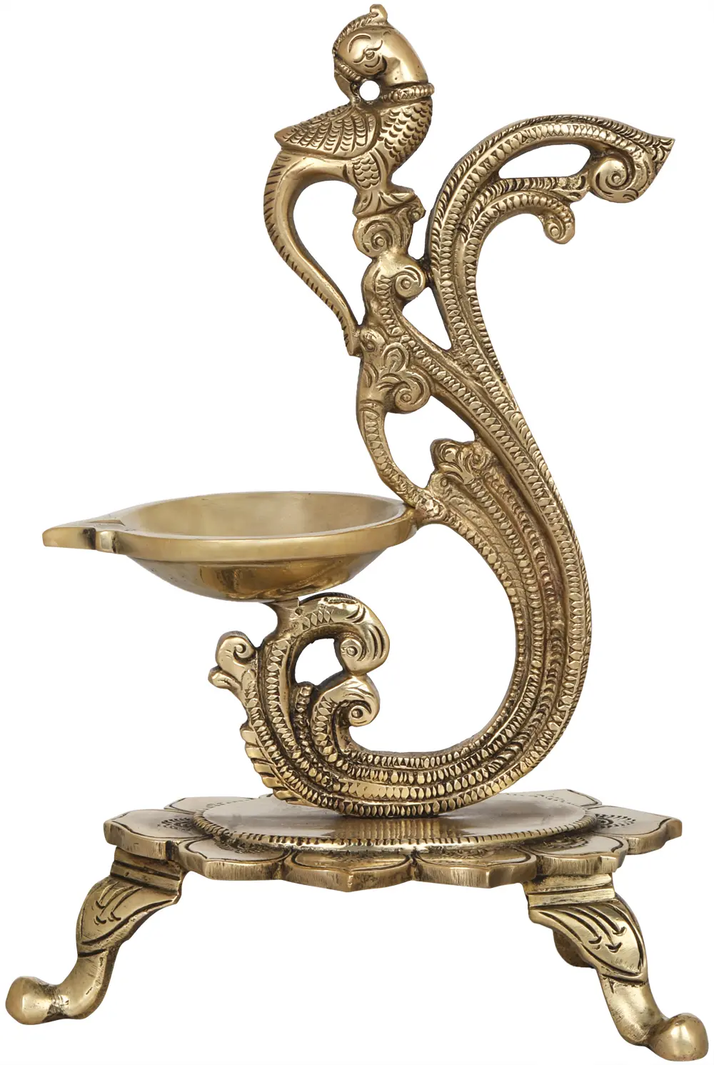 This Diya with a Parrot Handle on Stand is a beautiful representation of art and spirituality. The parrot, a symbol of love and devotion in Hinduism, adds a touch of elegance to this brass diya. Lighting the diya symbolises the dispelling of darkness and the awakening of inner light. The parrot handle, with its unique design, is a reminder of the harmony and devotion that underlie every ritual. Light this diya, and let the parrot's symbolism of love and devotion infuse your space with a sense of spiritual connection and warmth.