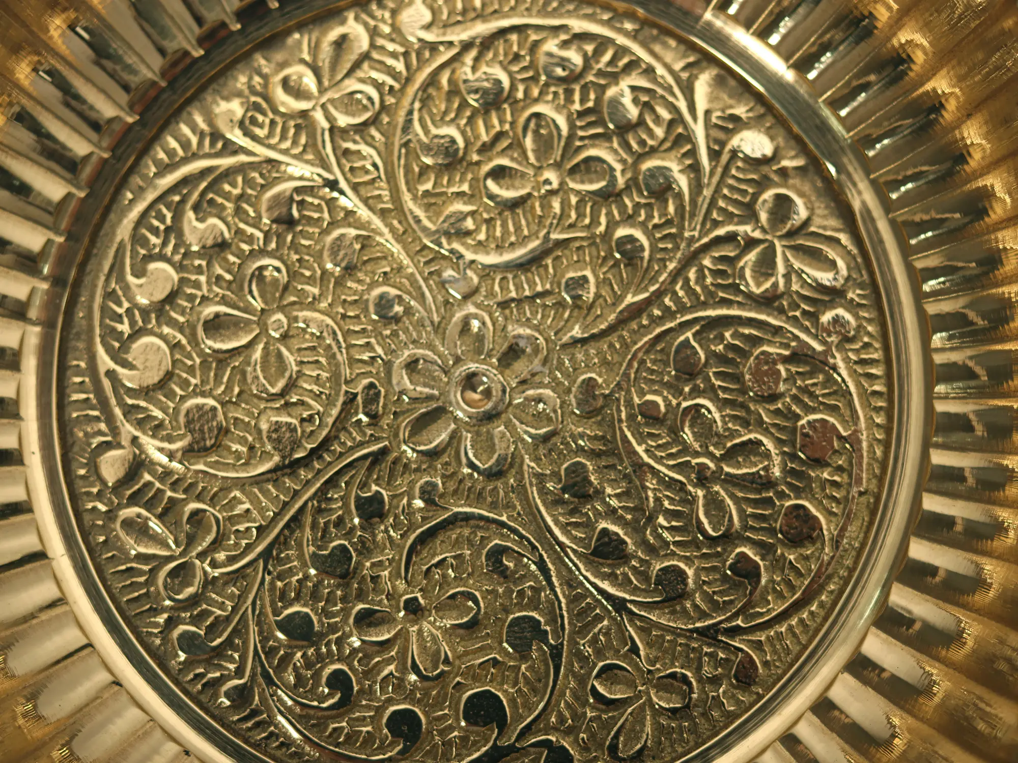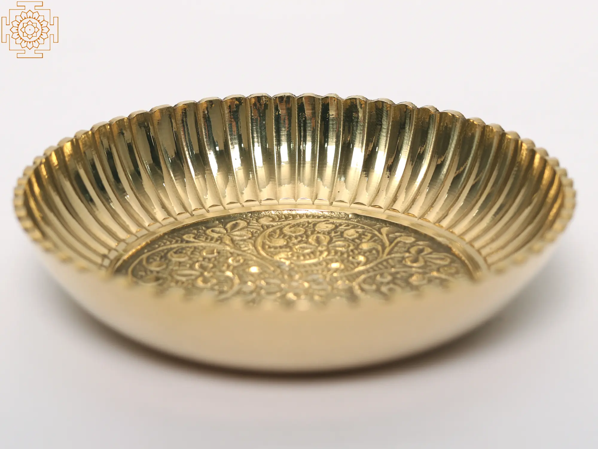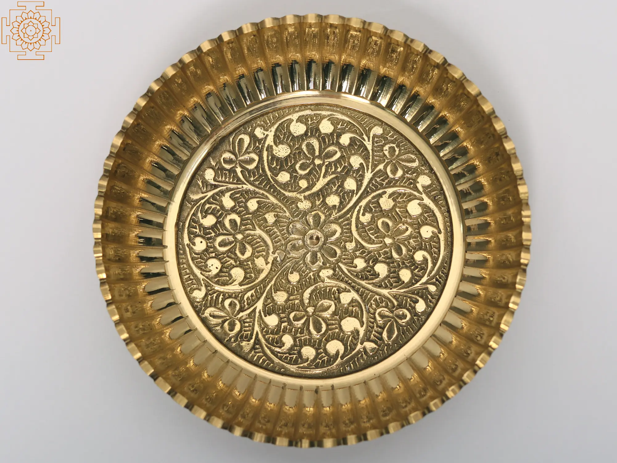 These Brass Floral Design Plates, available in various sizes, celebrate the intricacies of nature. Each plate is a canvas where craftsmanship meets artistry. The delicate floral motifs pay homage to the divine forces of growth and renewal. Flowers, often associated with deities, signify purity and devotion. These plates, with their ornate patterns, are not just decor but vessels of symbolism, urging us to embrace the fleeting beauty of existence, where every petal and leaf tells a story of nature's grace and the eternal cycle of life.