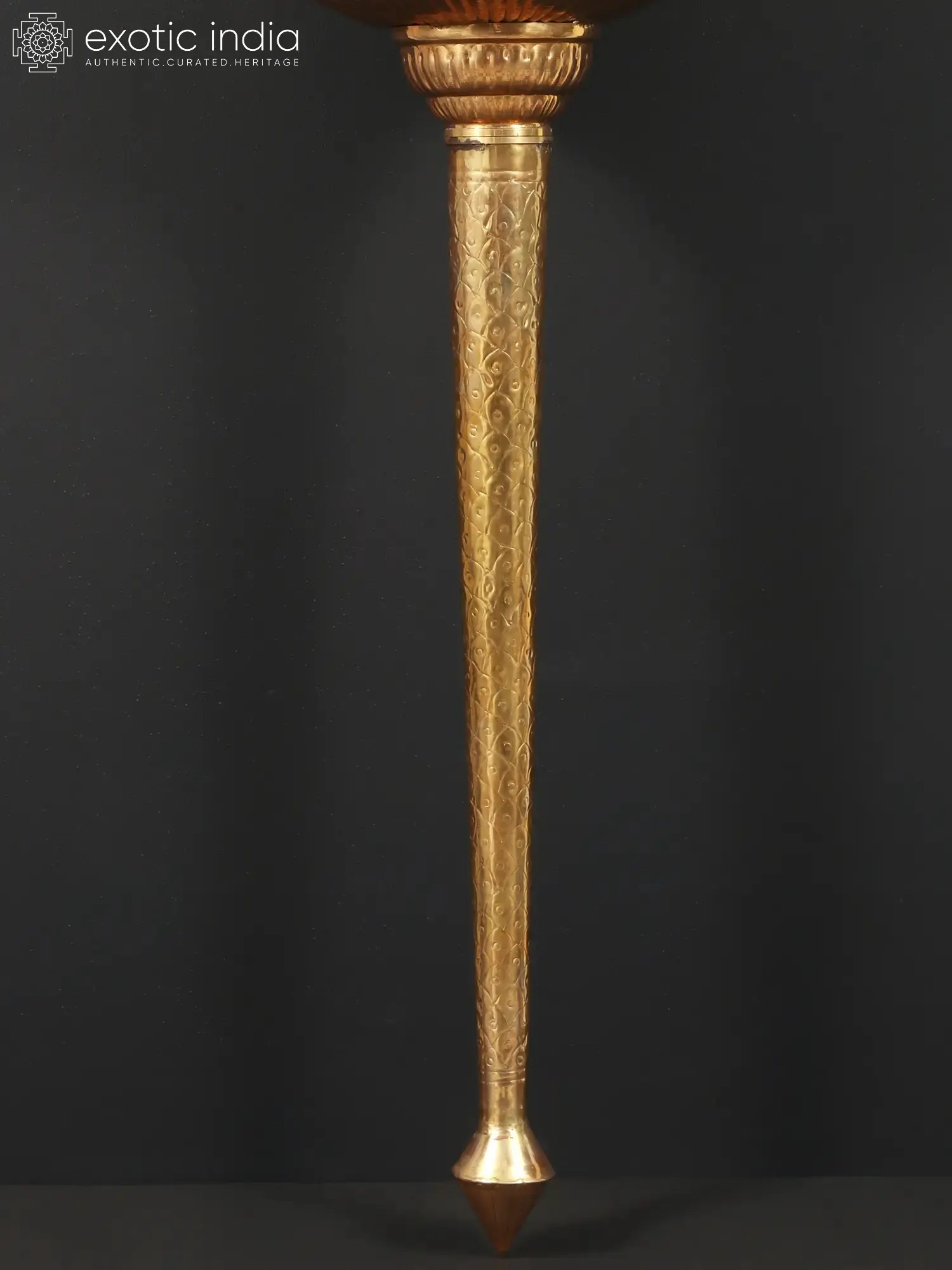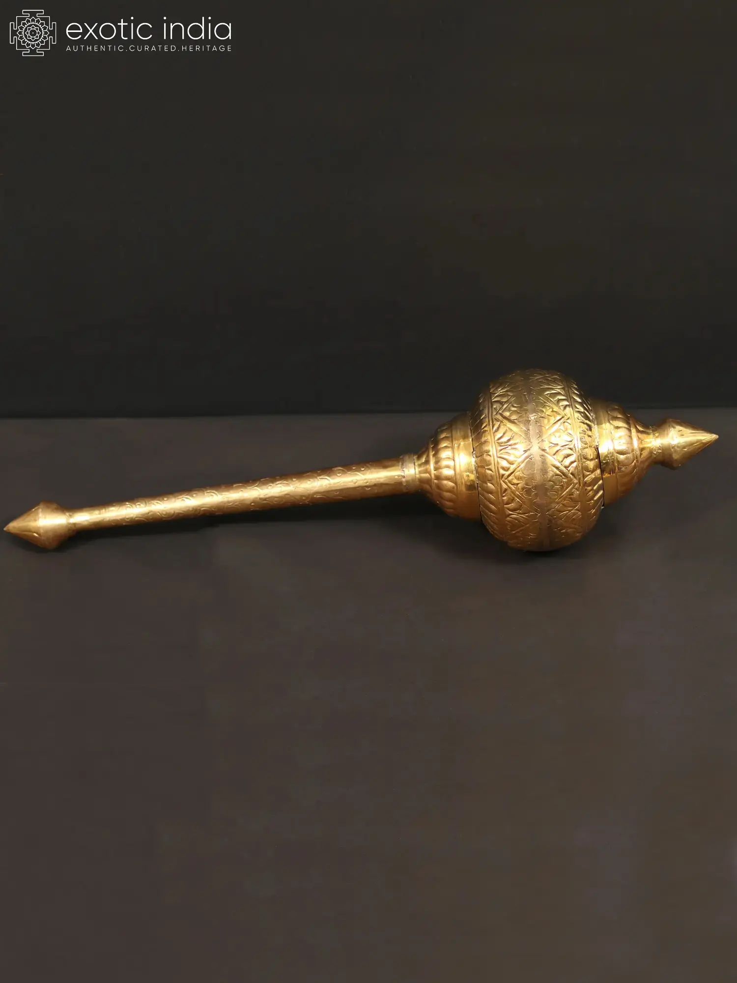 Embrace the potent symbolism of Lord Hanuman with this exquisite brass Gada, a magnificent representation of his unwavering strength, courage, and devotion. The Gada, or mace, is the signature weapon of Hanuman, the beloved deity revered for his immense power, loyalty, and role as the ultimate devotee of Lord Rama. This meticulously crafted Gada serves not just as an artifact but as a tangible connection to the profound narratives of the Ramayana, where Hanuman's might was instrumental in overcoming formidable challenges. The Gada itself is steeped in mythological significance. In Hindu tradition, it is a weapon of immense power, capable of crushing evil and protecting the righteous. Lord Hanuman is often depicted wielding his Gada with effortless grace, a testament to his divine strength and control. Tales abound of his exploits, from bridging the ocean to Lanka in a single leap to carrying the entire Sanjeevani mountain to save Lakshmana. The Gada is the emblem of this incredible fortitude, a symbol that resonates with the very essence of overcoming obstacles.