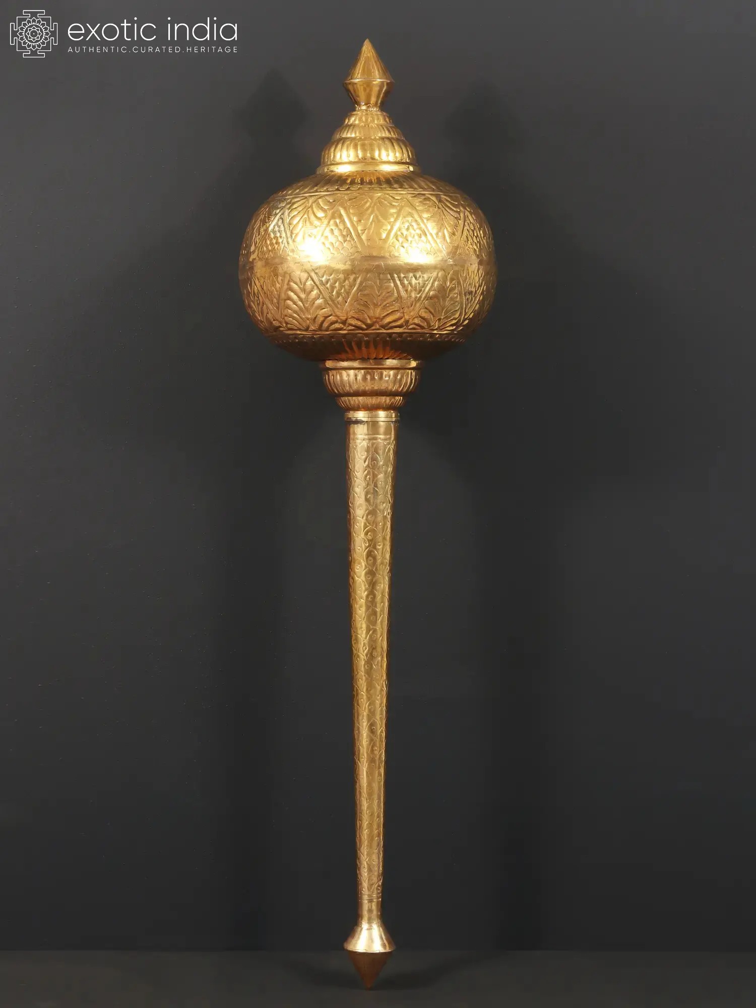 The most potent symbol of Mahabali Hanuman's unbounded powers, a Gada or mace for his Bhakta represents the eternal presence of the mighty Lord. The annihilator of Daanva, Rakshasas, and the enemies of Sri Rama, Bhagwan Hanuman's Gada signifies the victory of Dharma over Adharma and the prevalence of Rama-Rajya. This brass Gada sculpted beautifully, is a powerful insignia for the ardent followers of Prabhu, who can place this in their Puja ghar and experience the protective aura of Sri Hanuman in their lives.
