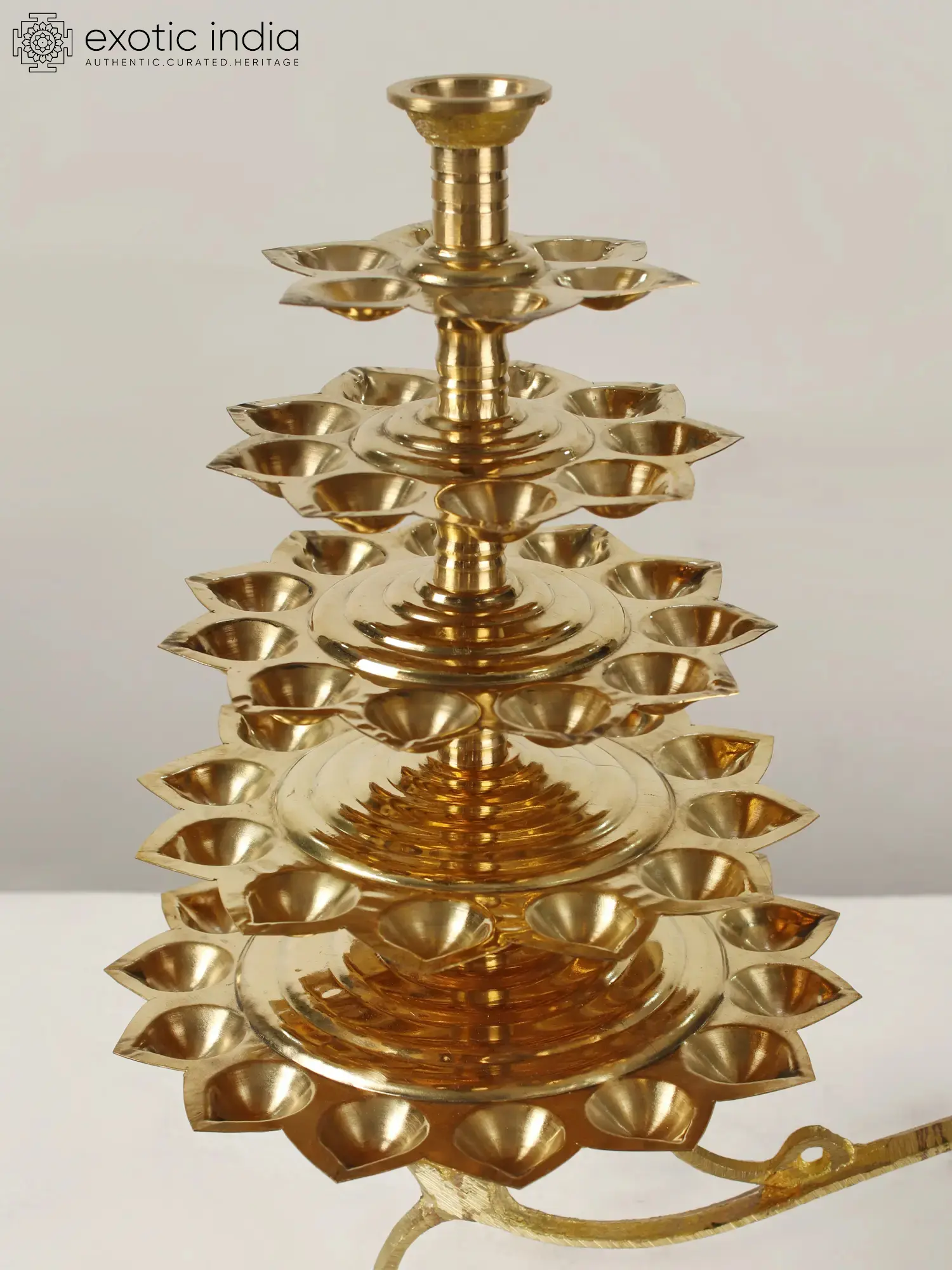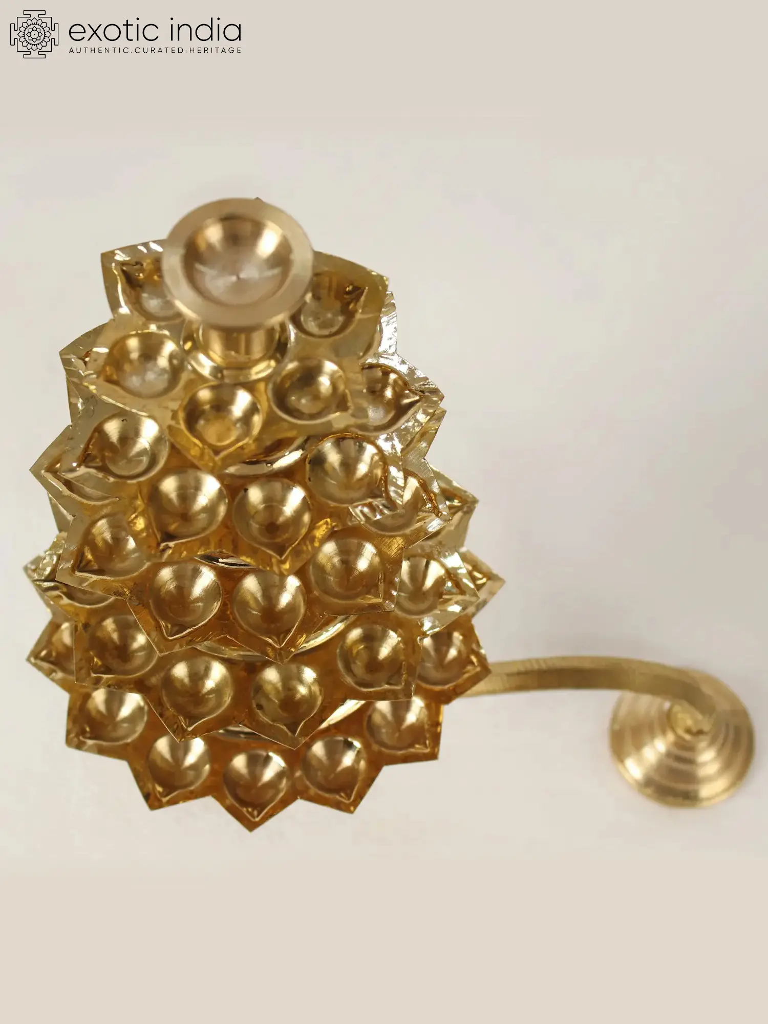 Offering reverence to the fire god and also offering fire as reverence to other deities is a tradition in India. This hand-held brass multi-wick Aarti lamp is painstakingly built and manufactured to deliver a huge quantity of warmth to the deities via the various wicks. The Diya is made of brass, a valuable metal that lends gravitas to the event. This Arti light is frequently seen in use at Haridwar's spectacular Ganga Arti. Because of the combination of a brass container and a strong grasp, the devotee may offer devotion pleasantly. Including this item in daily worship and rituals will guarantee that the respect process proceeds well.