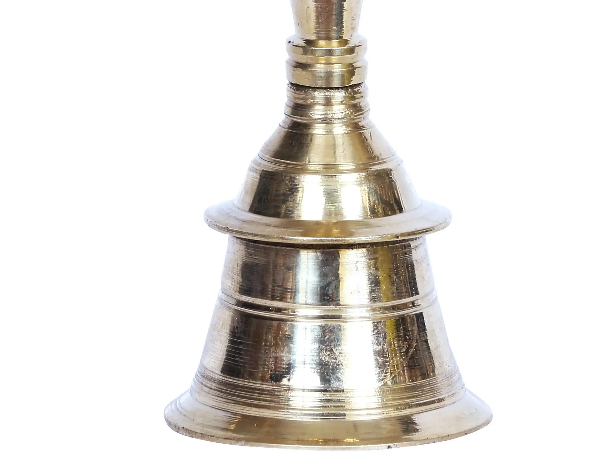 Hand-held bells are used for producing sacred sounds or vibrations during the rituals of aarti or home. This brass bell is blessed with the image of Lord Nandikeshwarag on the top of the handle. It signifies the blessings of Lord Nandi who is also considered to be the first Siddhar or teacher of Yoga science.