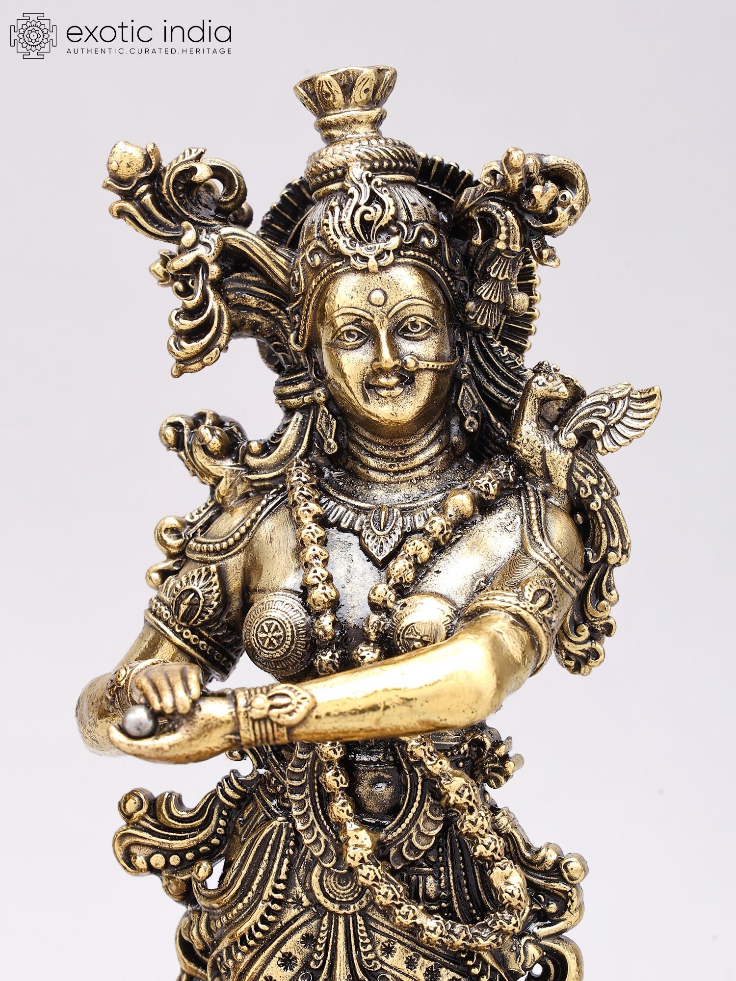 Intricately detailed brass sculpture showcasing traditional iconography.