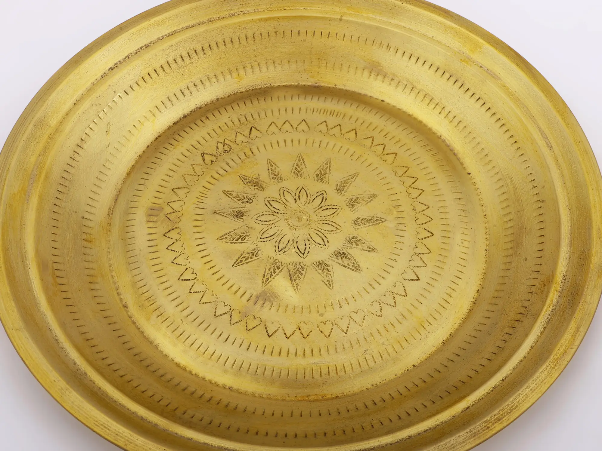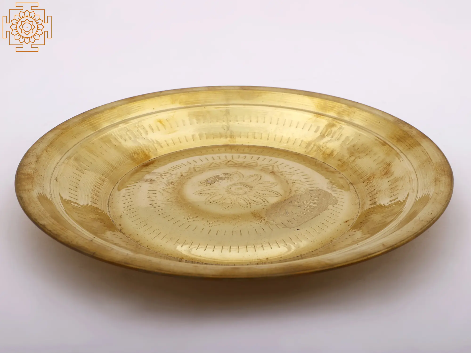 Embrace tradition and spirituality with our Brass Ritual Thali, also known as Parat. This handcrafted piece serves as a sacred platform for performing rituals and ceremonies. Its significance lies in its ability to hold various offerings, symbolizing unity and completeness in the worship process. The use of brass adds a touch of authenticity and reverence to your rituals, making this thali a meaningful and essential component of your spiritual practices.