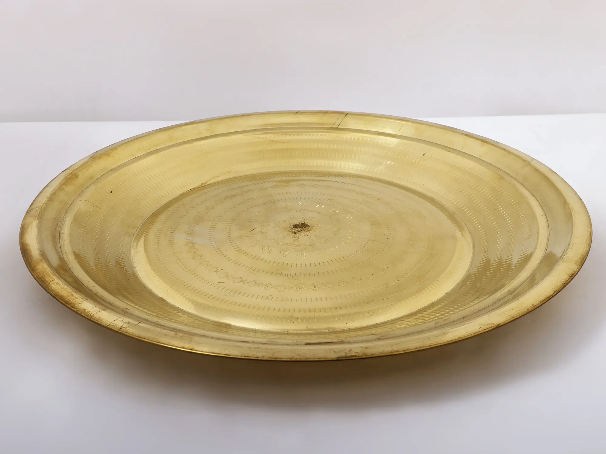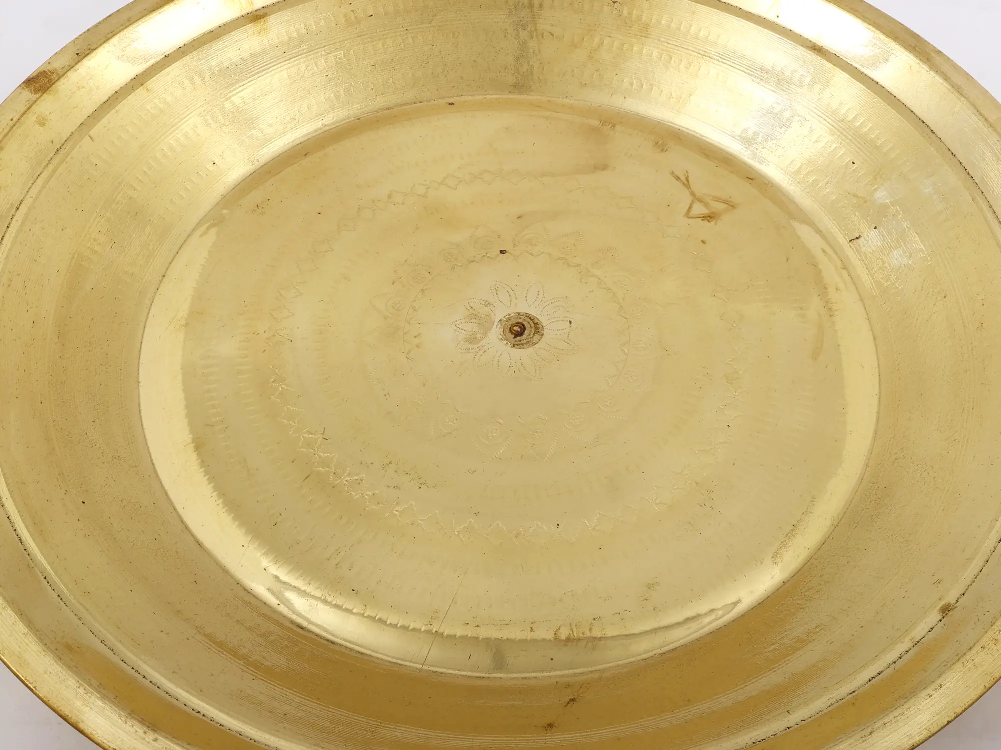 Embrace tradition and spirituality with this Brass Ritual Thali, also known as Parat. Handcrafted with care, this thali serves as a sacred vessel for holding offerings during your puja ceremonies. Its rounded design symbolizes unity and completeness, reflecting the holistic nature of spirituality. Place your sacred items on this thali and create a harmonious atmosphere for your rituals. Let each element on the thali be a reminder of the interconnectedness of all aspects of life.