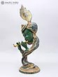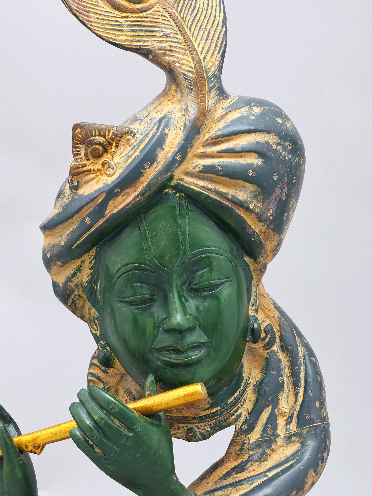 The statue depicts Krishna in a serene pose, playing his iconic flute.