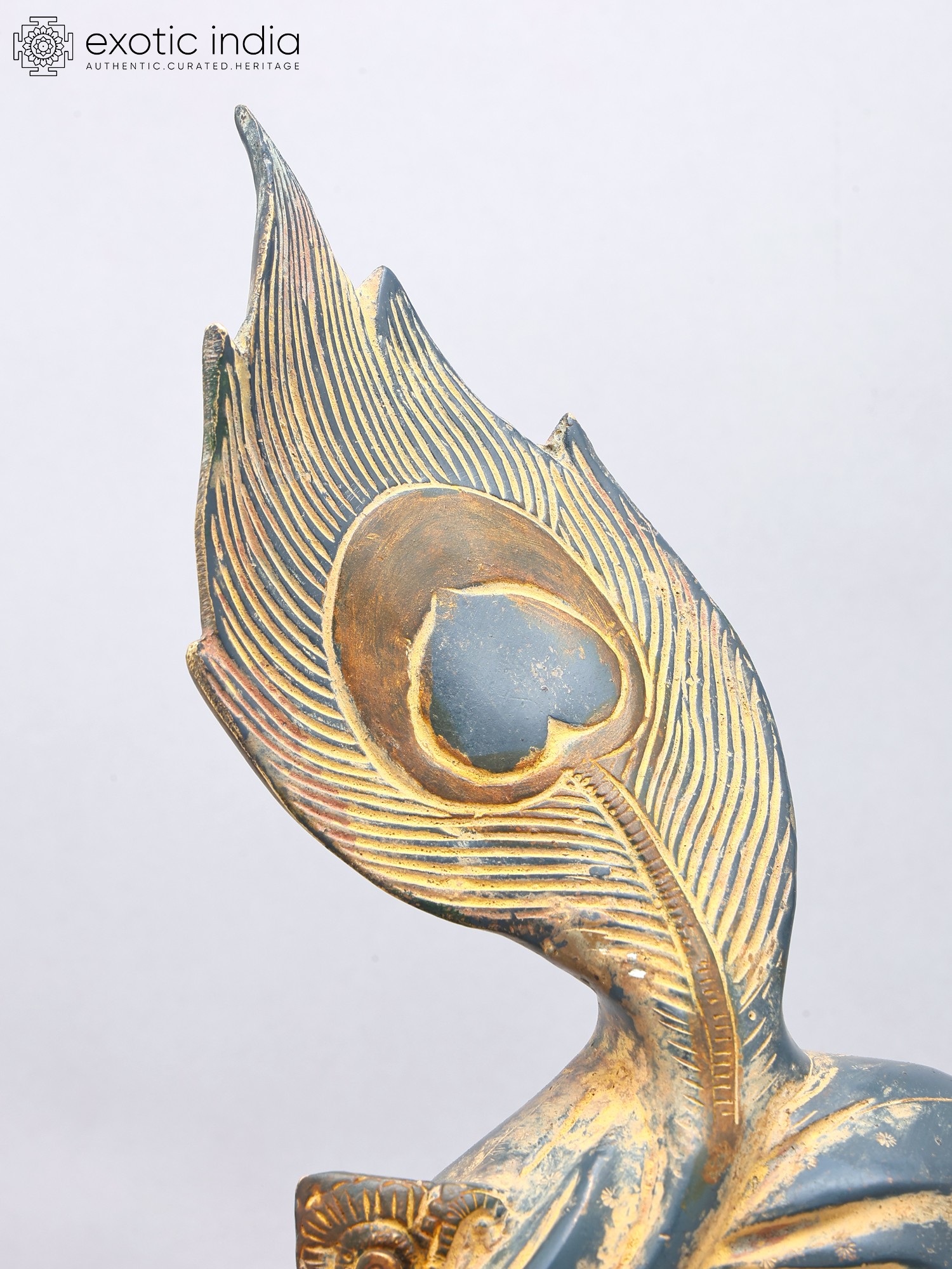 Adorned with a peacock feather motif, symbolizing divinity and beauty.