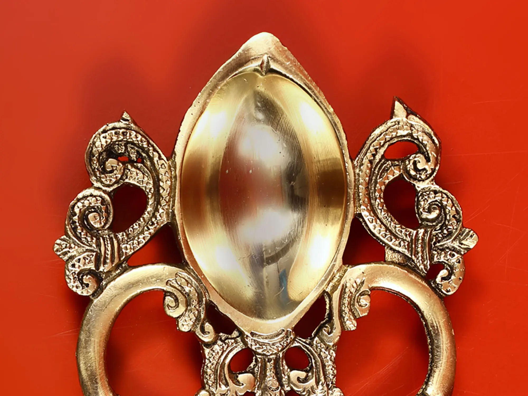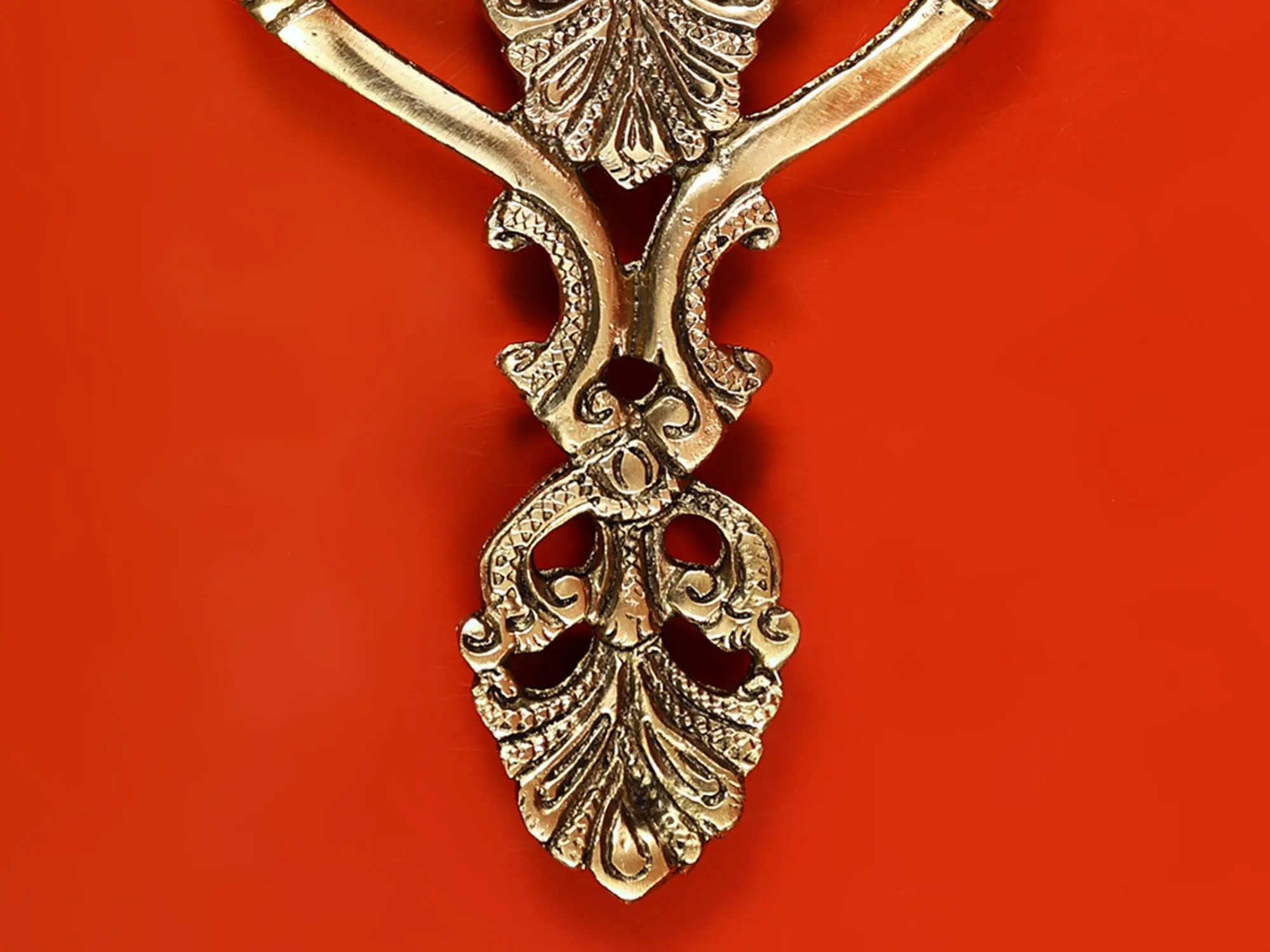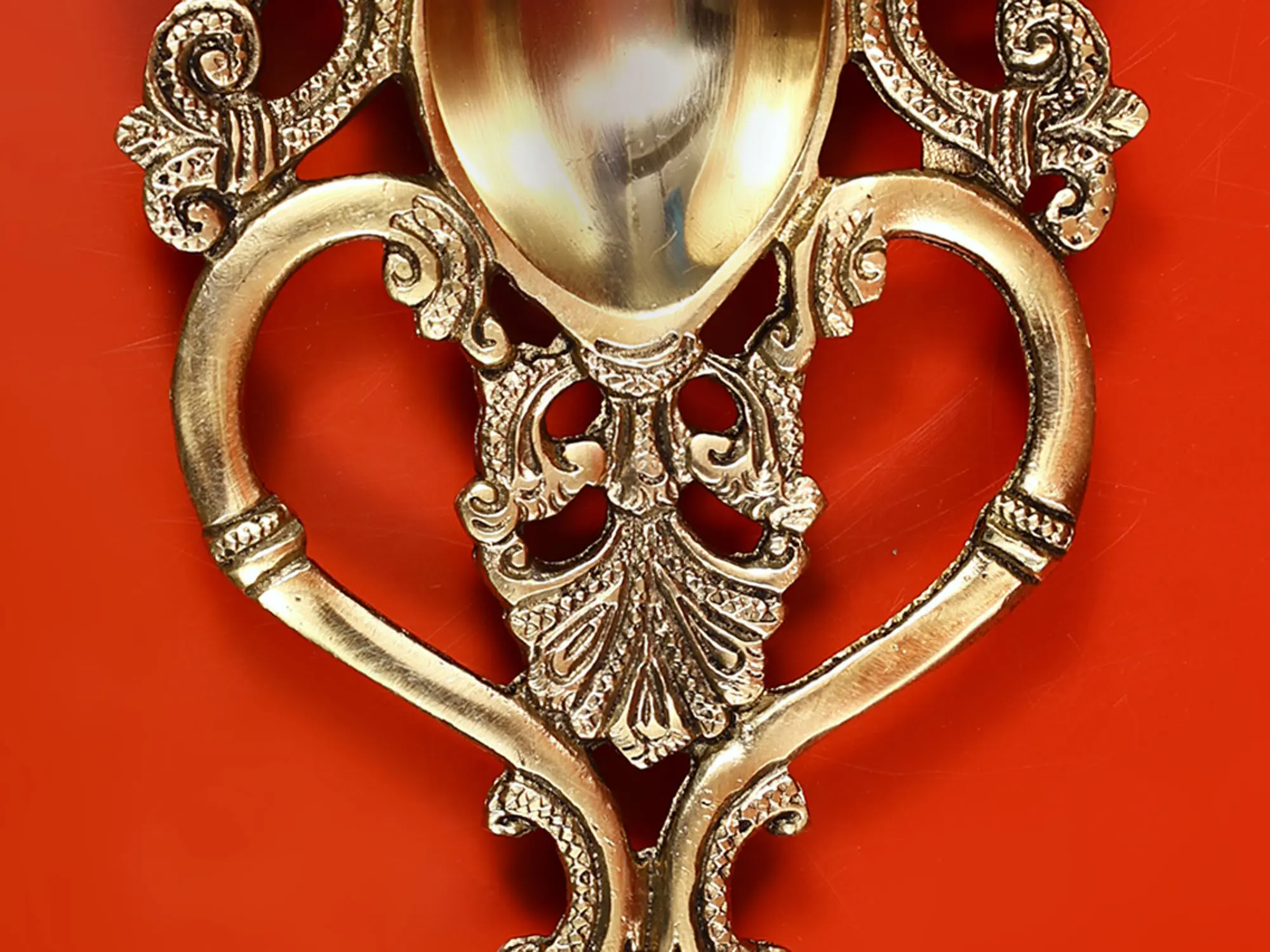 Illuminate your sacred space with the warm and inviting glow of this Brass Spoon Diya. The intricate design on the diya adds an artistic touch to your puja setup. Use the spoon-shaped handle to offer ghee or oil to the divine flame, symbolizing your devotion. The play of light and shadow on the brass surface creates a captivating ambiance during your prayers, invoking a sense of serenity and spirituality.