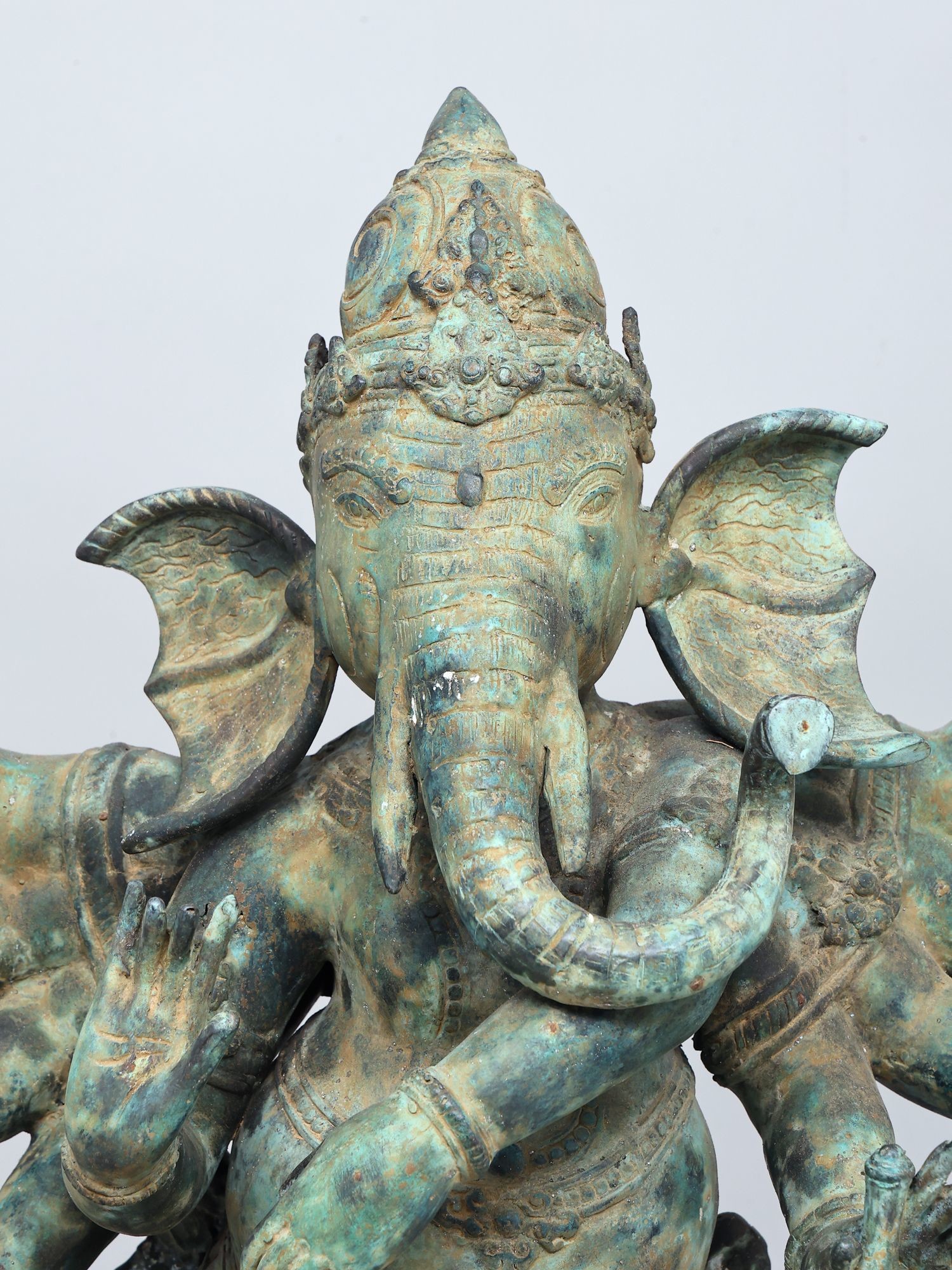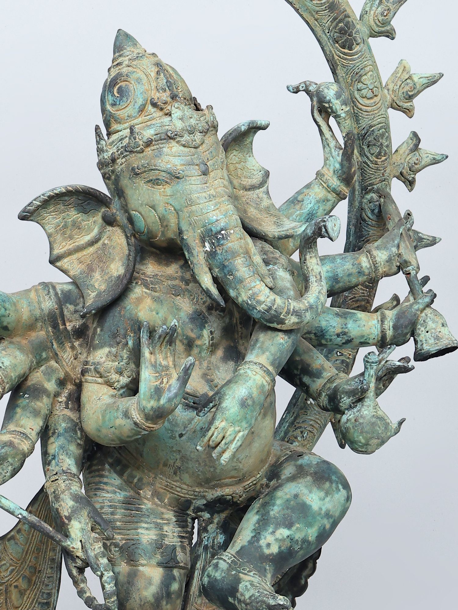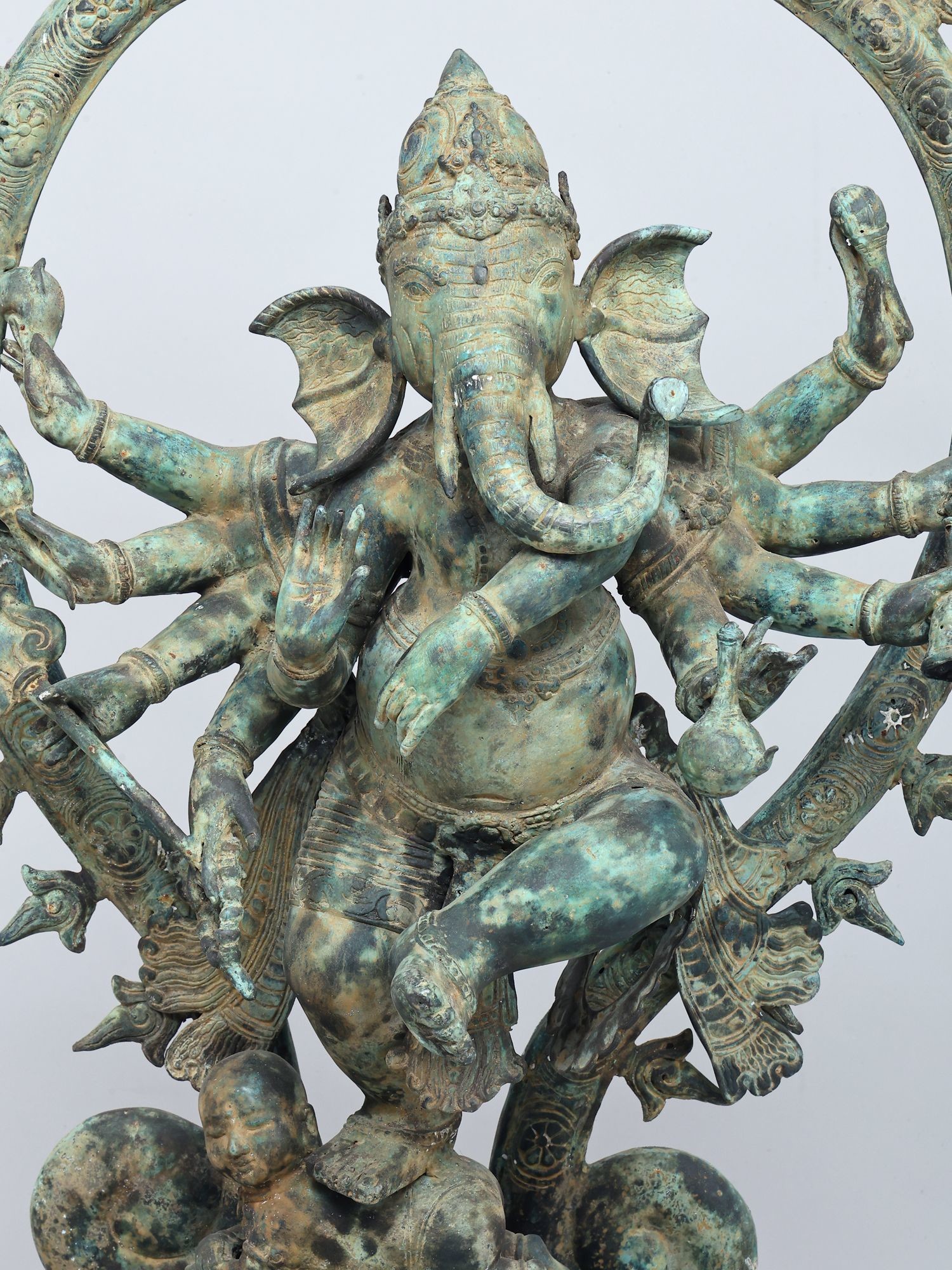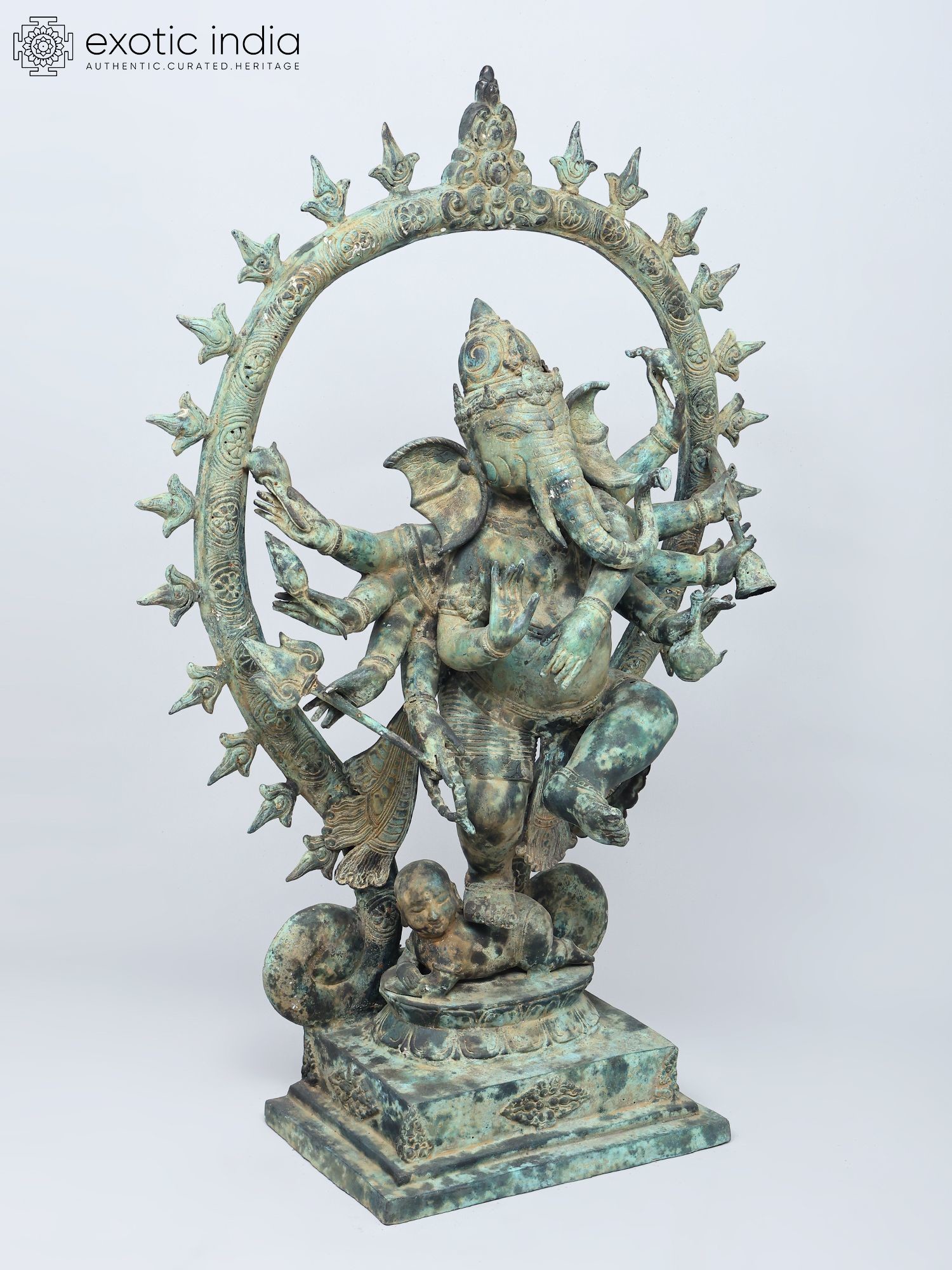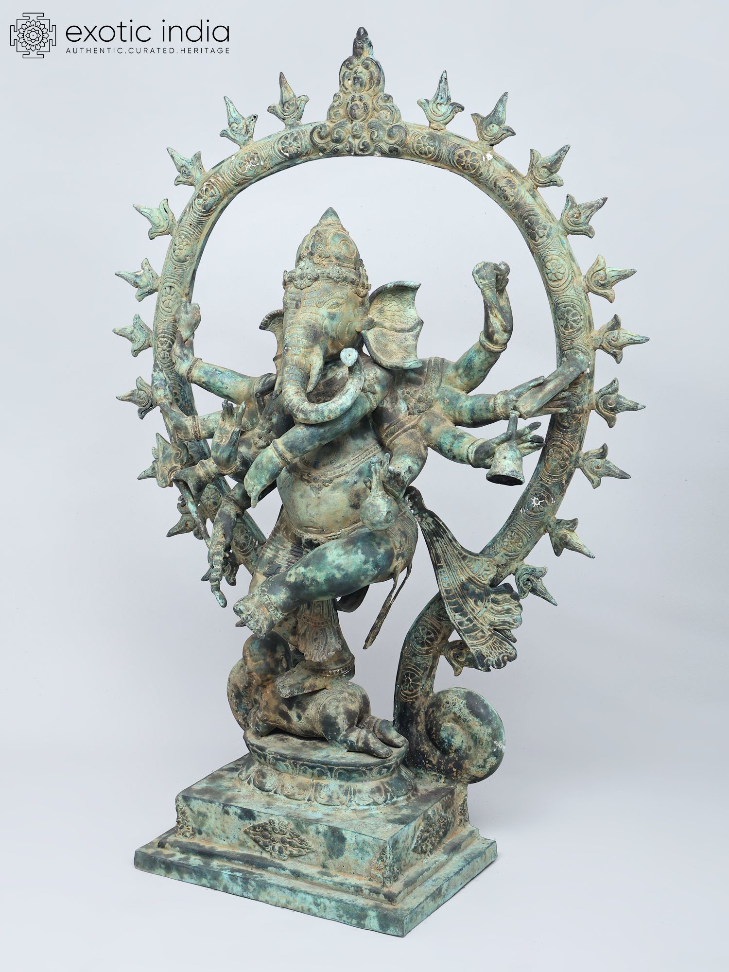 Depicts Lord Ganapati as Nritya Ganesha, the divine cosmic dancer.