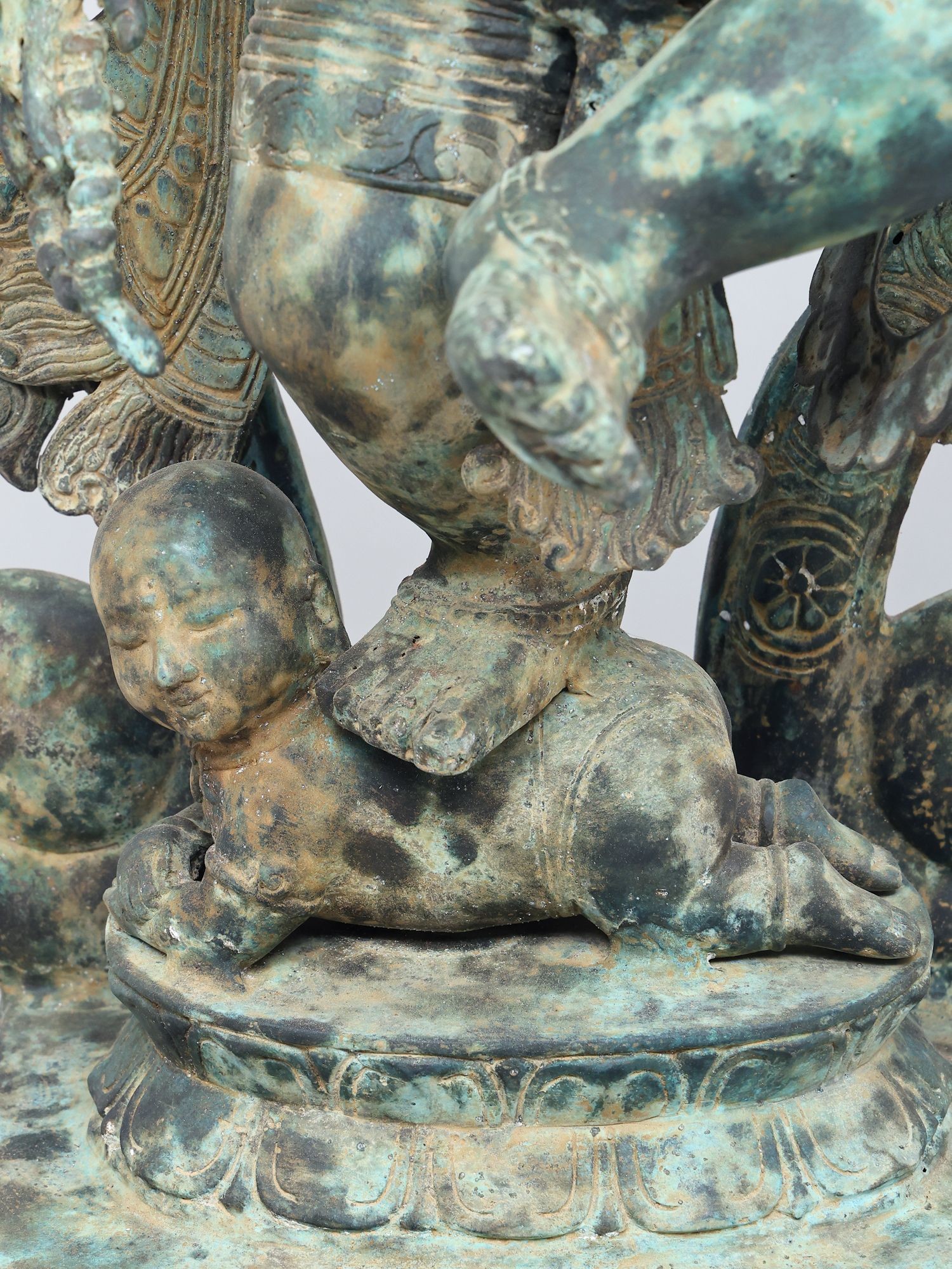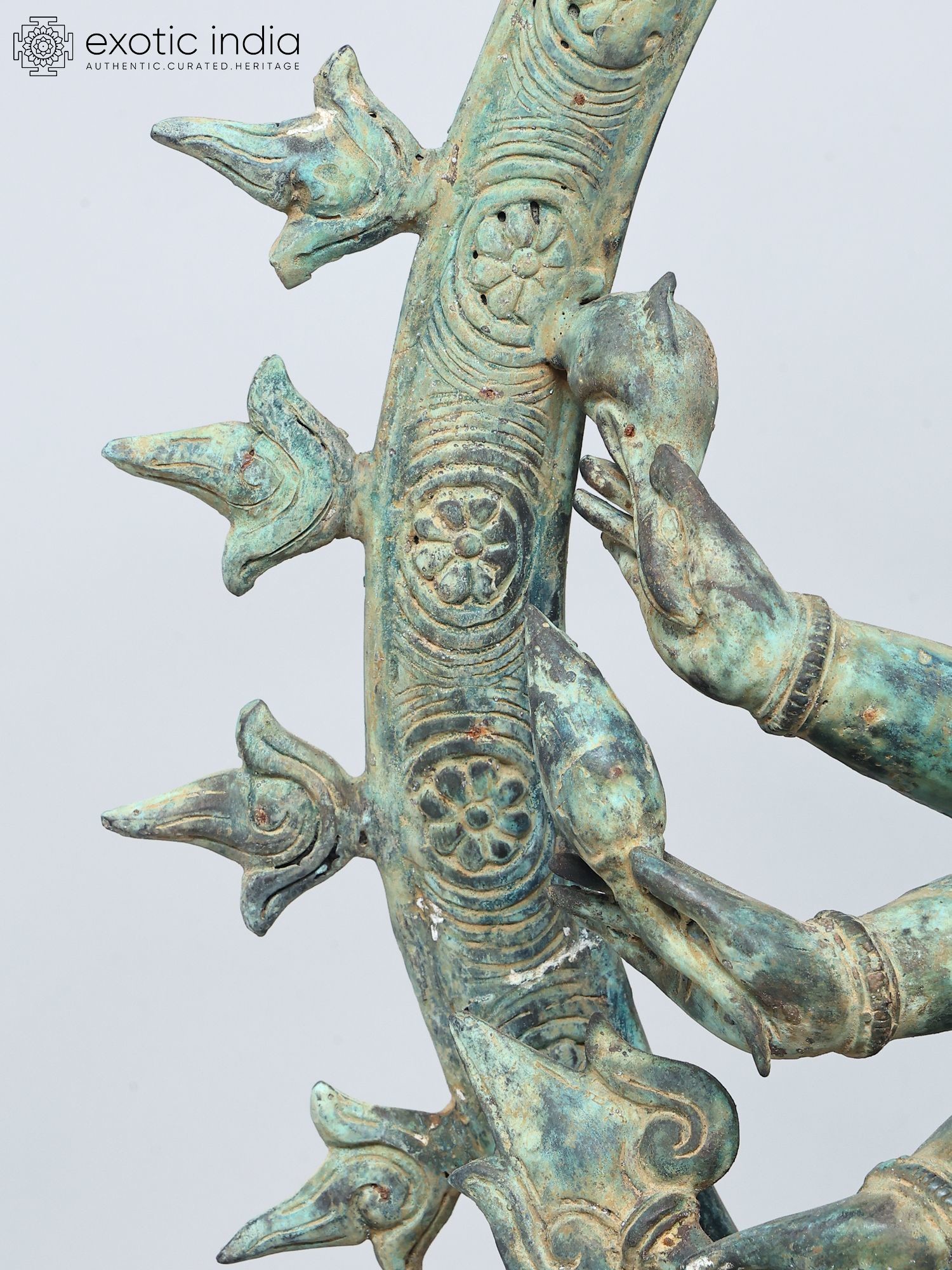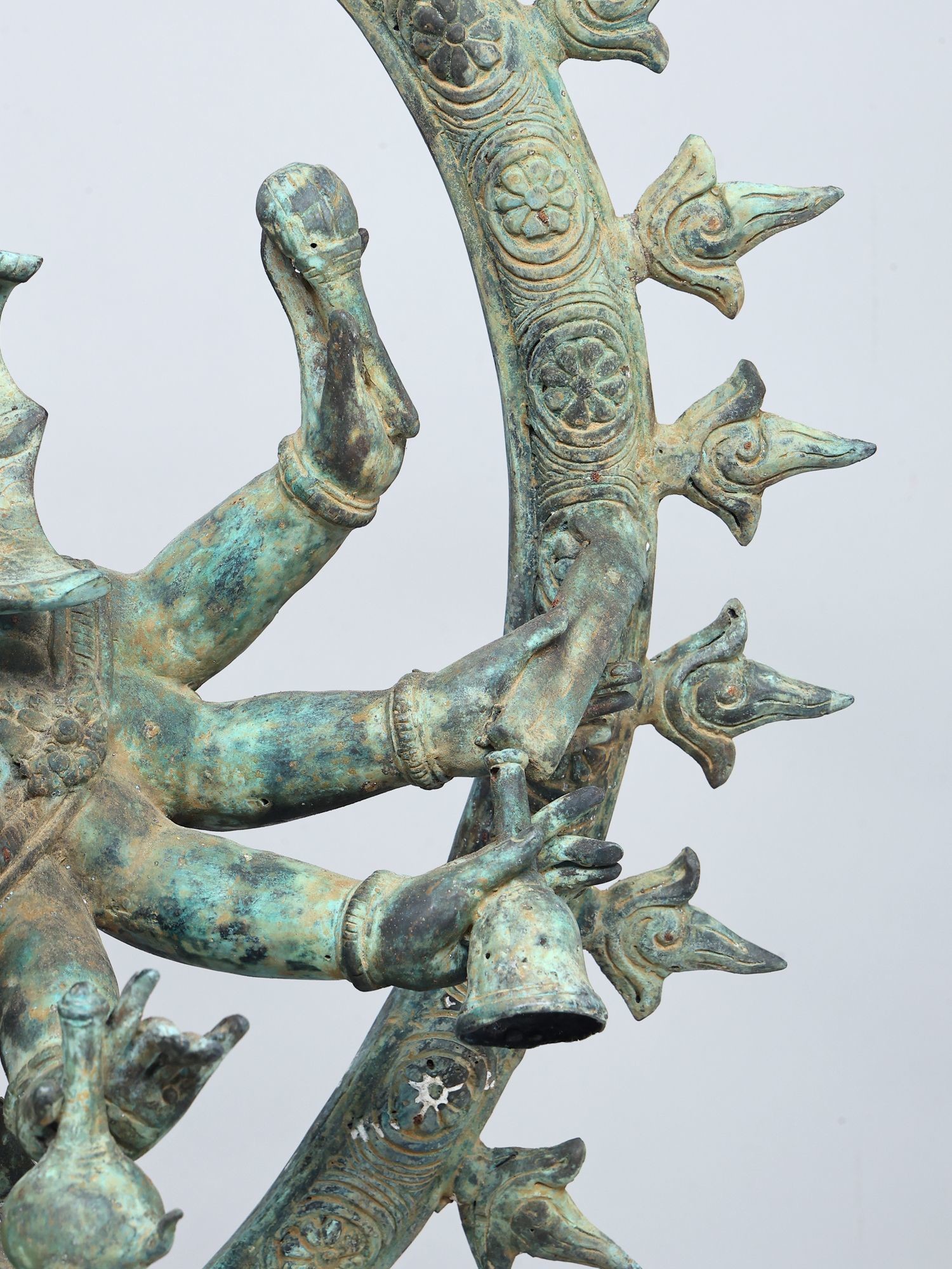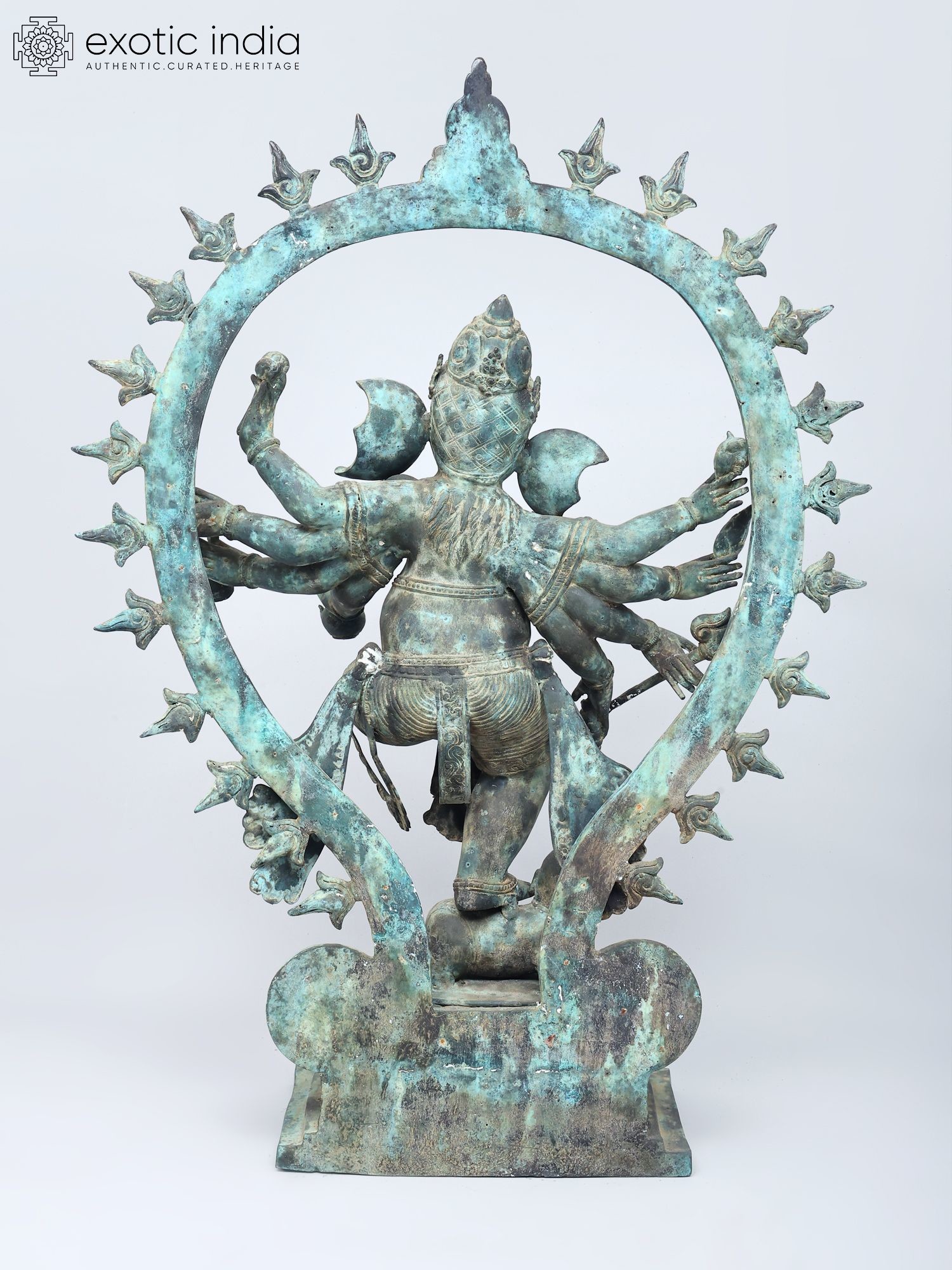 Intricately detailed brass sculpture showcasing multiple arms and dynamic pose.