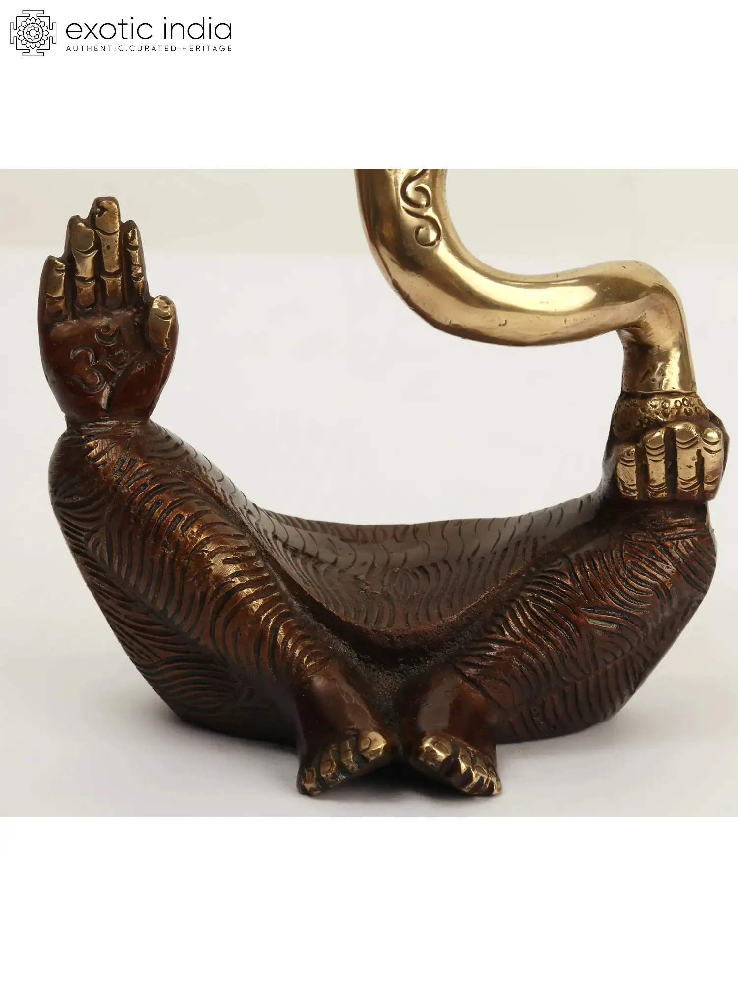 This brass statue is a testament to the skill of Indian artisans. The contrasting finishes between the polished brass of Ganesha's head and trunk, and the deeper, patinated bronze tone of the base, create a visually striking effect. The detailed carving on the base, depicting a sense of woven fabric or perhaps the texture of ancient stone, adds depth and tactile appeal to the piece. The smooth, cool feel of the brass against your fingertips as you place it in your cherished space will further enhance its devotional and aesthetic impact. It is a piece that not only adorns your surroundings but also enriches your life with its spiritual aura and artistic brilliance.