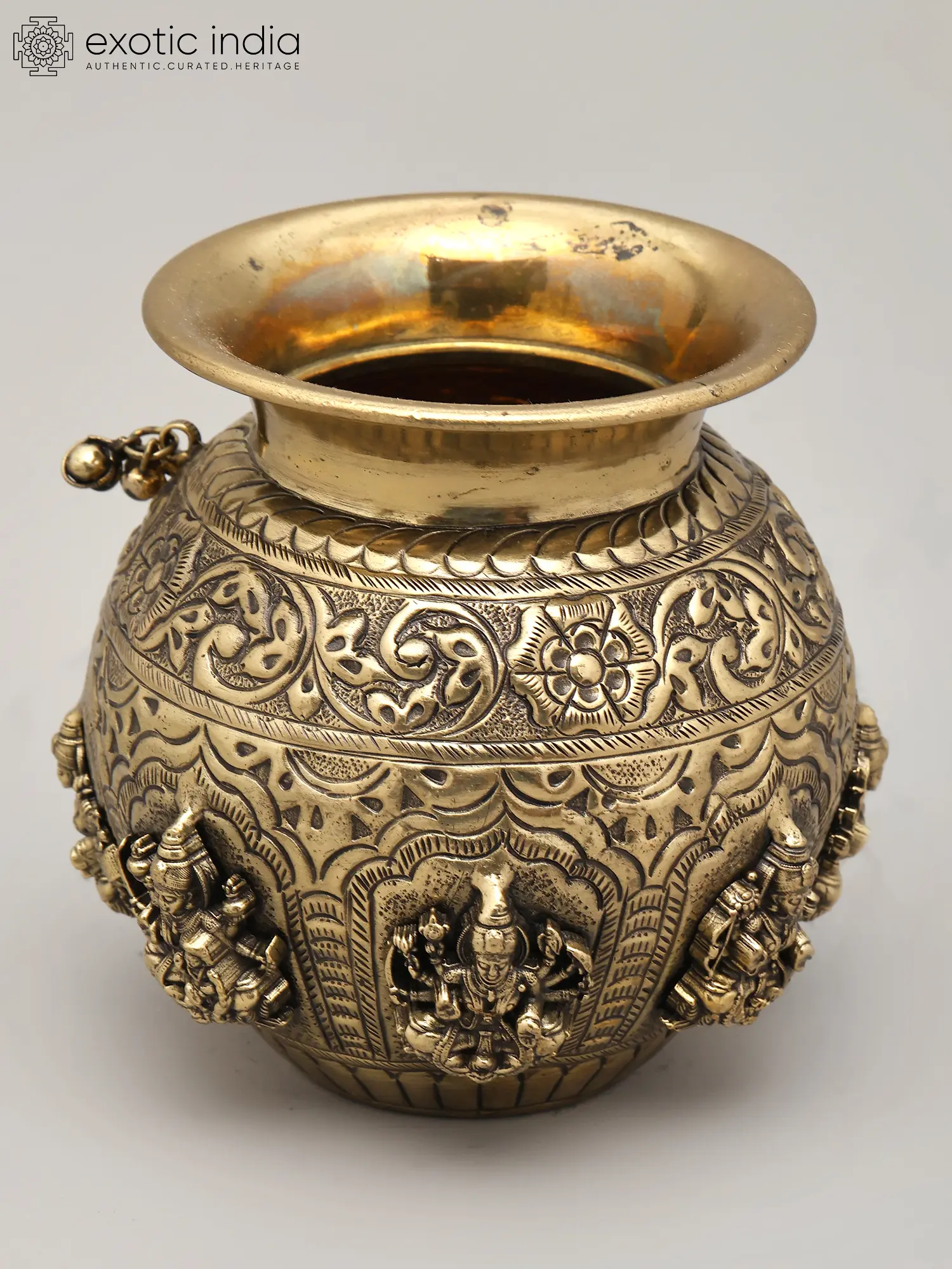5" Brass Superfine Ashtalakashmi Ritual Kalash with Inlay Work