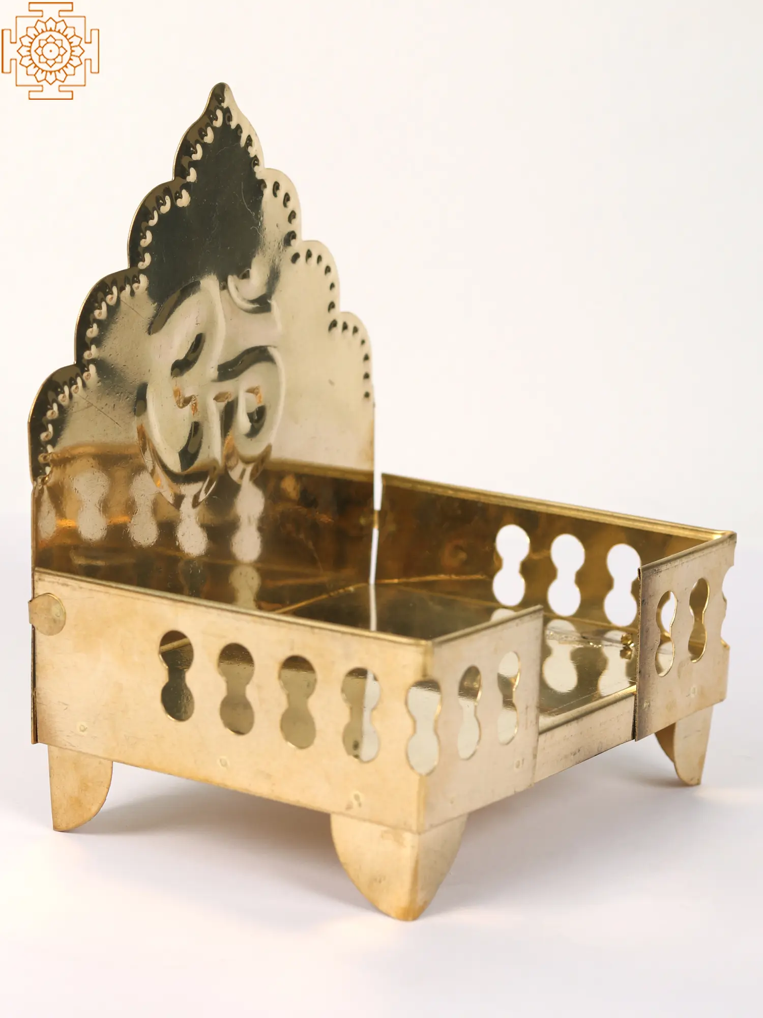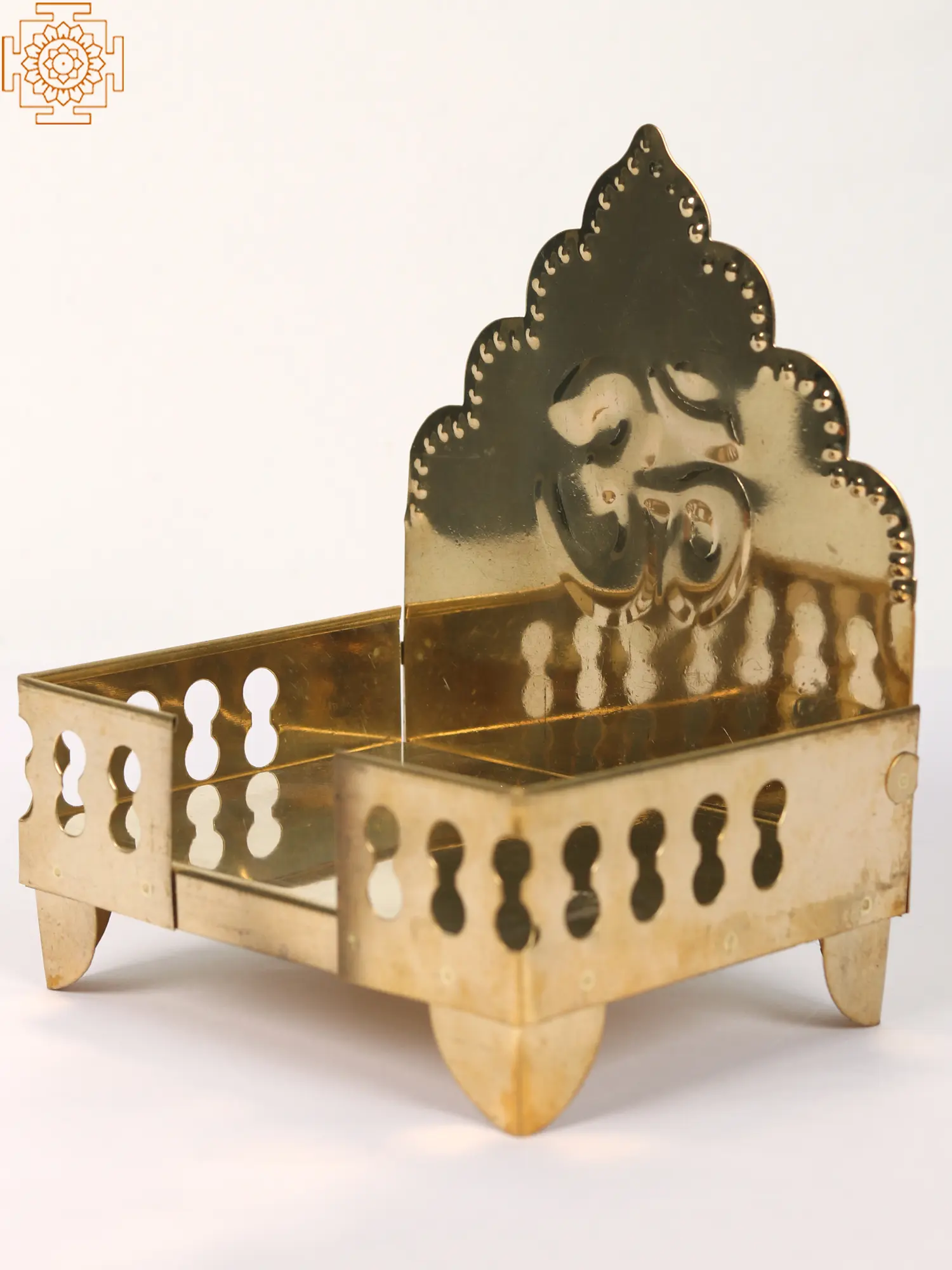 The Om mantra symbolizes the Trinity, which embodies creation, sustenance, and dissolution. It is one of the holiest symbols used to boost the spiritual potency of ritual artifacts. This brass throne with the Om sign in the center is an example of an object that rises as a seating arrangement for a god just by carrying the Om symbol. This throne is made of solid brass and is an excellent complement to any personal worship area.