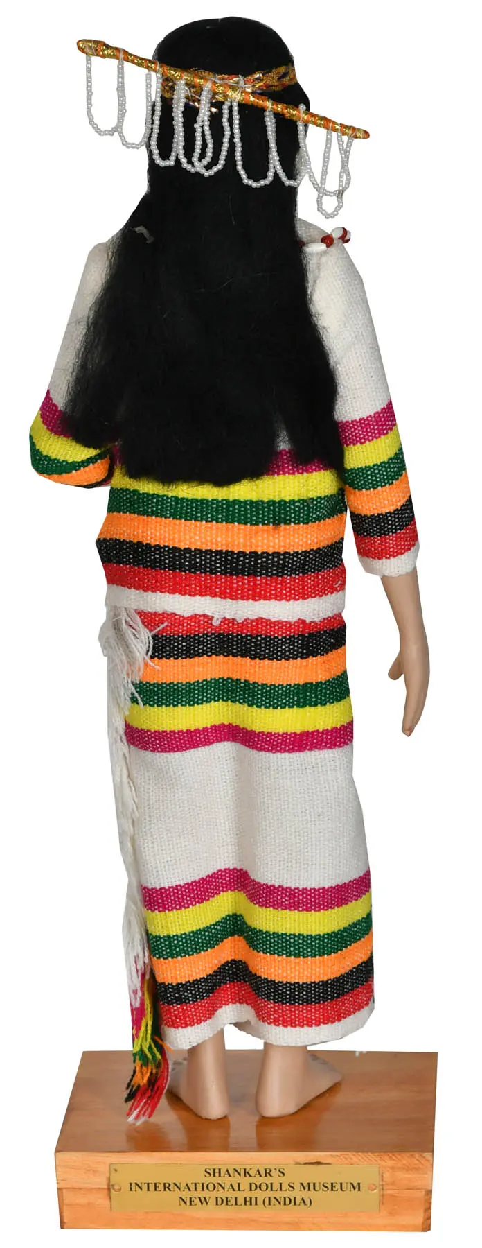 Immerse yourself in the vibrant culture of Mizoram with this exquisite depiction of a Mizo bride. This finely crafted doll, fashioned from papier-mâché, captures the essence of a traditional Mizo wedding, a celebration rich in customs and symbolic attire. The Mizo people, indigenous to the northeastern part of India, boast a heritage deeply intertwined with nature and a profound respect for ancestral traditions. Their weddings are not merely unions of individuals but also a reaffirmation of community bonds and a solemn promise to uphold the sanctity of family, echoing ancient tales of loyalty and devotion passed down through generations.