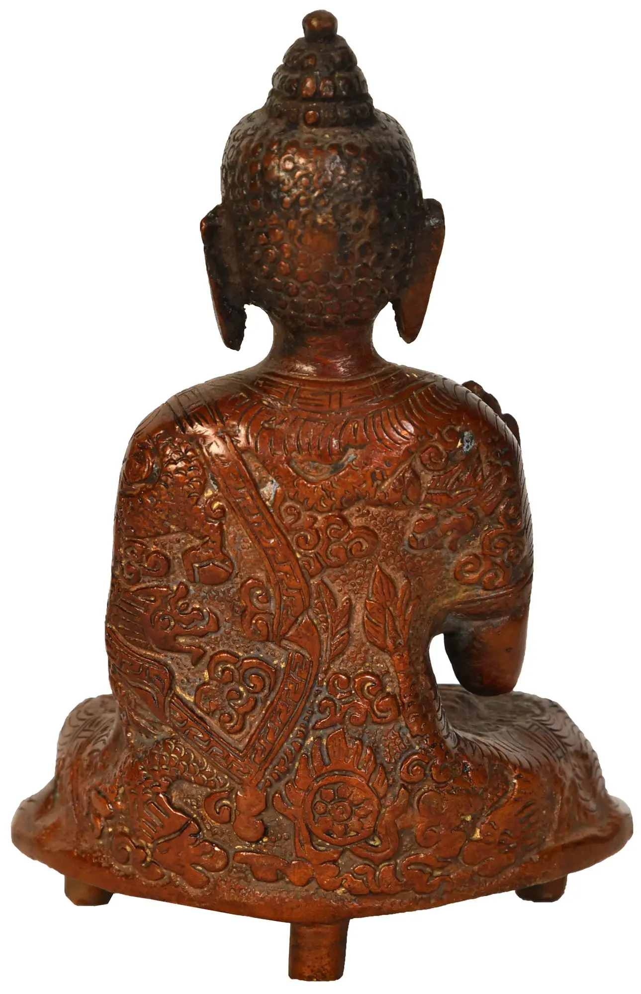 The magnificent statue of Lord Buddha captivates with its serene and enlightening presence. Seated gracefully, adorned in a beautiful Sangati, a loose-fitting robe, Lord Buddha embodies tranquility and renunciation. His right hand is positioned in the Abhaya Mudra, the gesture of fearlessness and protection, emanating a sense of calm and reassurance. In his left hand, he holds a bowl, symbolizing his acceptance of offerings and the nourishment of spiritual sustenance. His calm demeanor and closed eyes radiate a sense of inner peace, inviting devotees to find solace in his presence. With this stunning handcrafted masterpiece, a representation of serenity, protection, and spiritual enlightenment, embrace the holy energy and cultural legacy of India.