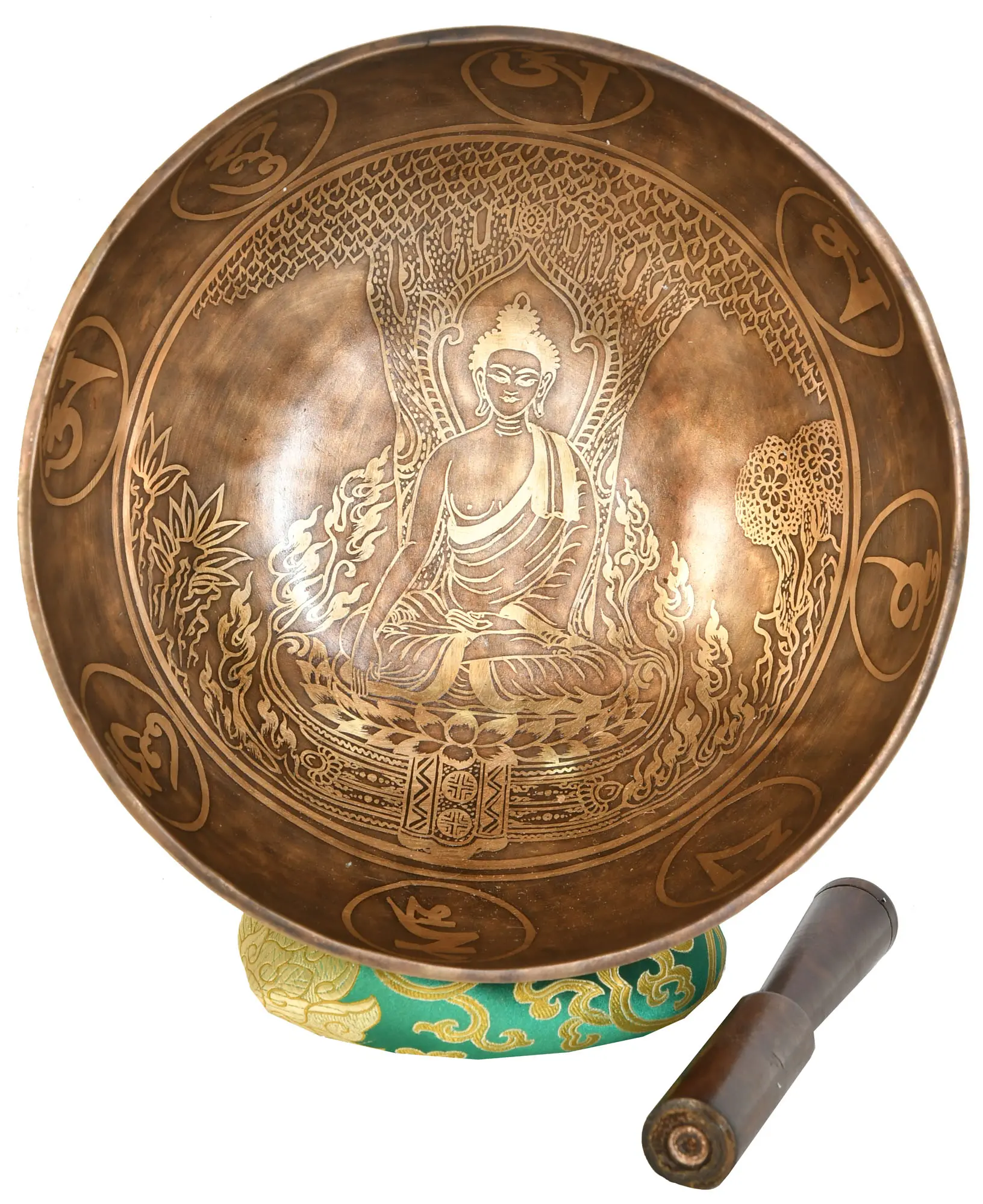 Buddha in Earth Touching with OM MANI PADME HUME Superfine Singing Bowl - Tibetan Buddhist