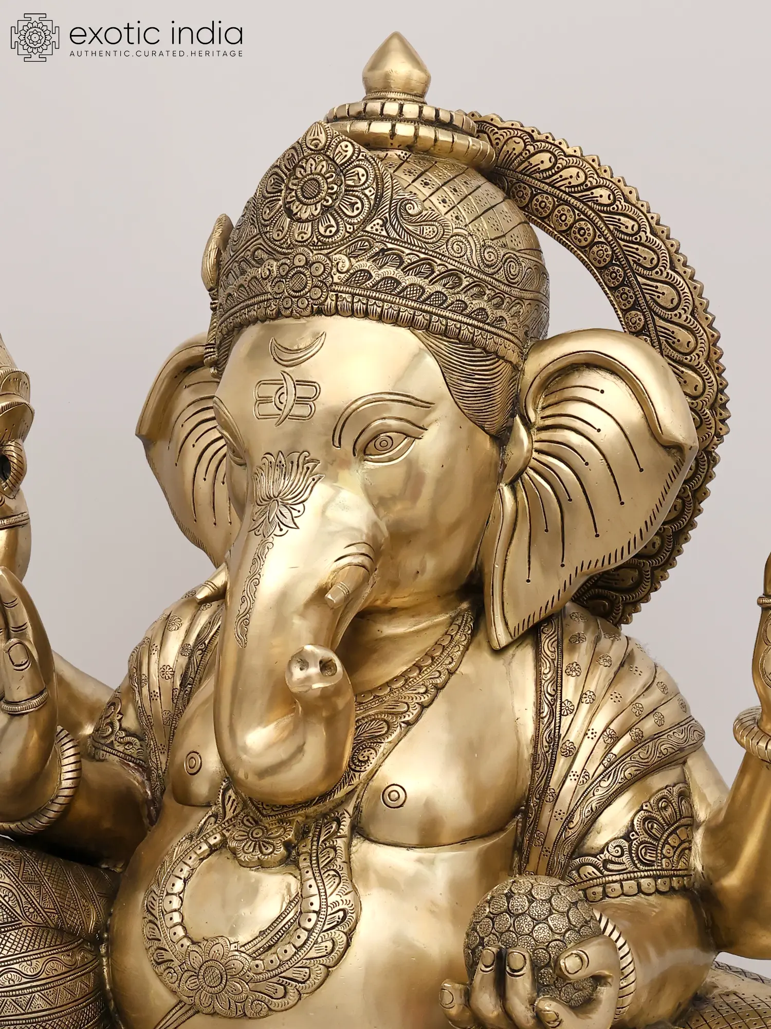 32" Large Size Blessing Ganesha Seated on Ashta-Ganesha Base In Brass | Indian Handcrafted Idol