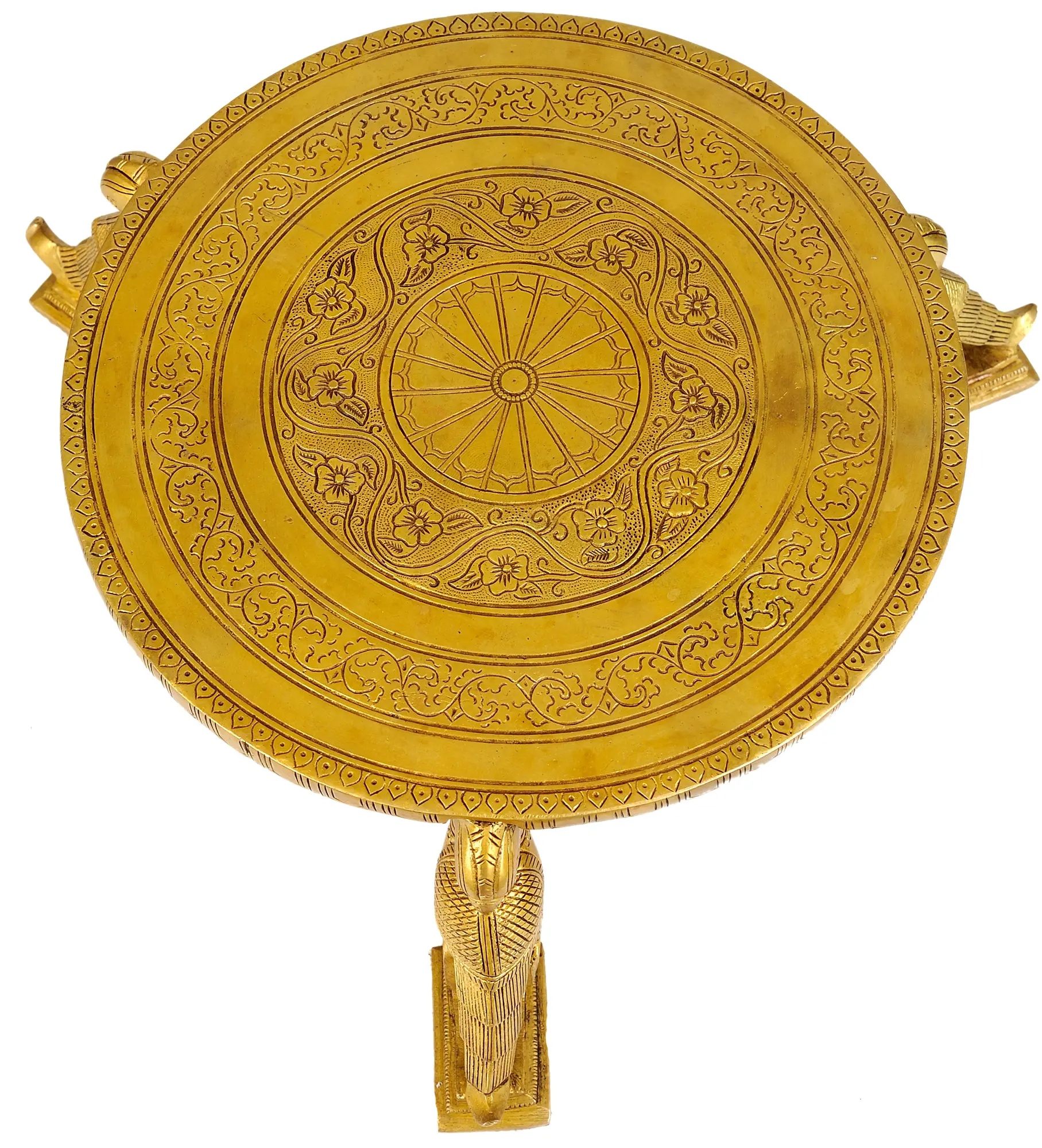 This creation is more than just an object; it is a tangible link to a heritage steeped in devotion and artistic excellence. Traditionally, such platforms, known as "chowkies," are used in Indian homes and temples to place deities, sacred texts, or offerings during prayers and rituals. They are considered auspicious and are often passed down through generations, carrying with them stories and blessings. The use of brass, a metal with inherent purity and auspicious connotations in many cultures, further enhances its spiritual significance. This piece is an invitation to infuse your space with a sense of the sacred, a touch of timeless elegance, and the enduring spirit of Indian artistry.