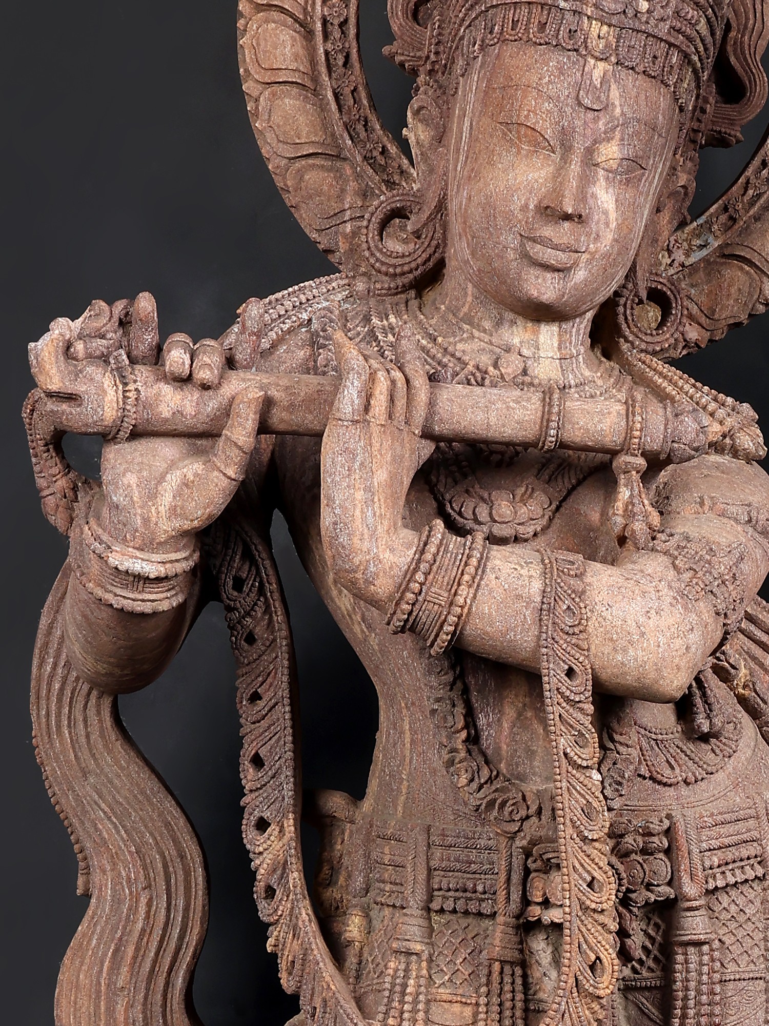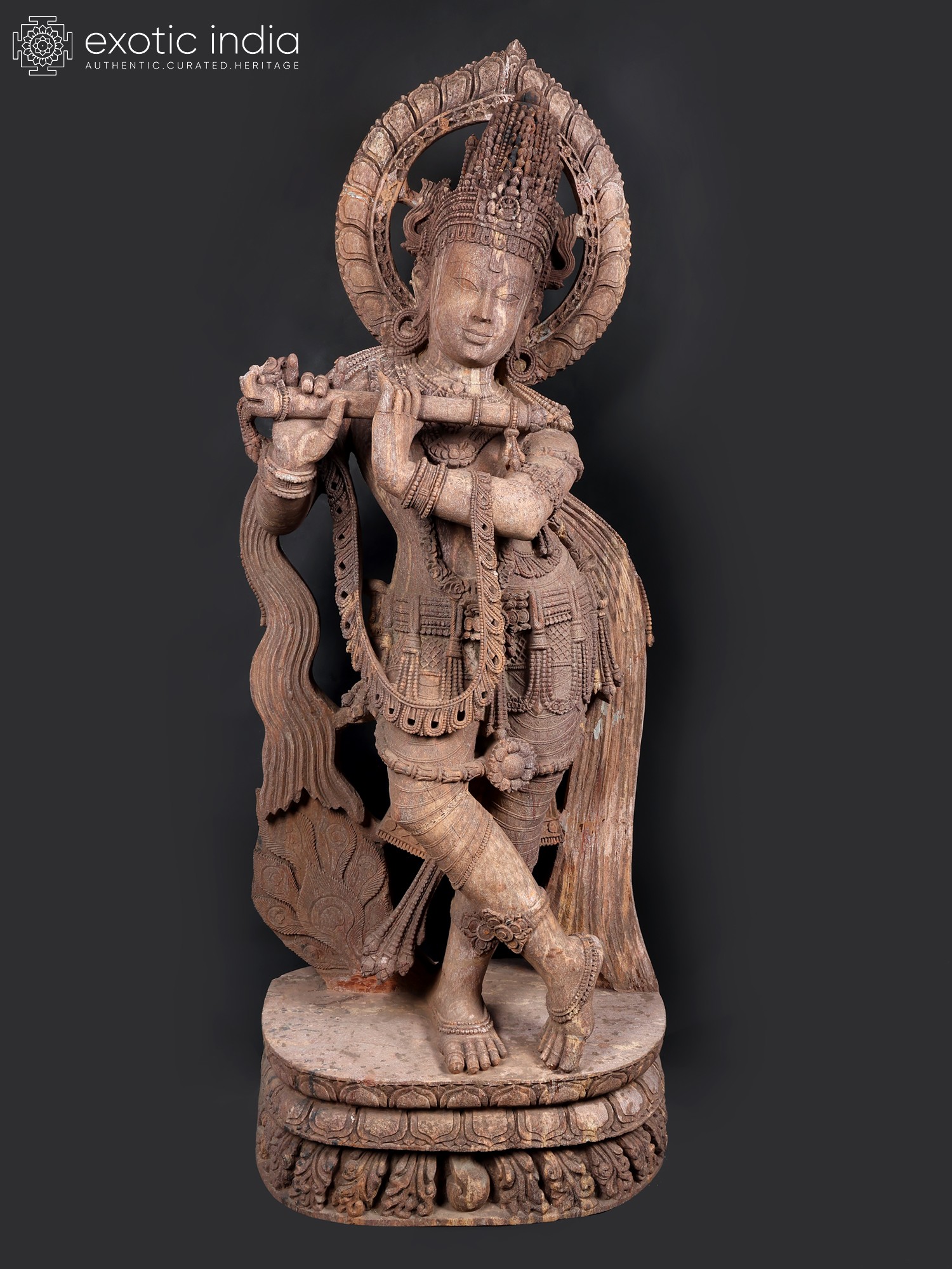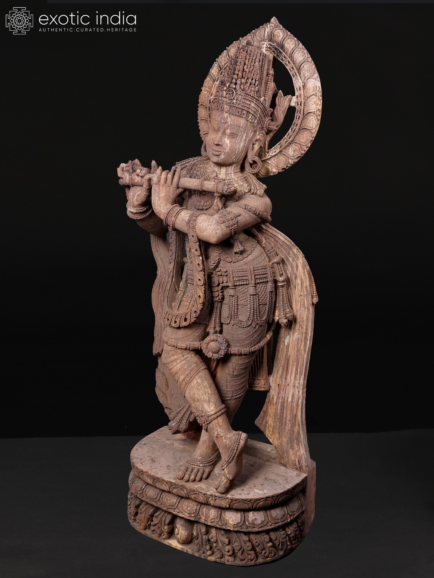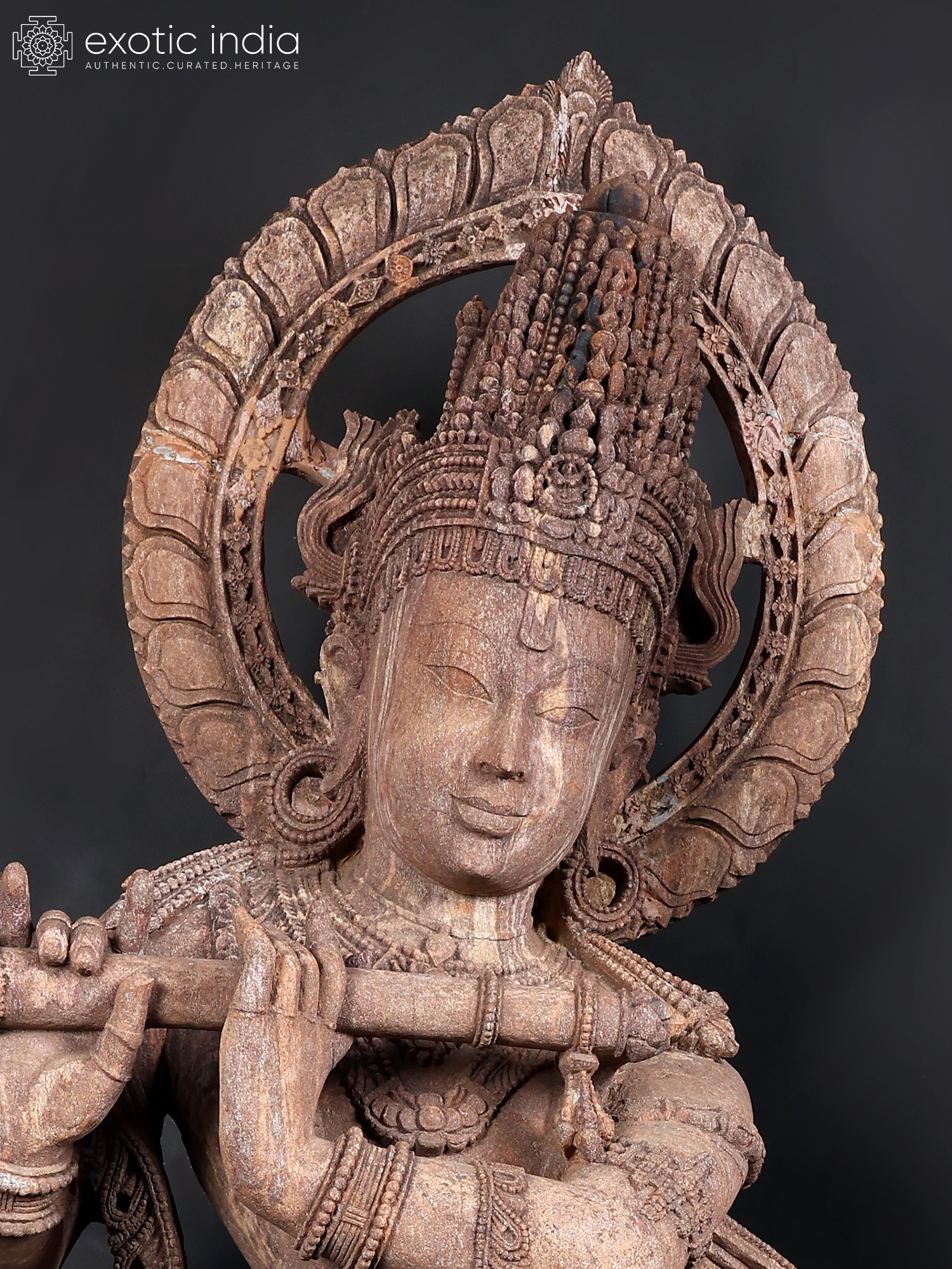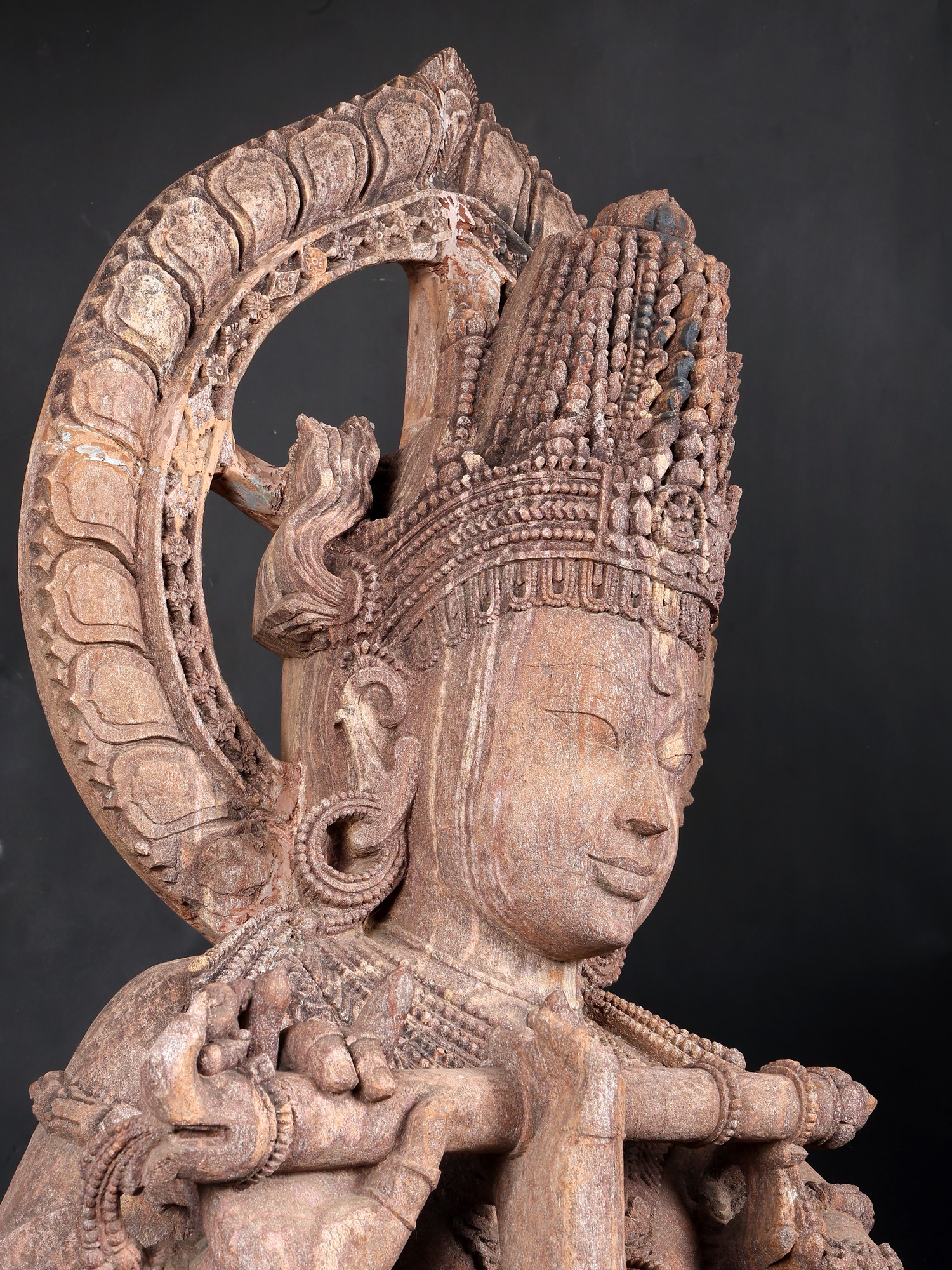 72" Large Dancing Goddess Saraswati with Vegetative Arched-Shaped Aureole | Wood Carved Statue