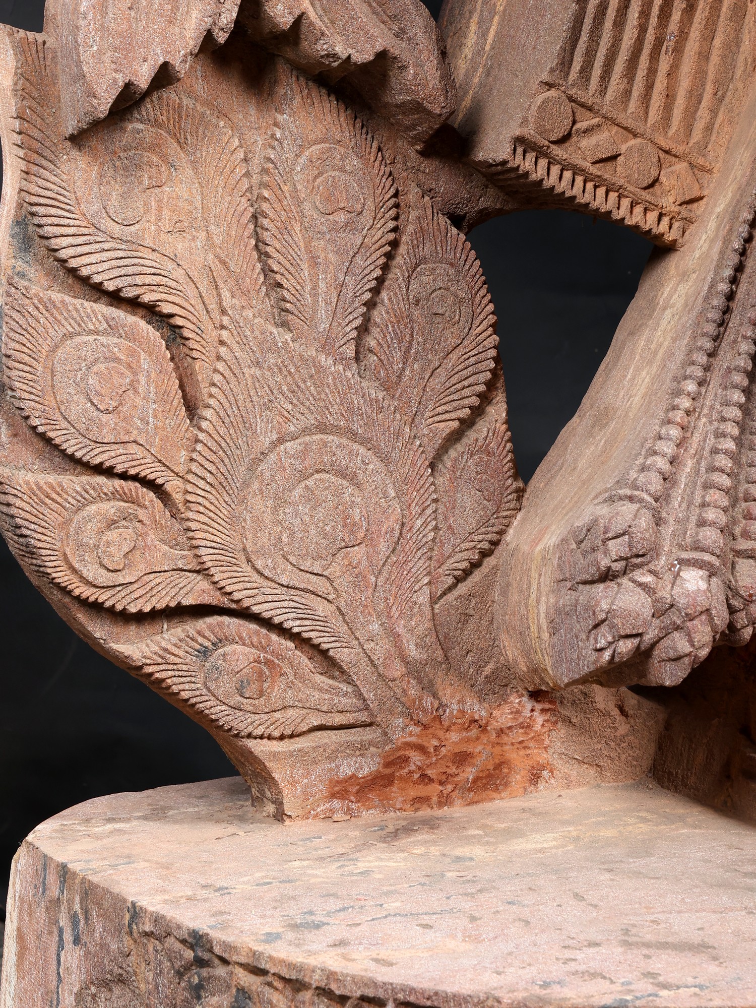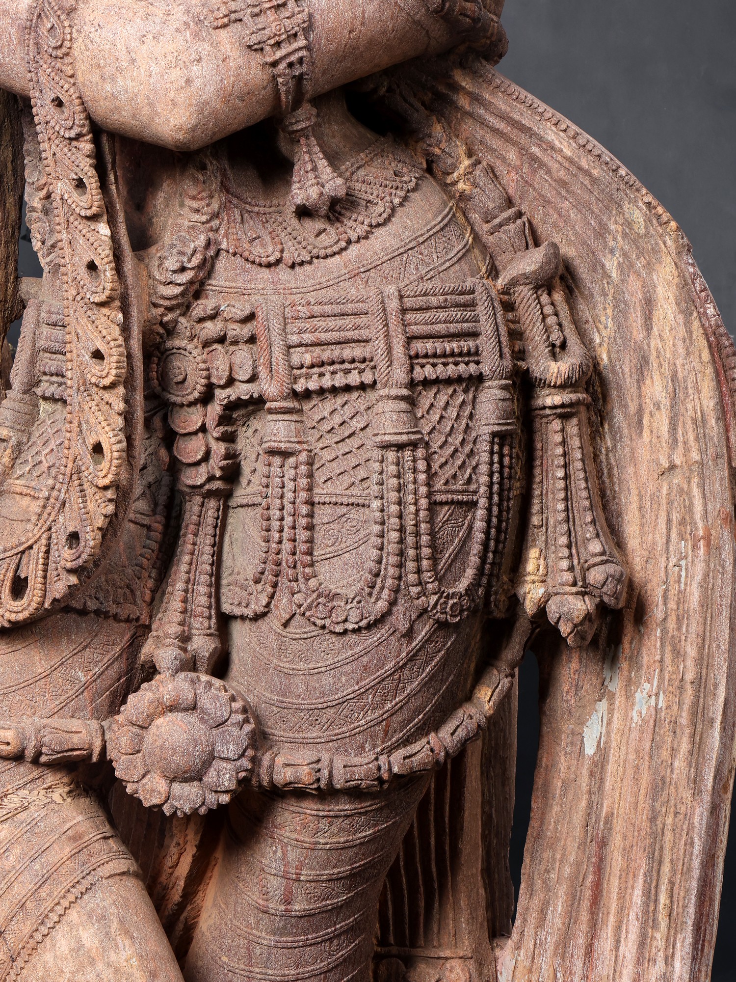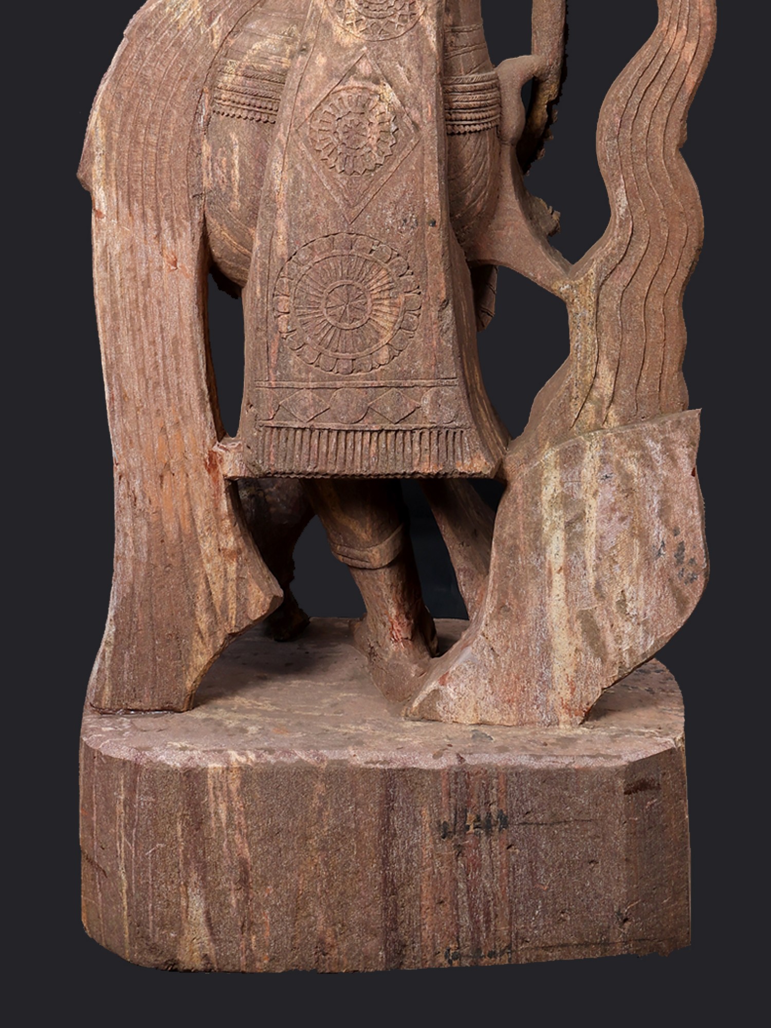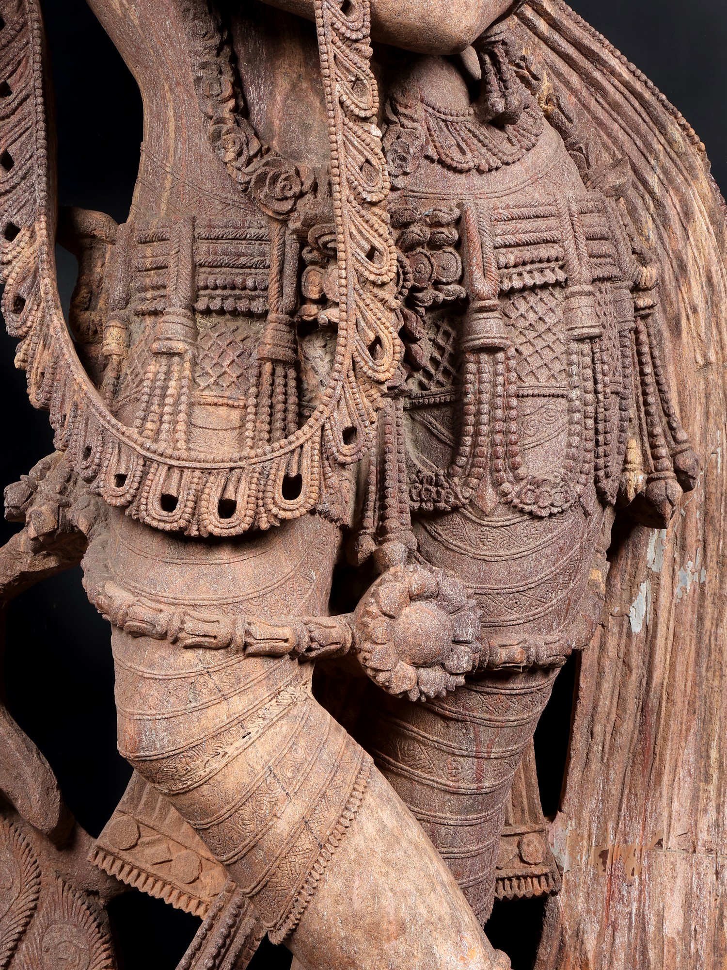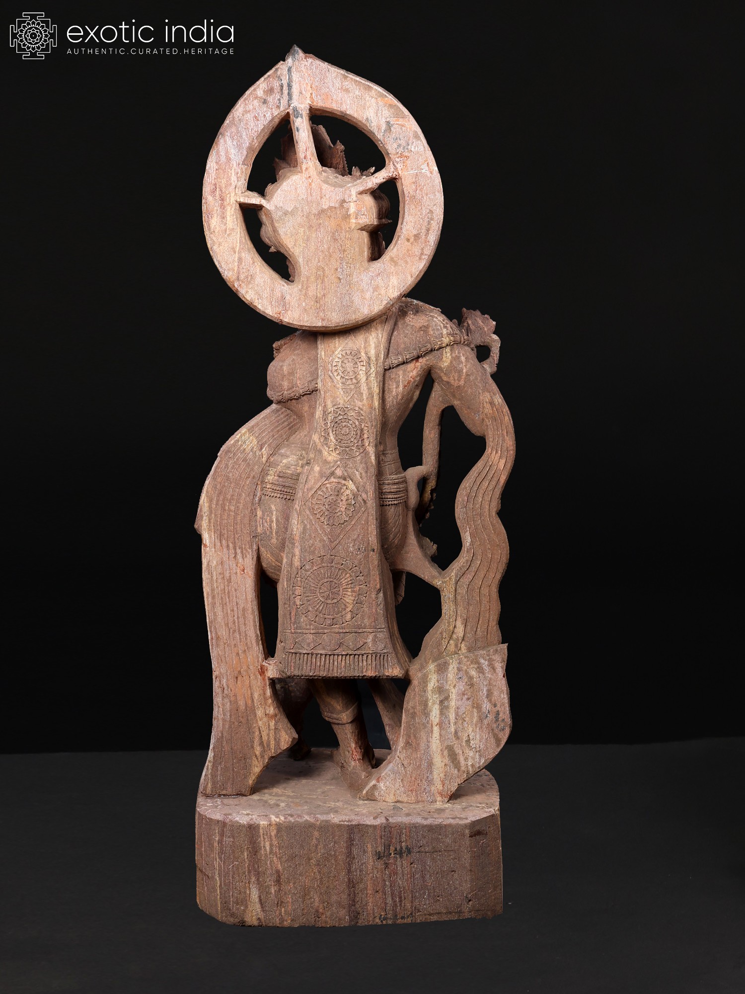 72" Large Dancing Goddess Saraswati with Vegetative Arched-Shaped Aureole | Wood Carved Statue